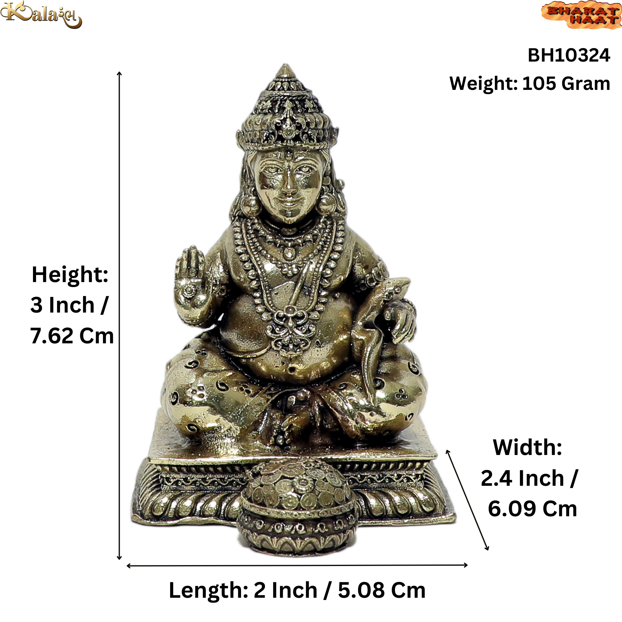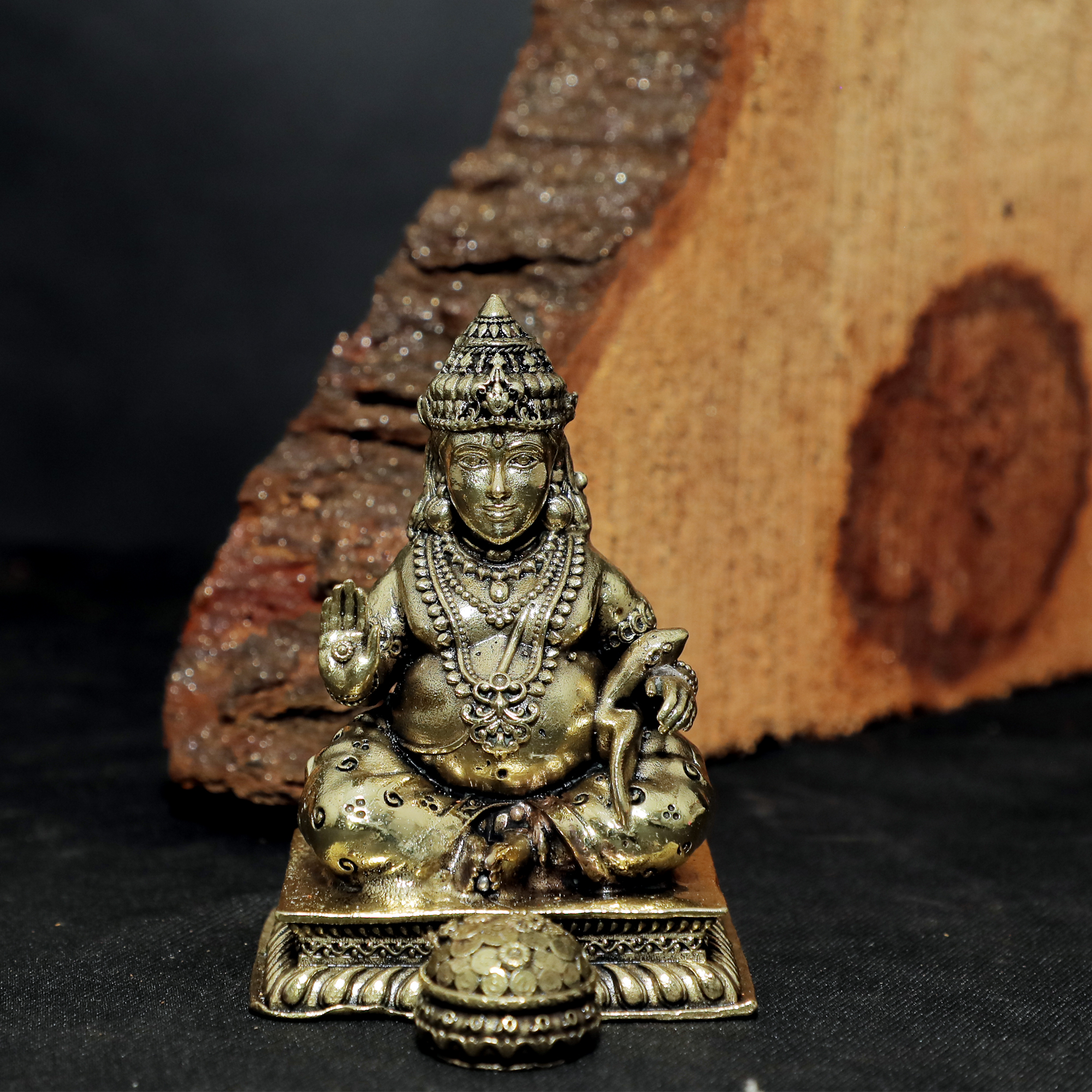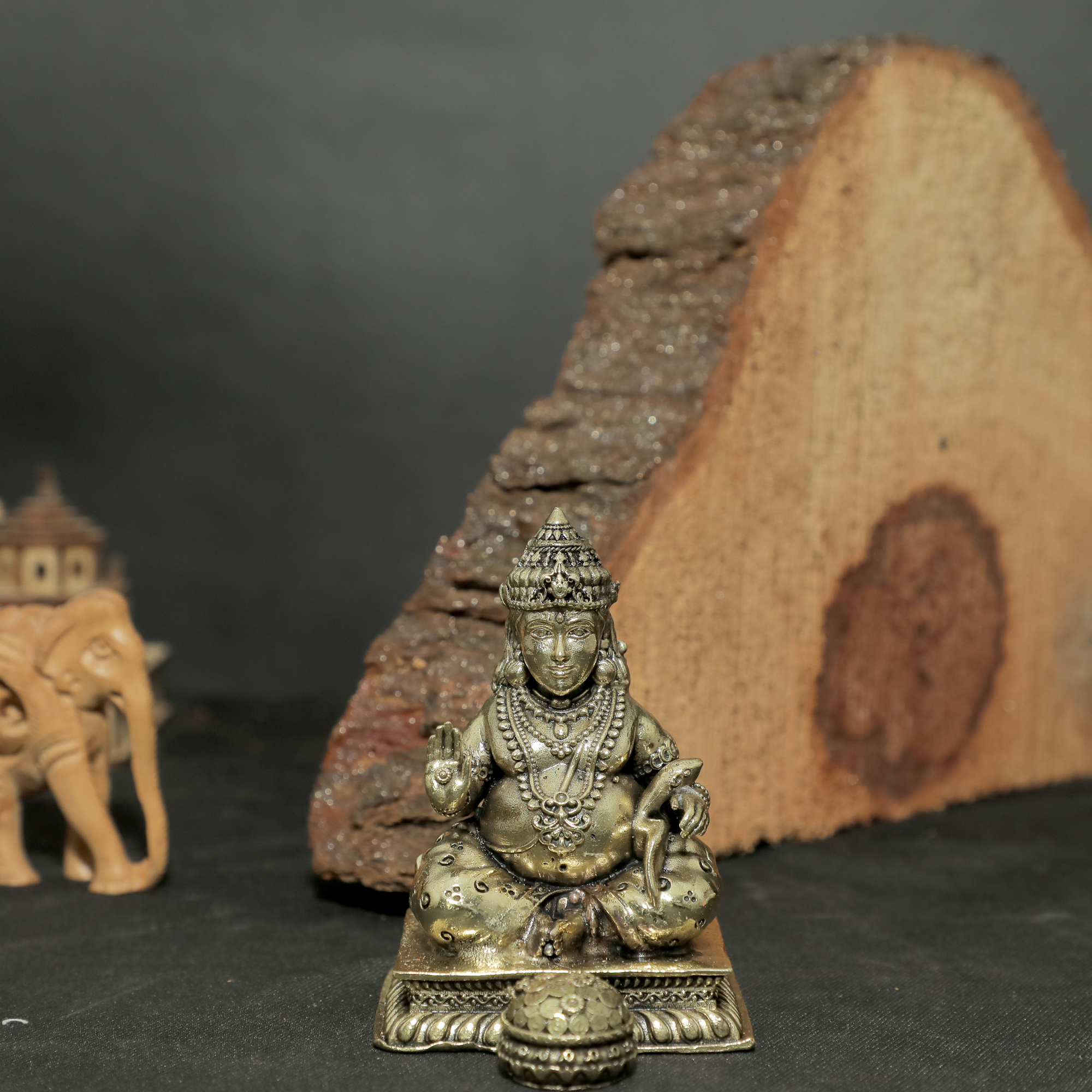 Handcrafted Brass Lord Kuber idol, symbol of wealth & prosperity.