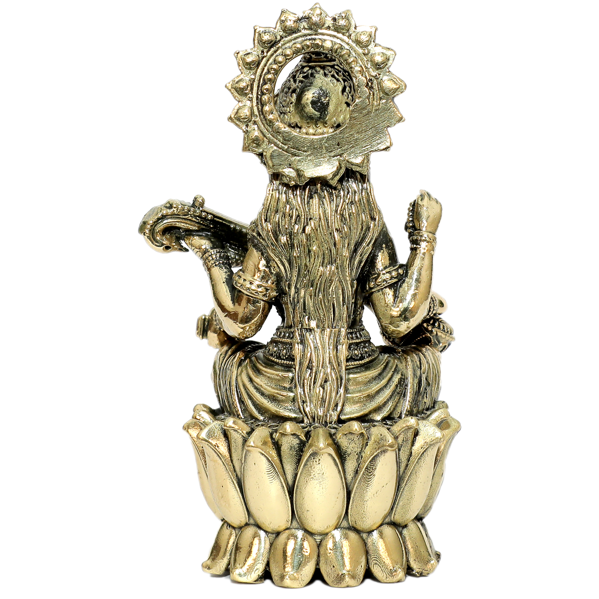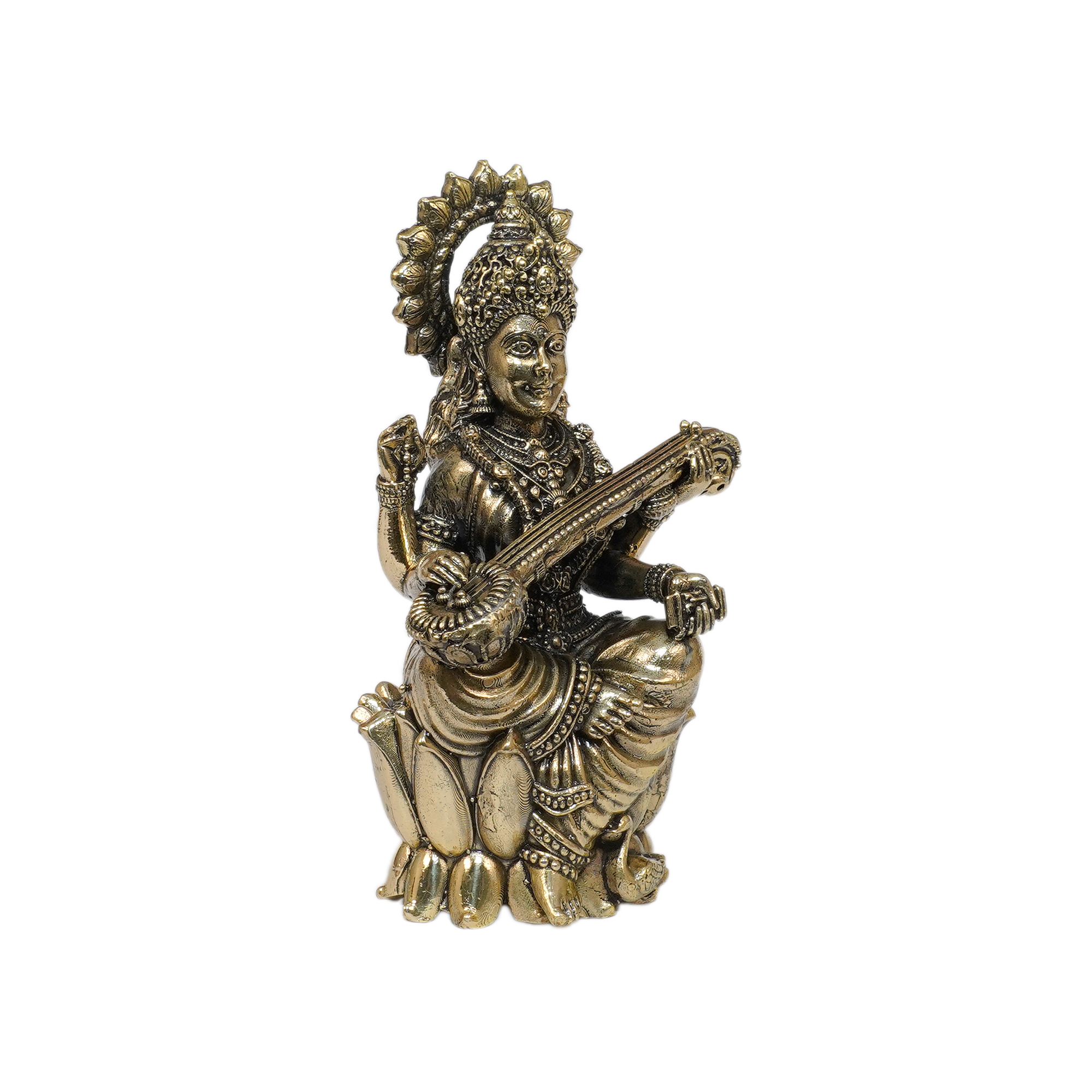 Exquisite Brass Saraswati Maa idol, symbol of knowledge, wisdom, and music.