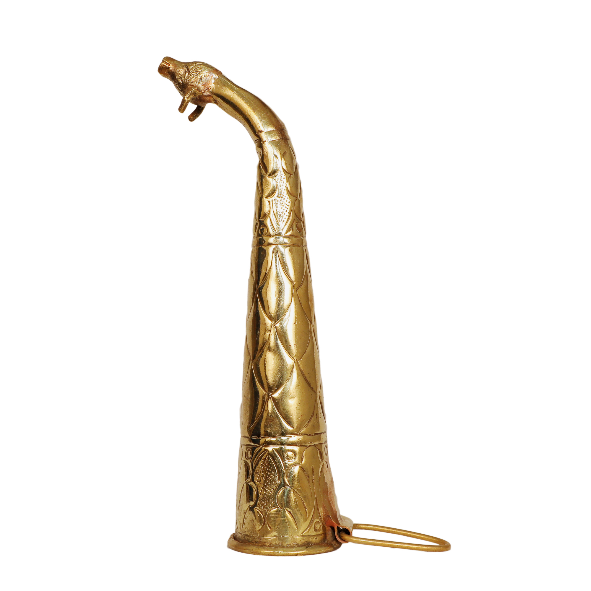 Traditional Brass Gaumukhi Shringi Pot for pooja rituals and offerings.