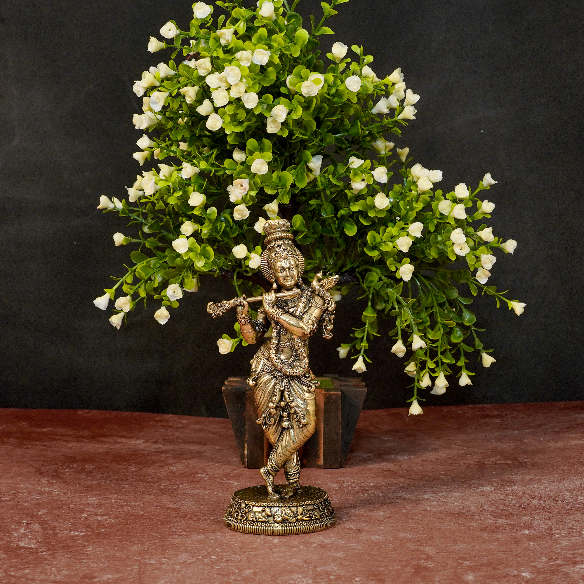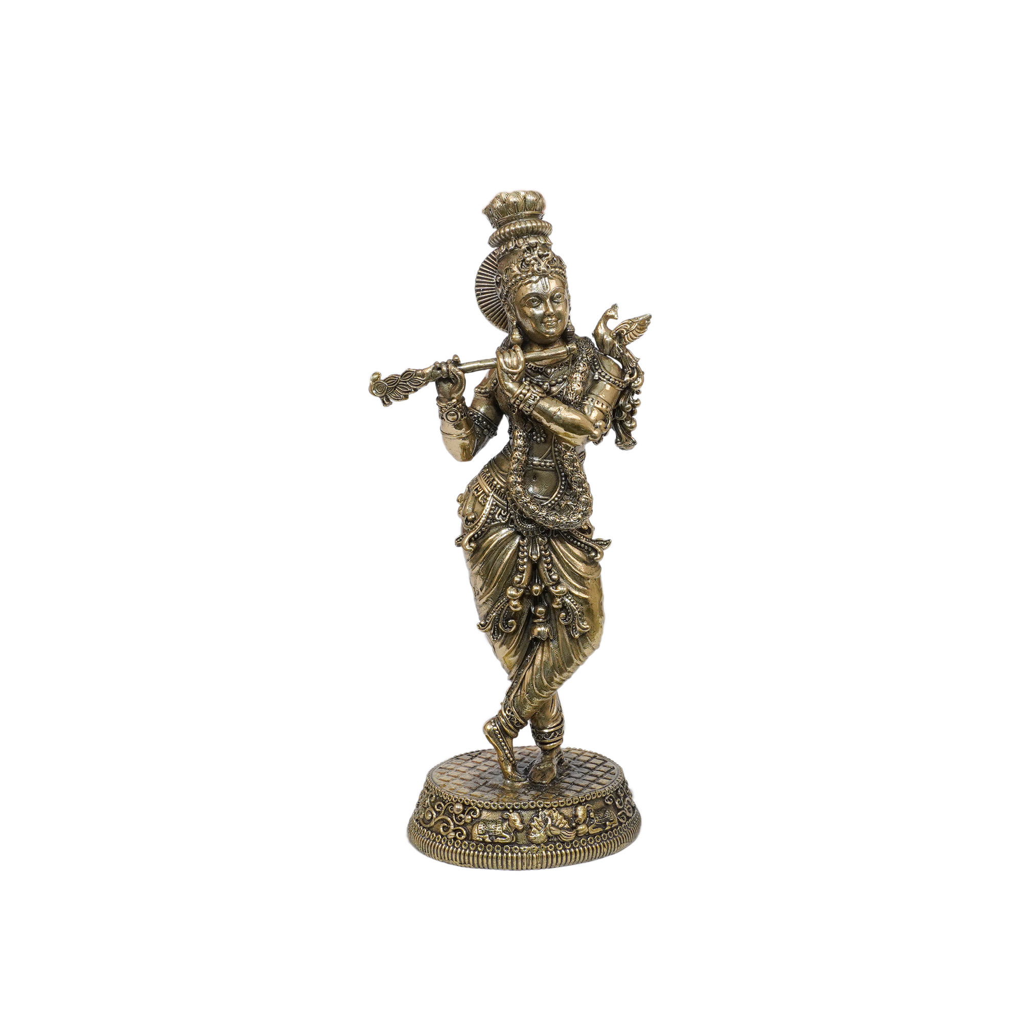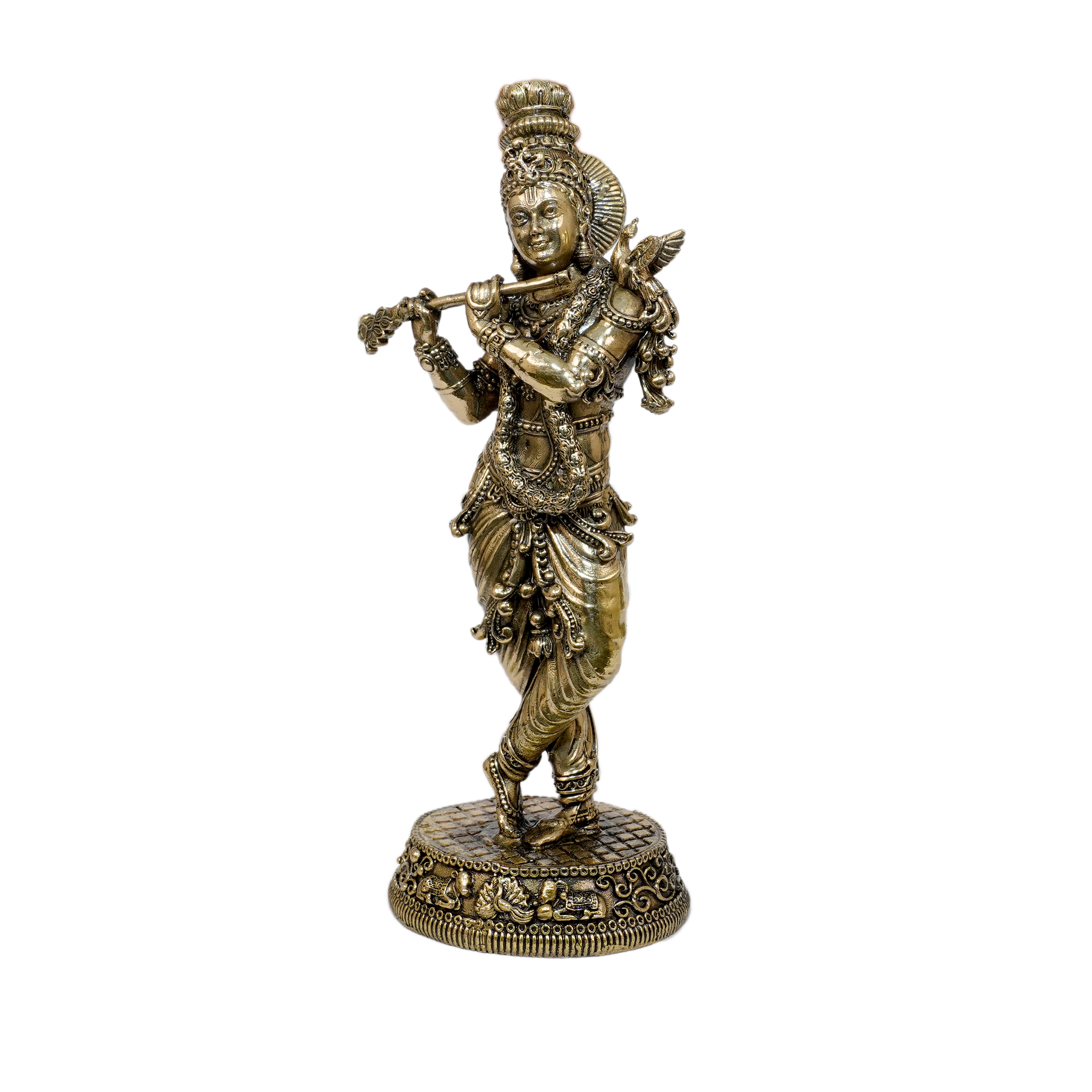 Exquisitely handcrafted Brass Lord Krishna Idol symbolising love, peace, and devotion.