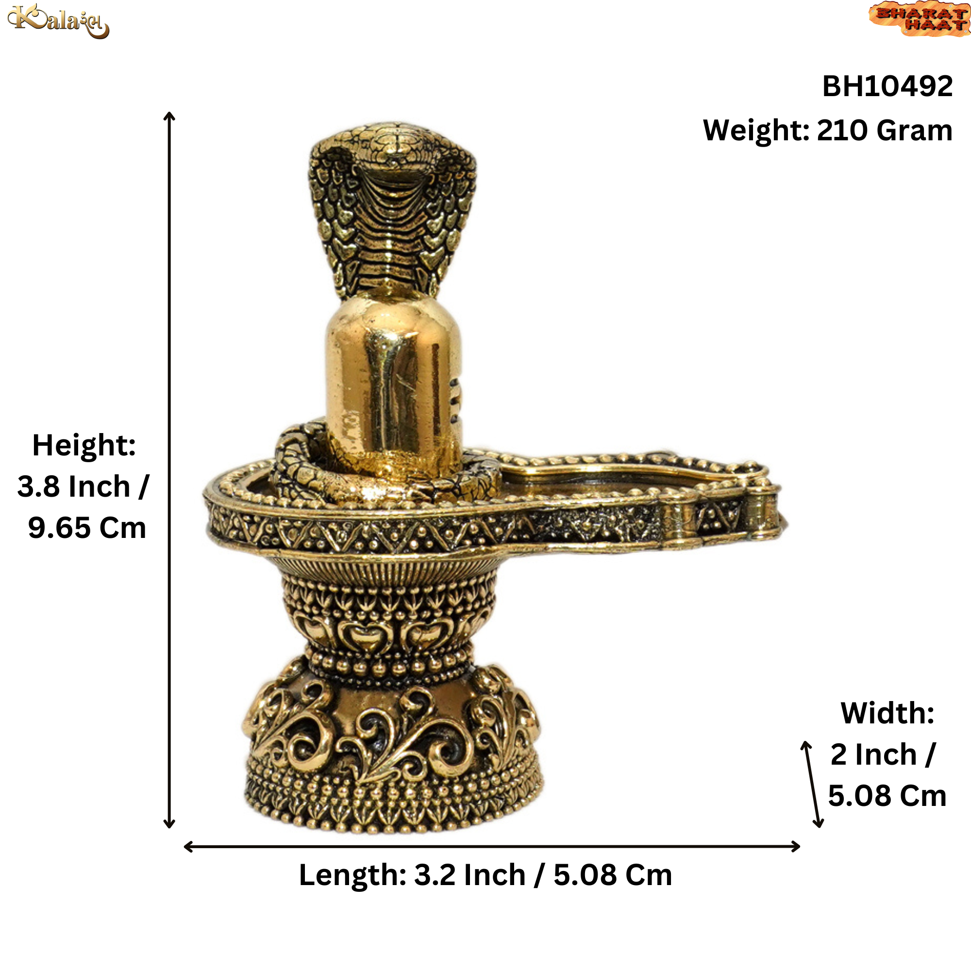Crafted from high-quality solid brass, this Shivling features intricate detailing and a classic antique finish. Measuring 3.2 x 2 x 3.8 inches and weighing 210 grams, it is perfect for your home temple, pooja room, or meditation space.