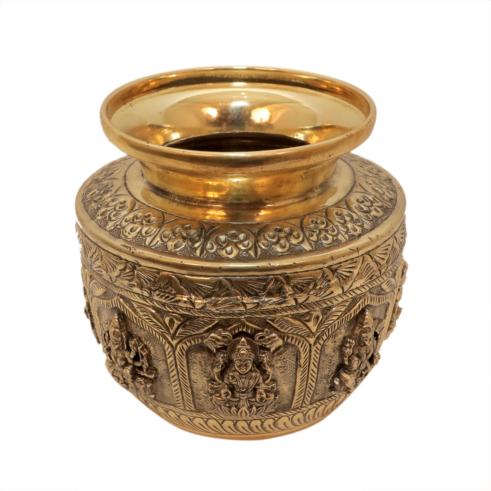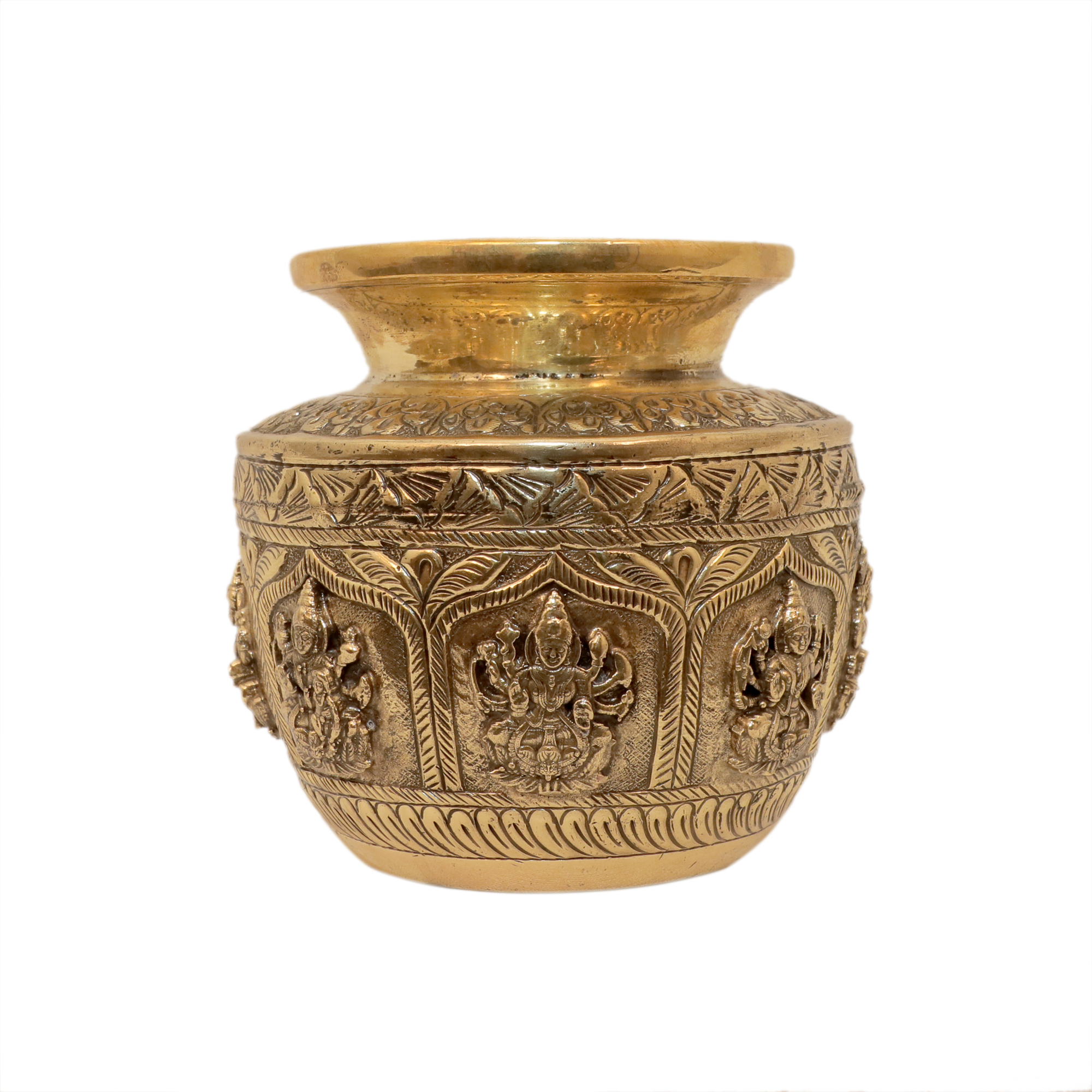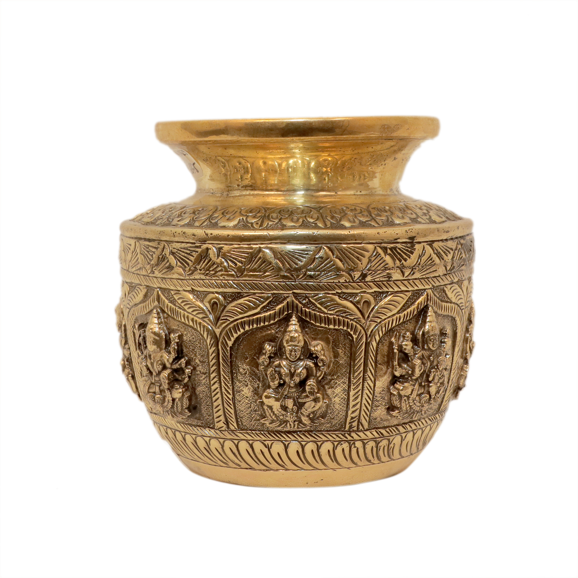 Enhance your sacred space with this handcrafted brass Lakshmi Kalash to invite wealth, positivity, and divine blessings into your life.