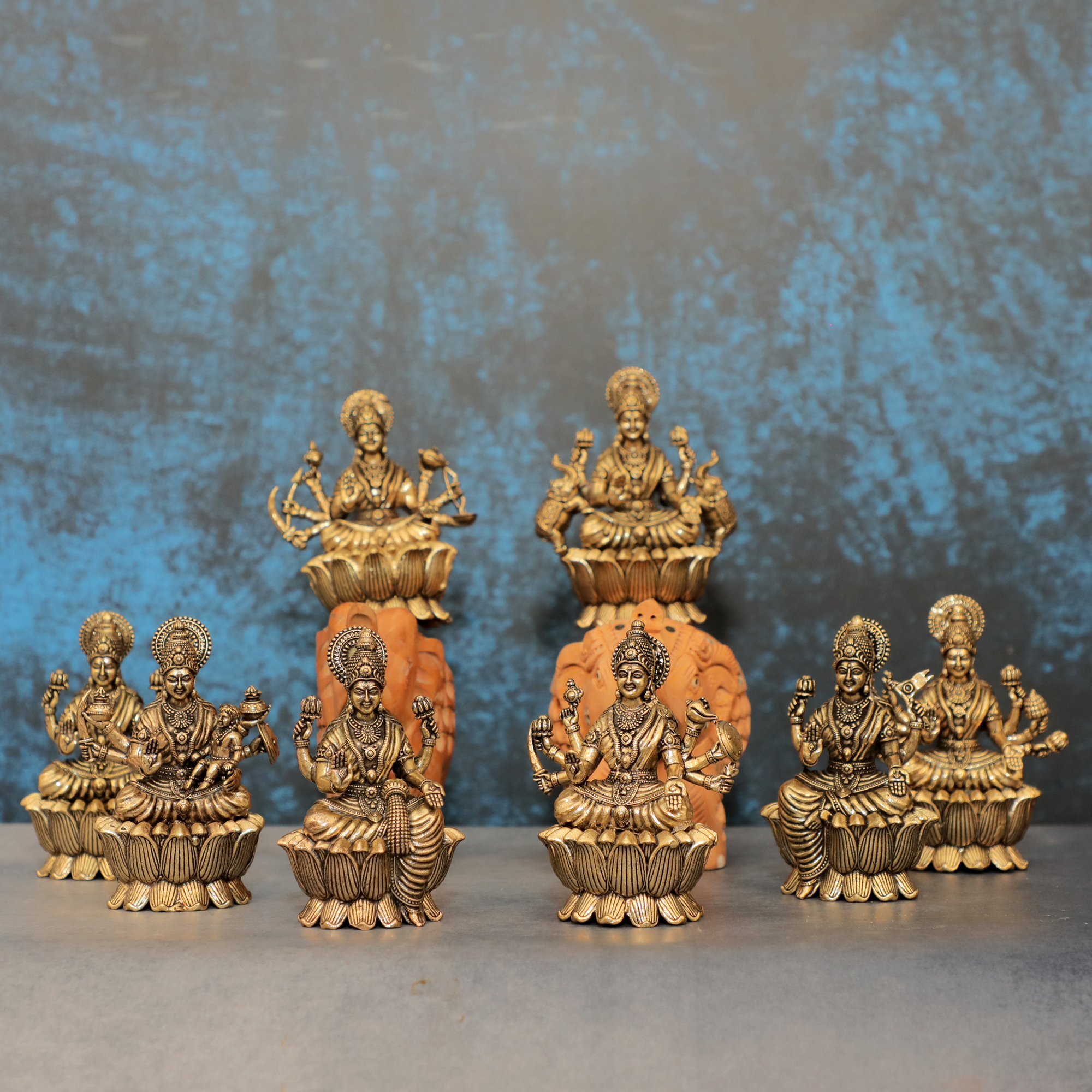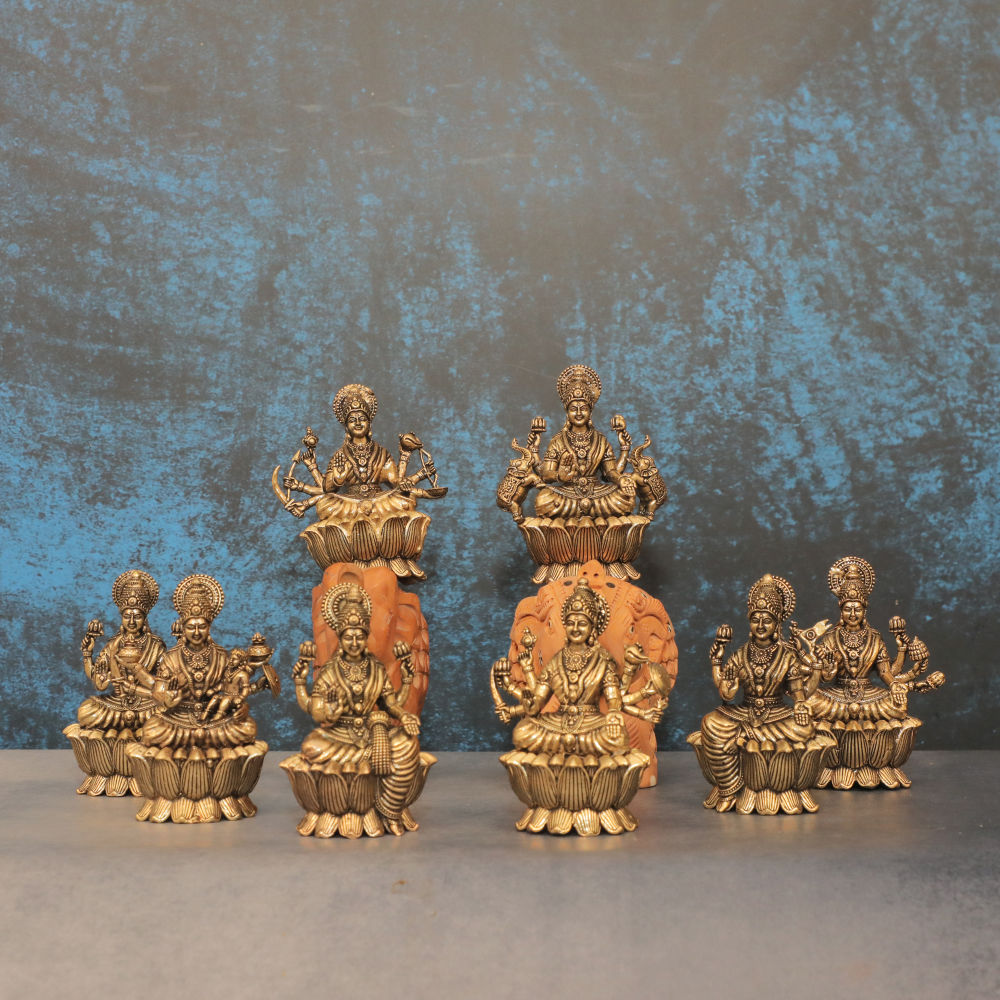 Exquisite handcrafted Brass Ashtalakshmi idol, symbolising wealth, prosperity, and abundance.
