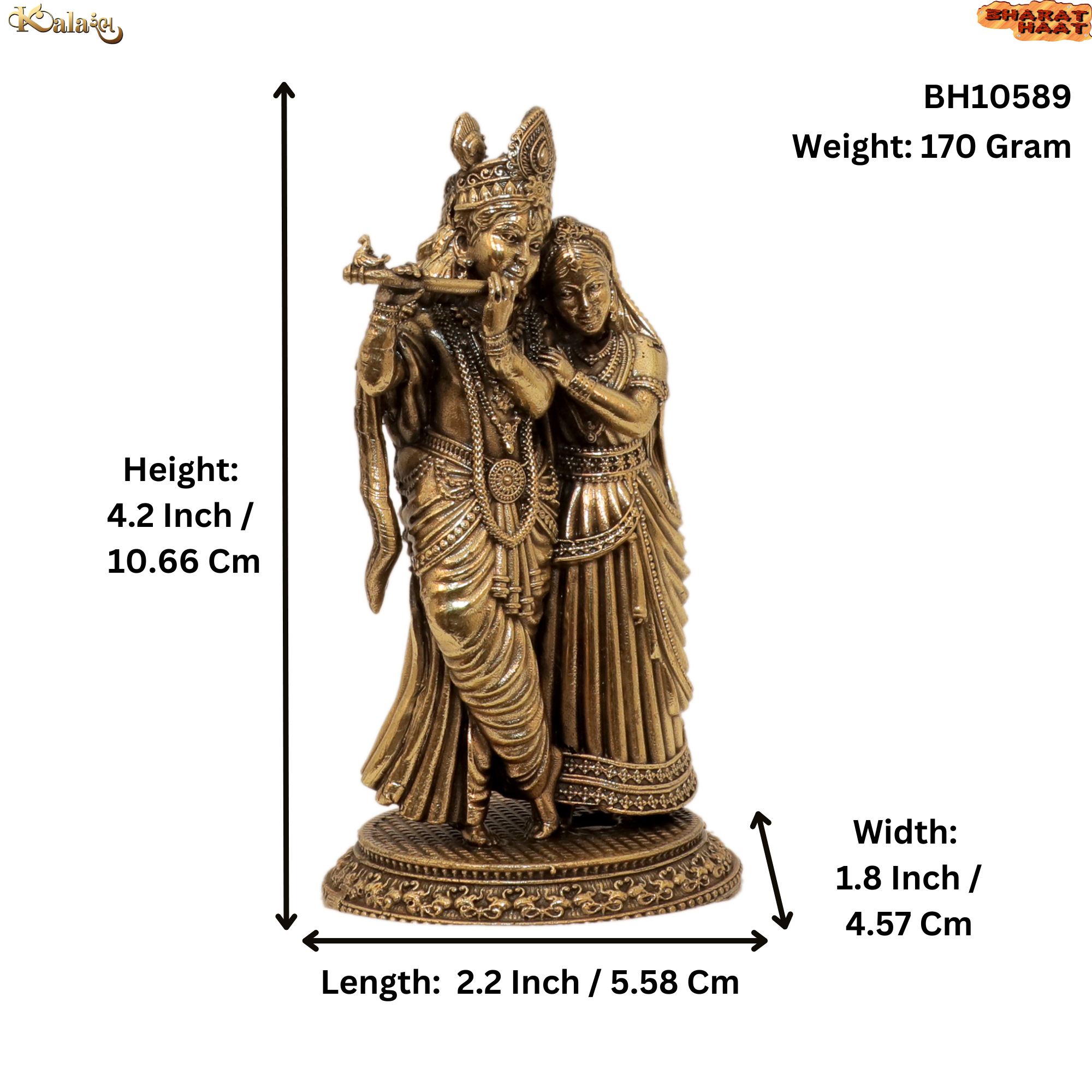 Beautiful handcrafted Brass Radha-Krishna idol with antique golden finish.