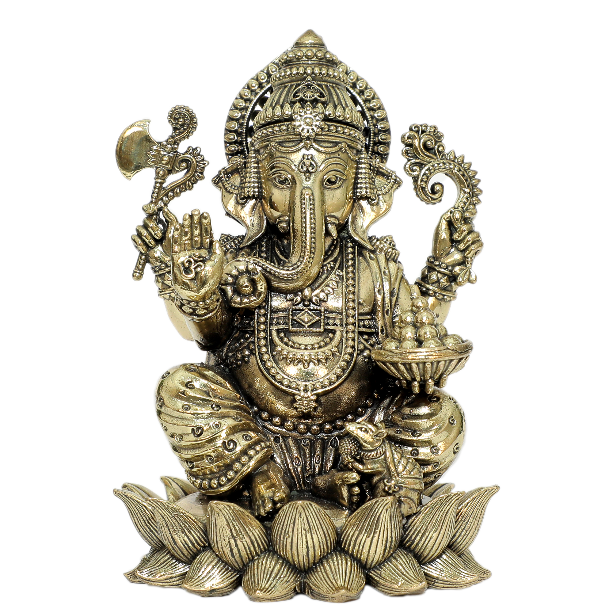 Handcrafted Brass Ganesha idol symbolising wisdom, prosperity, and good fortune.