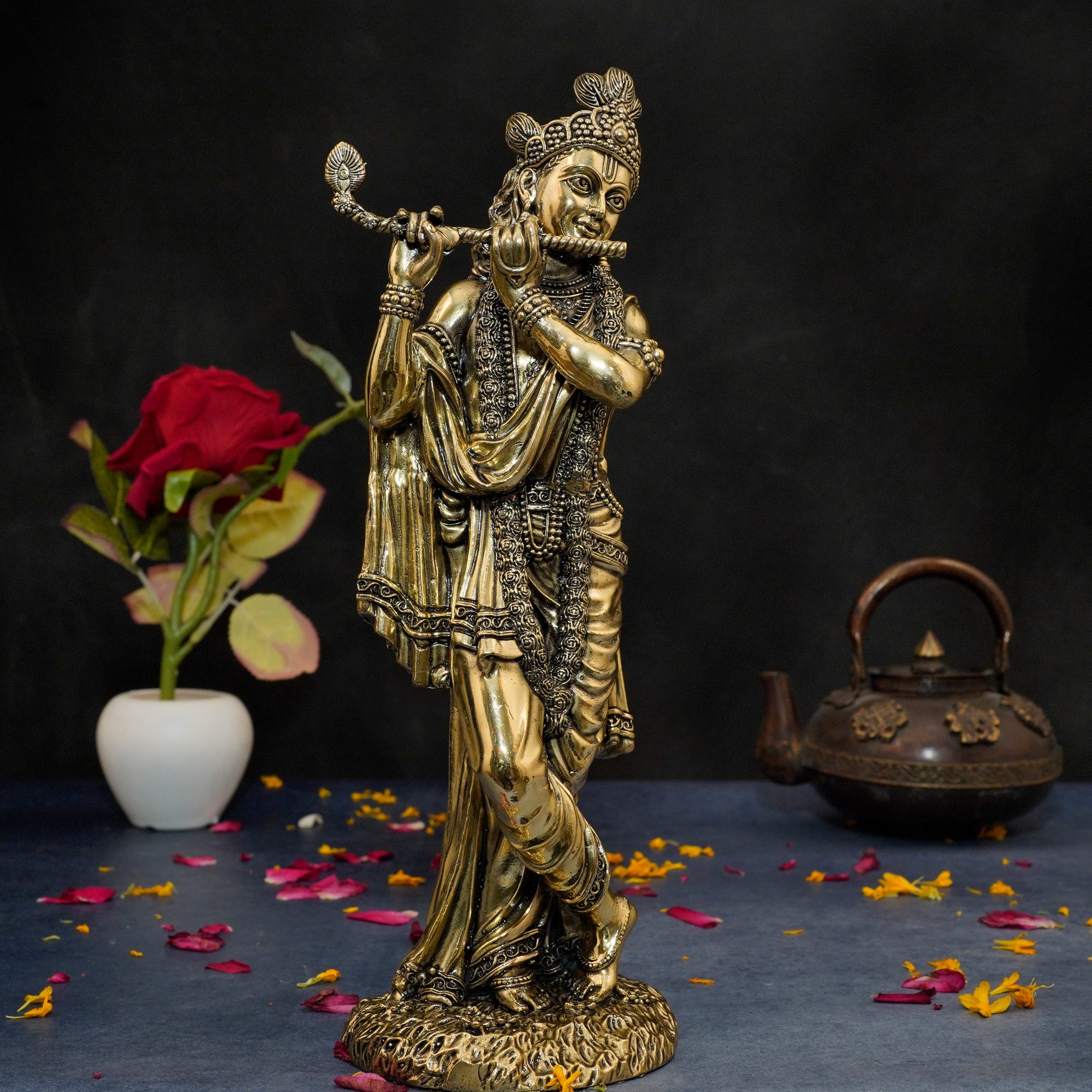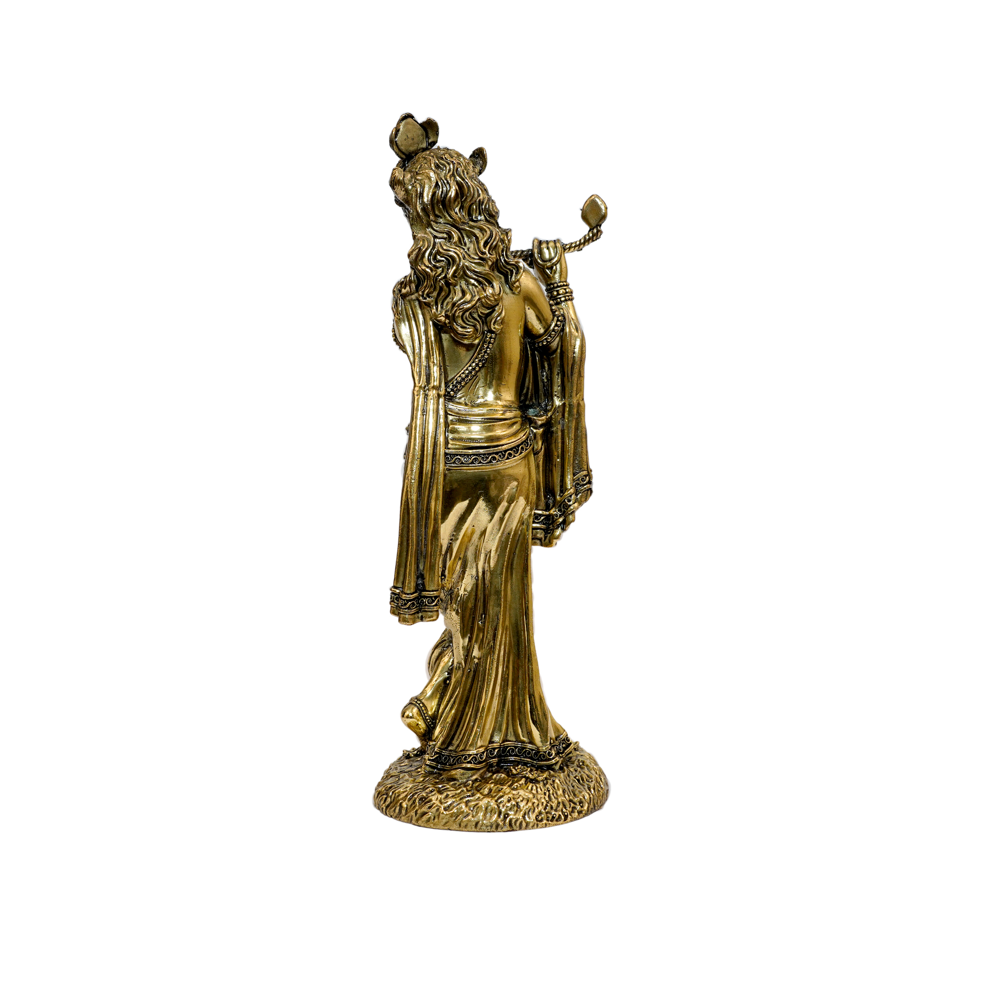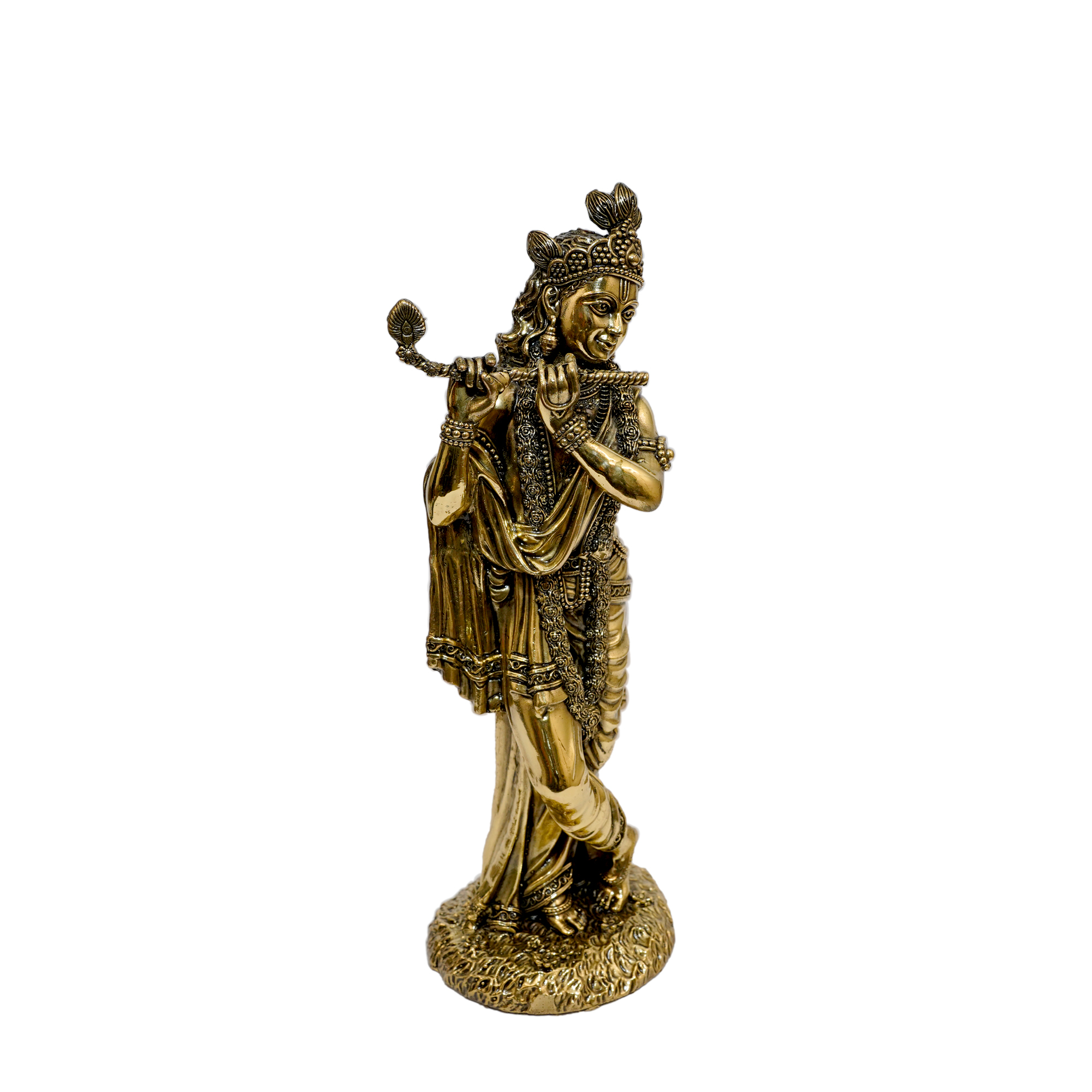 Handcrafted Brass Krishna idol playing flute, symbolising love, devotion, and joy.