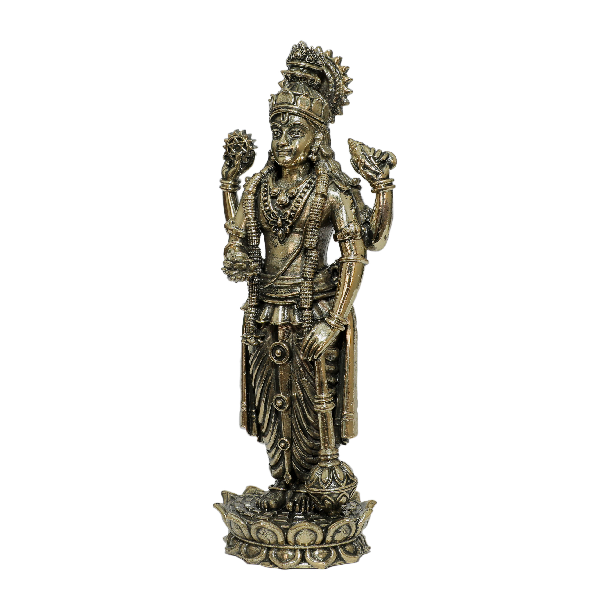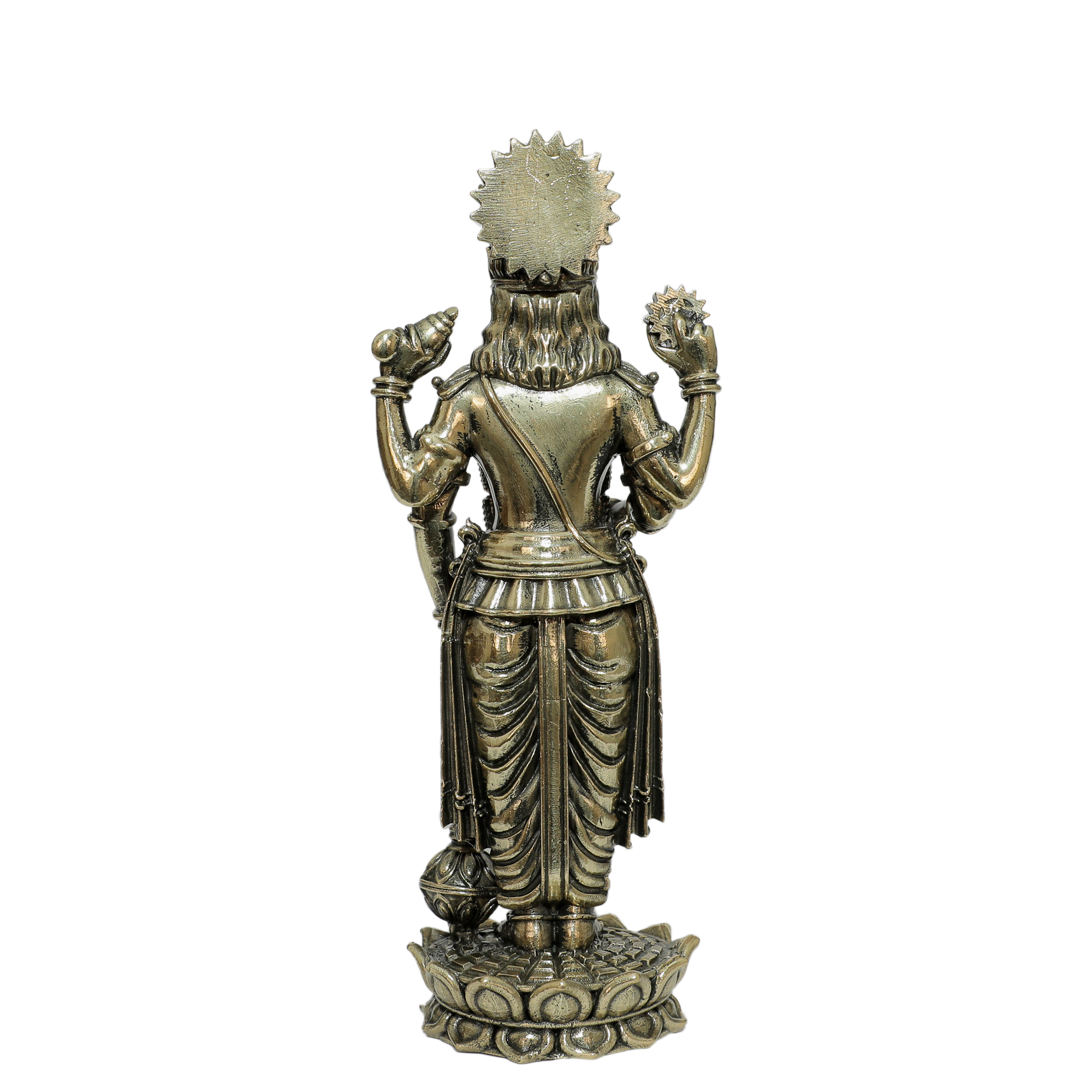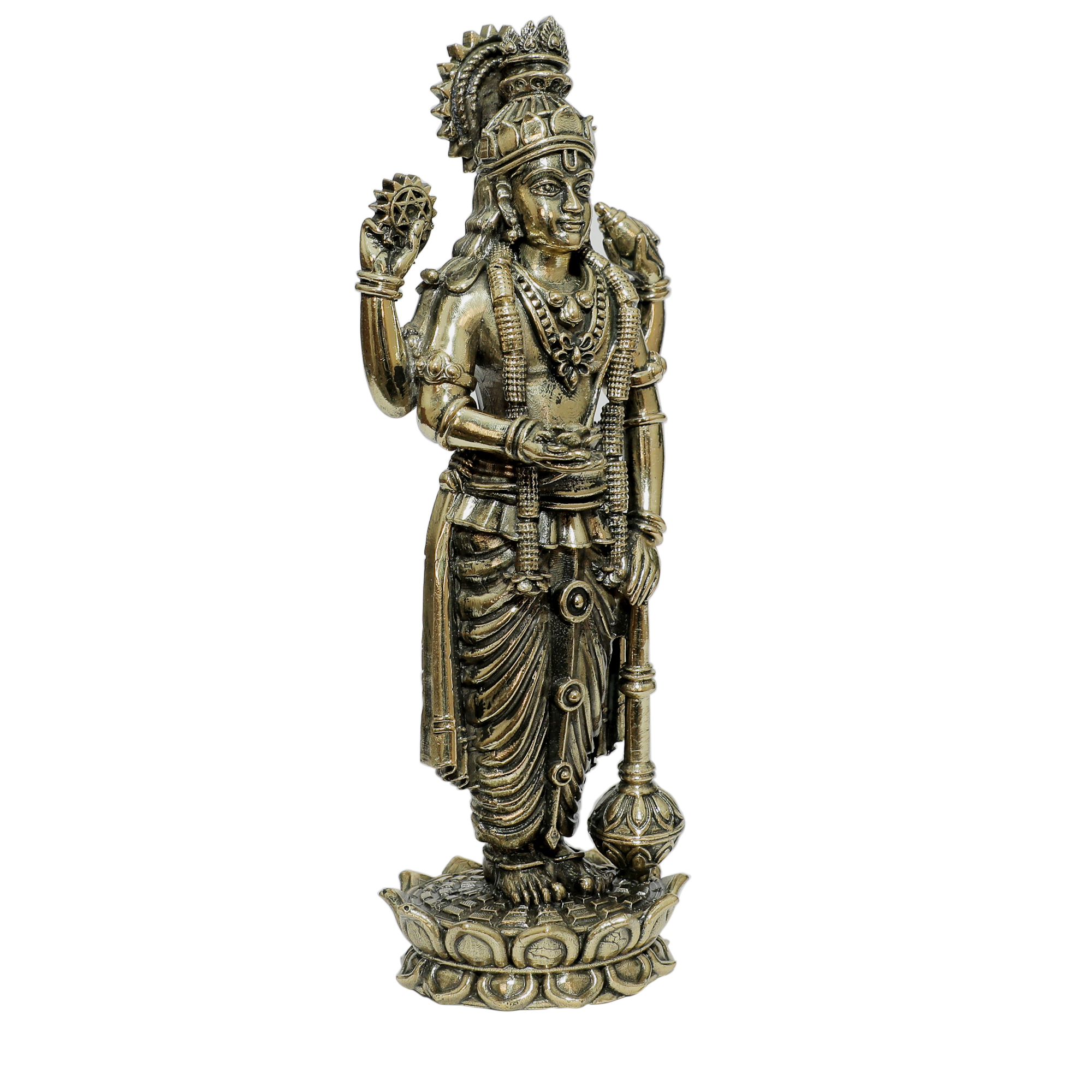 Handcrafted Brass Vishnu standing idol symbolising protection, preservation, and prosperity.