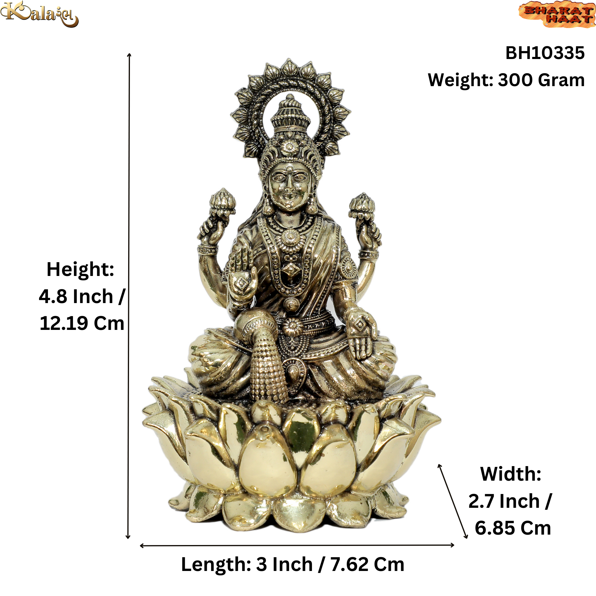 Handcrafted Brass Lakshmi idol symbolising wealth, prosperity, and good fortune.
