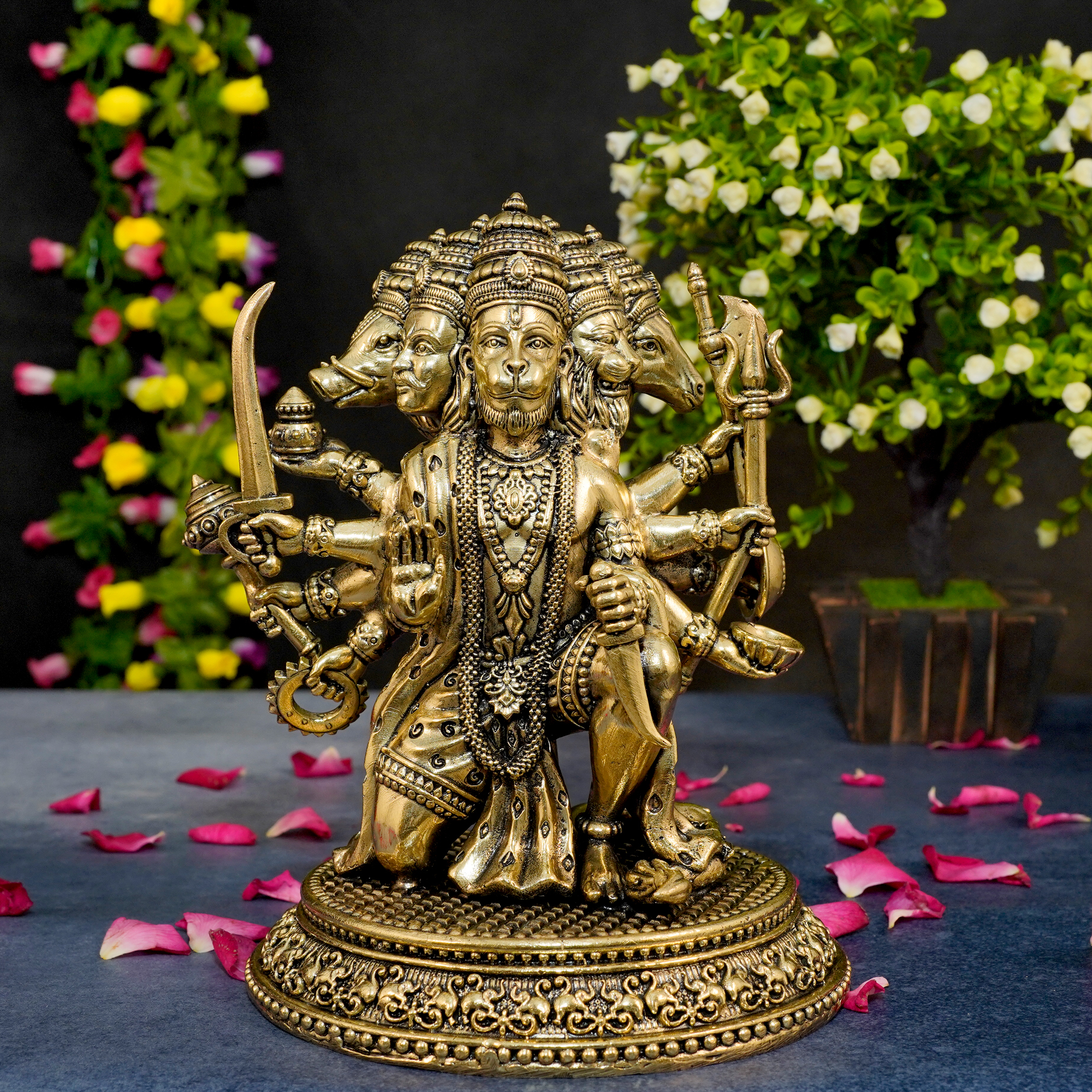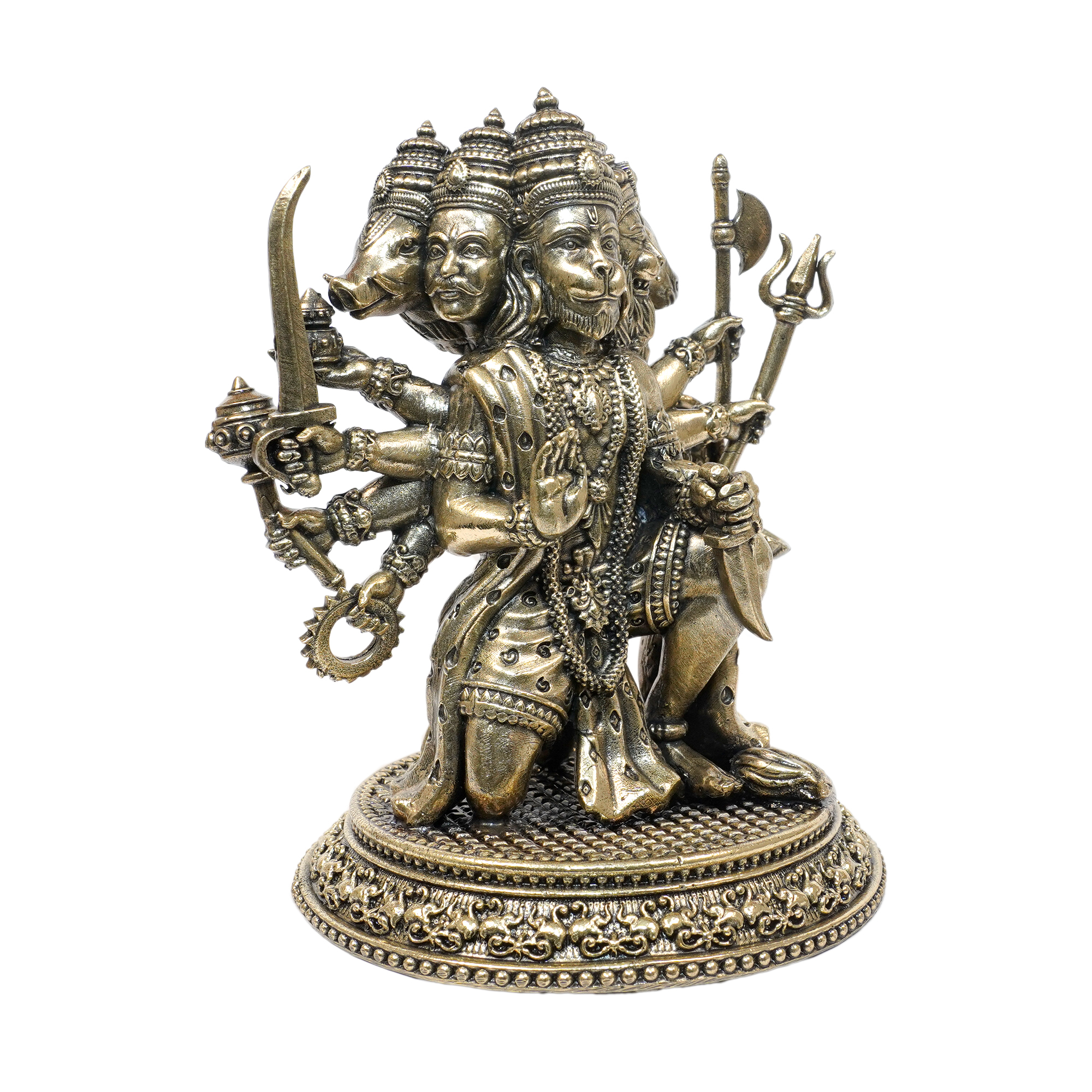 Handcrafted Brass Panchmukhi Hanuman idol representing courage, protection, and devotion.