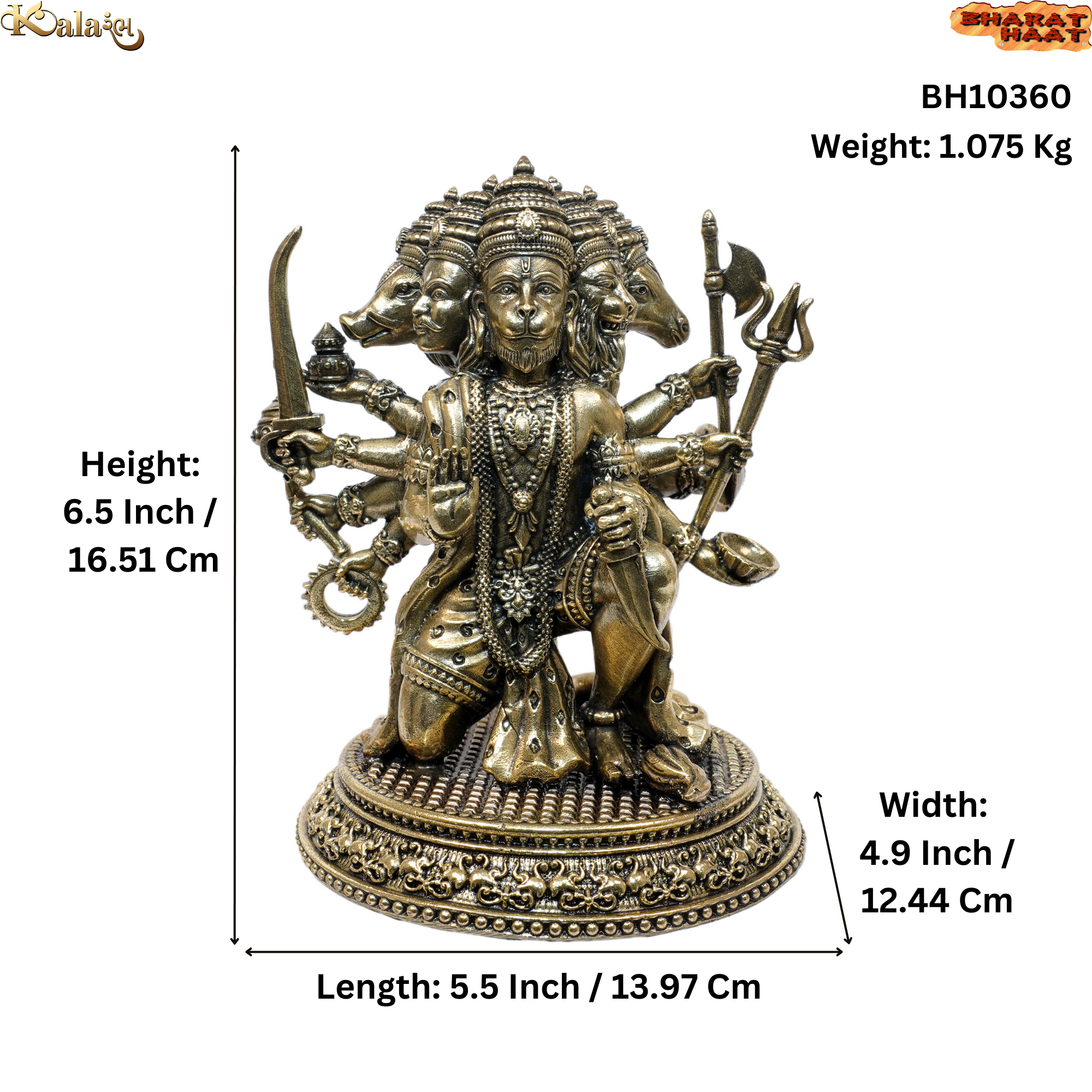 Brass Panchmukhi Hanuman 7 Inch KBH10360