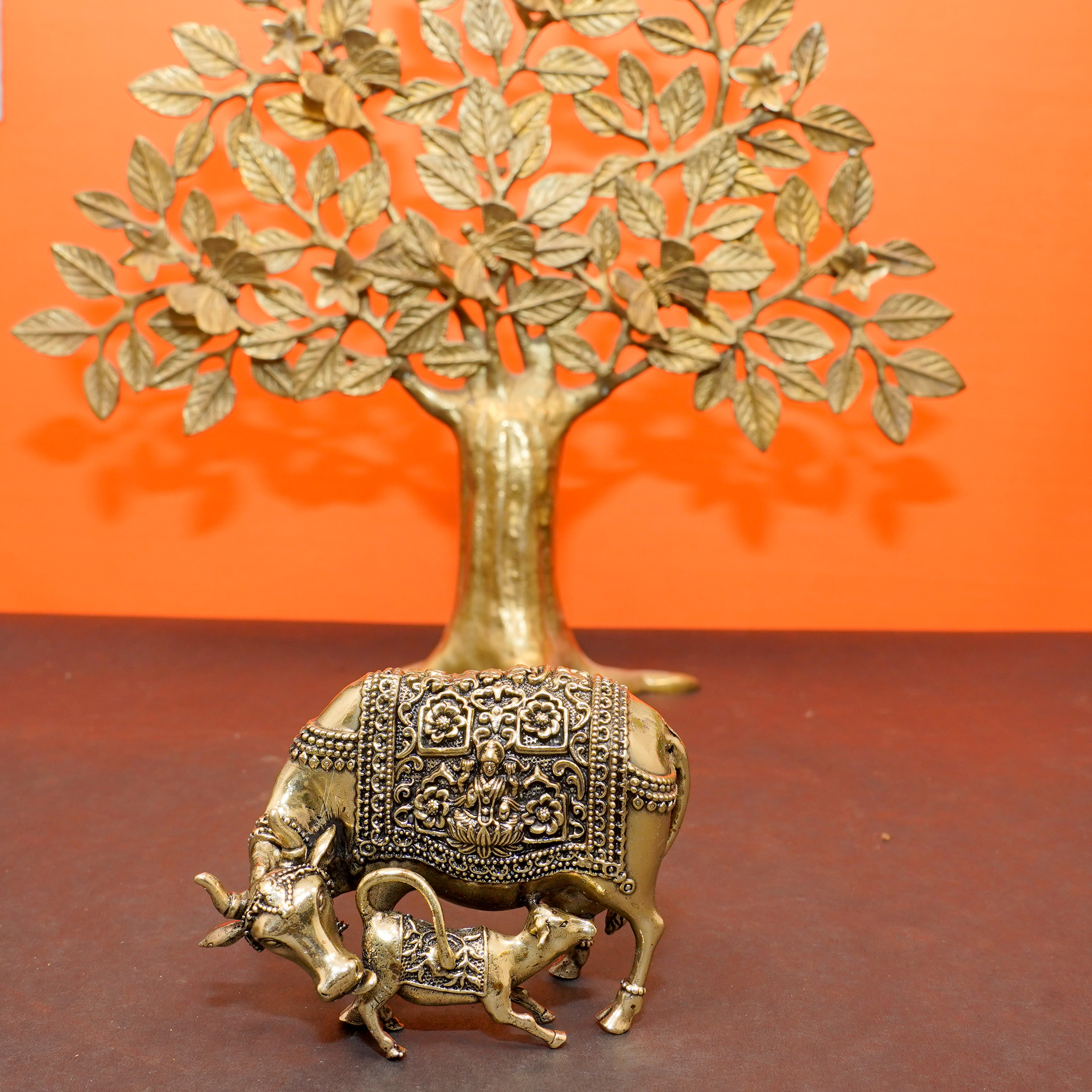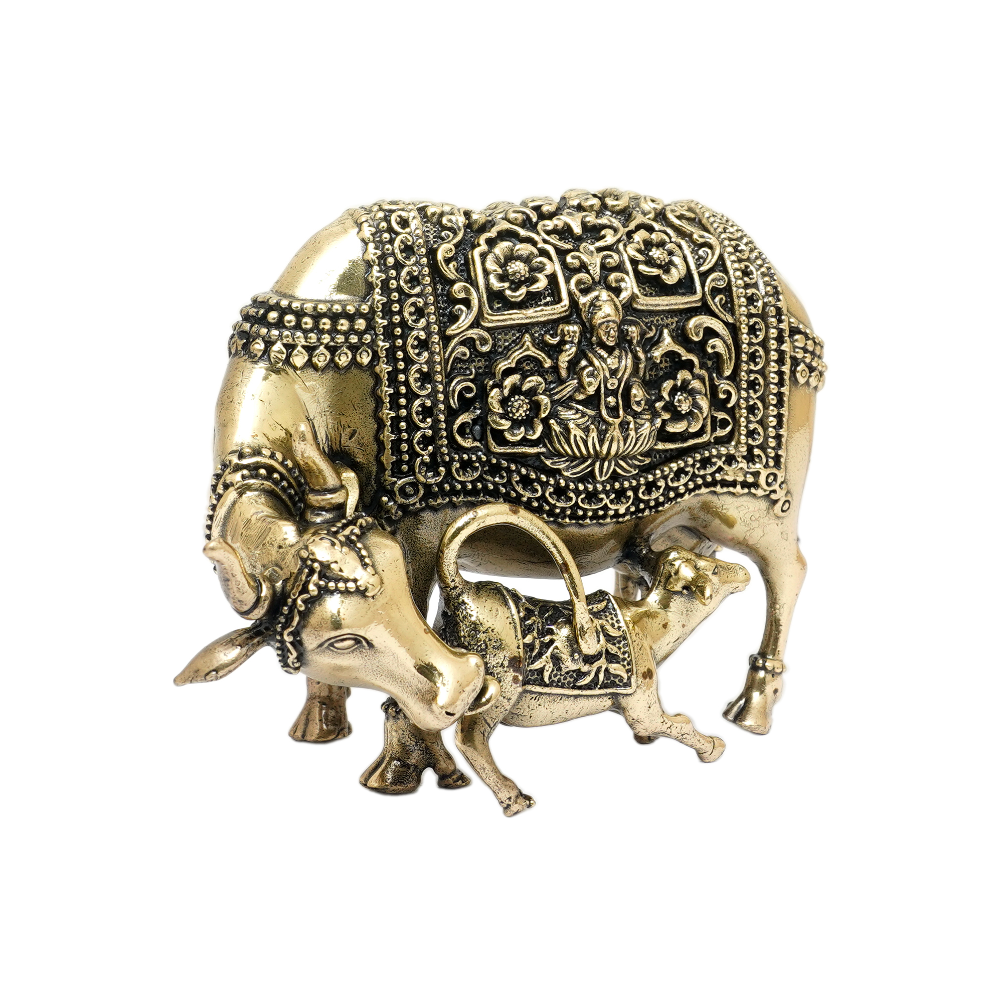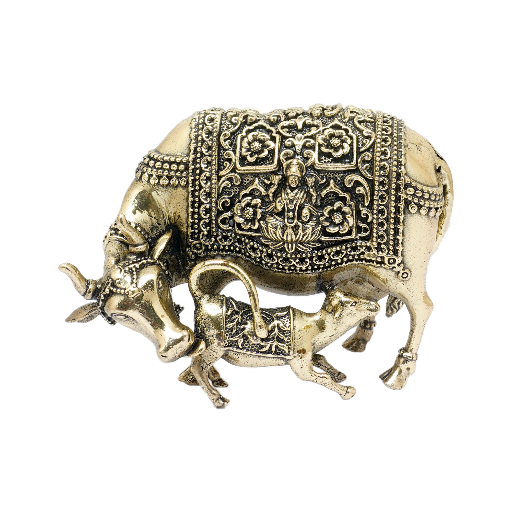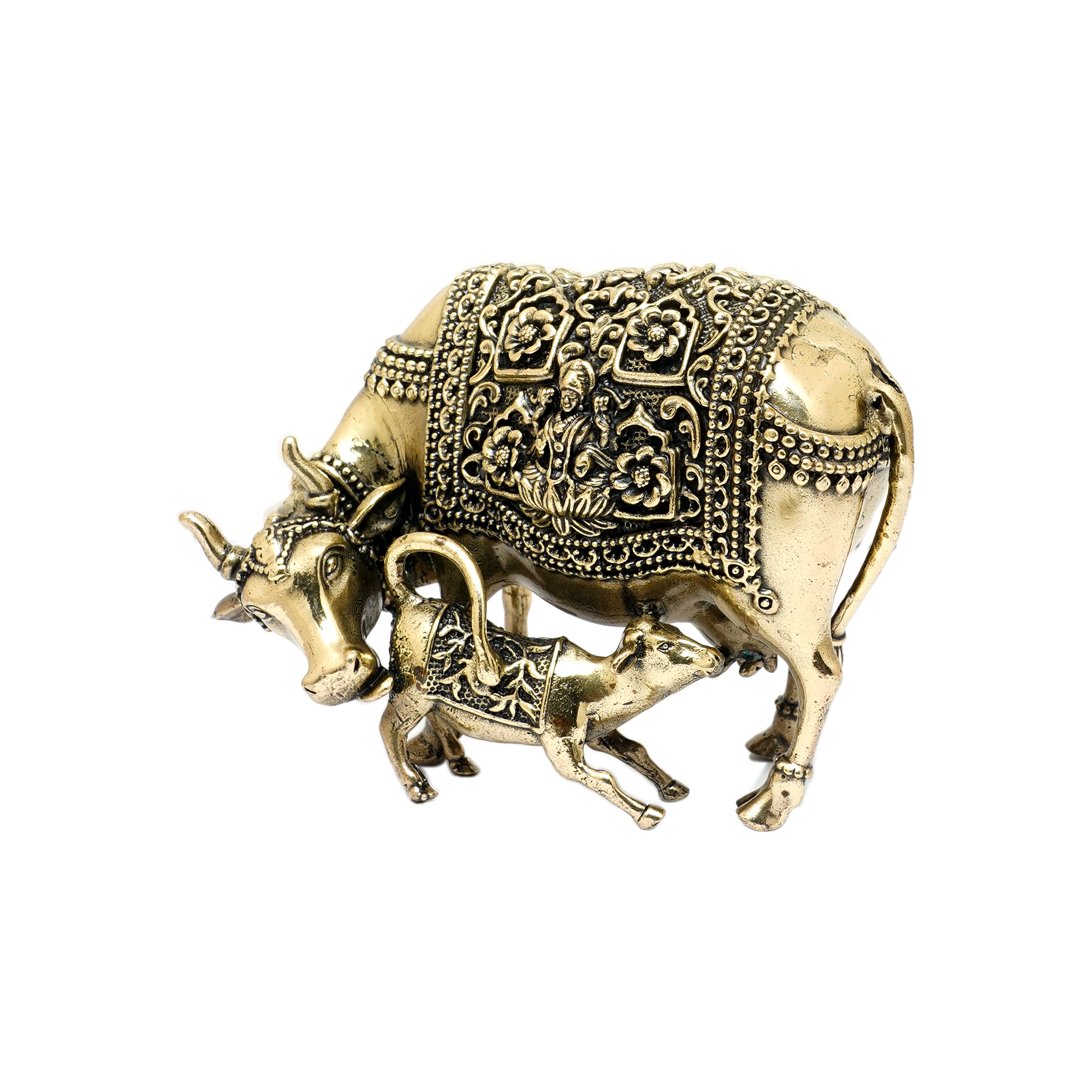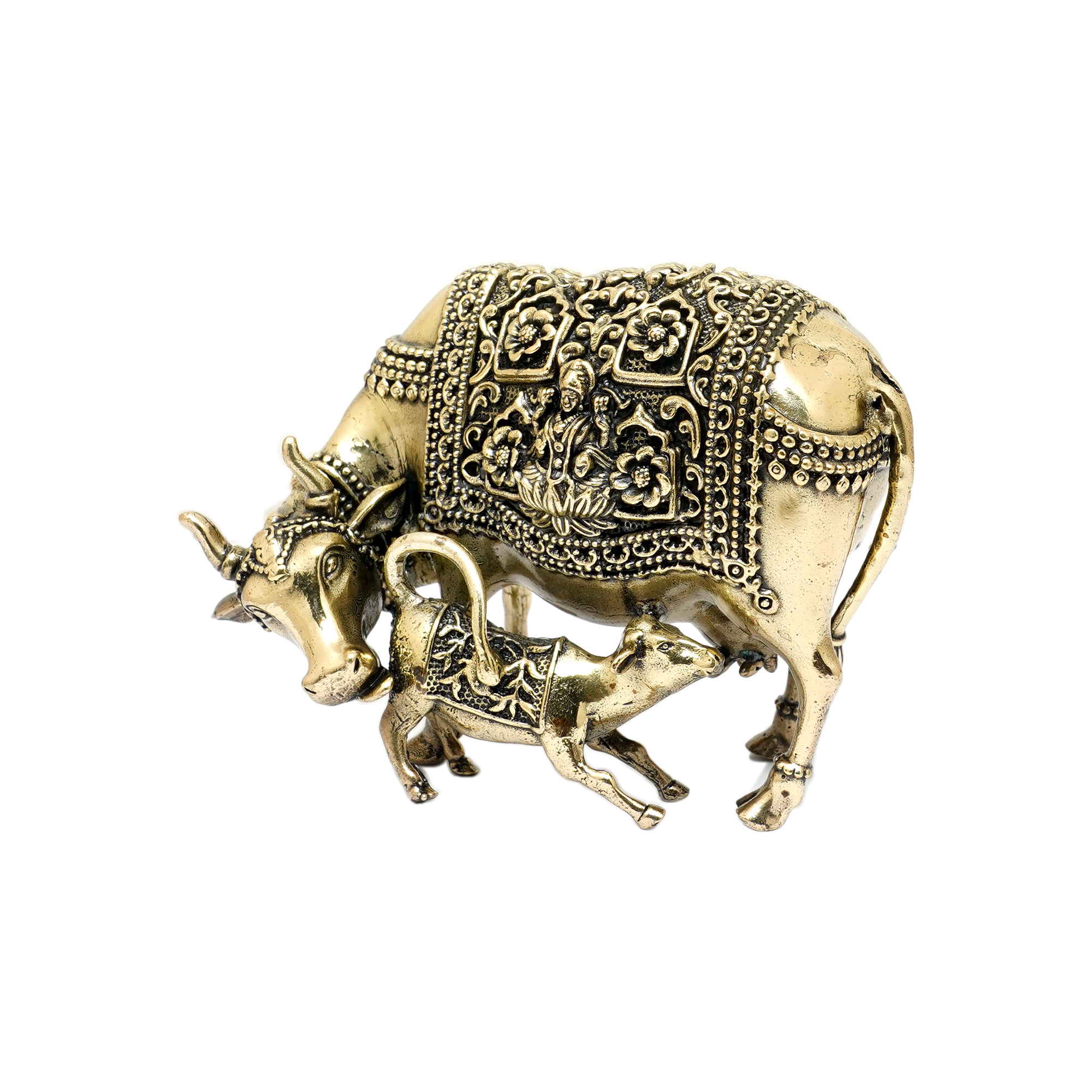Handcrafted Brass Cow & Calf figurine symbolising prosperity, abundance, and purity.