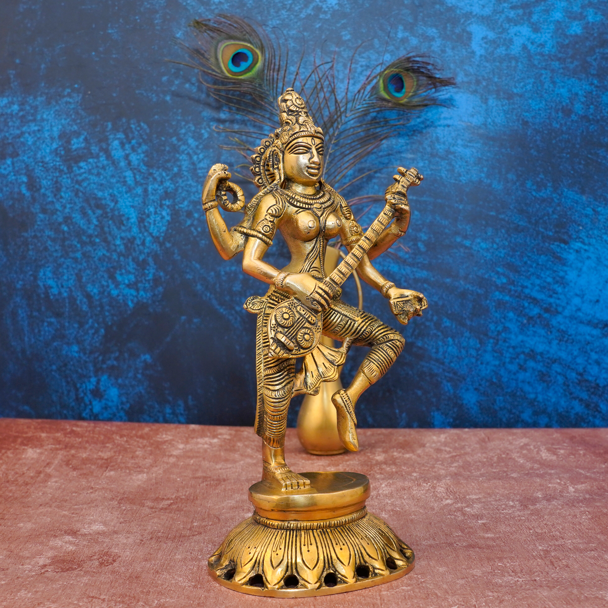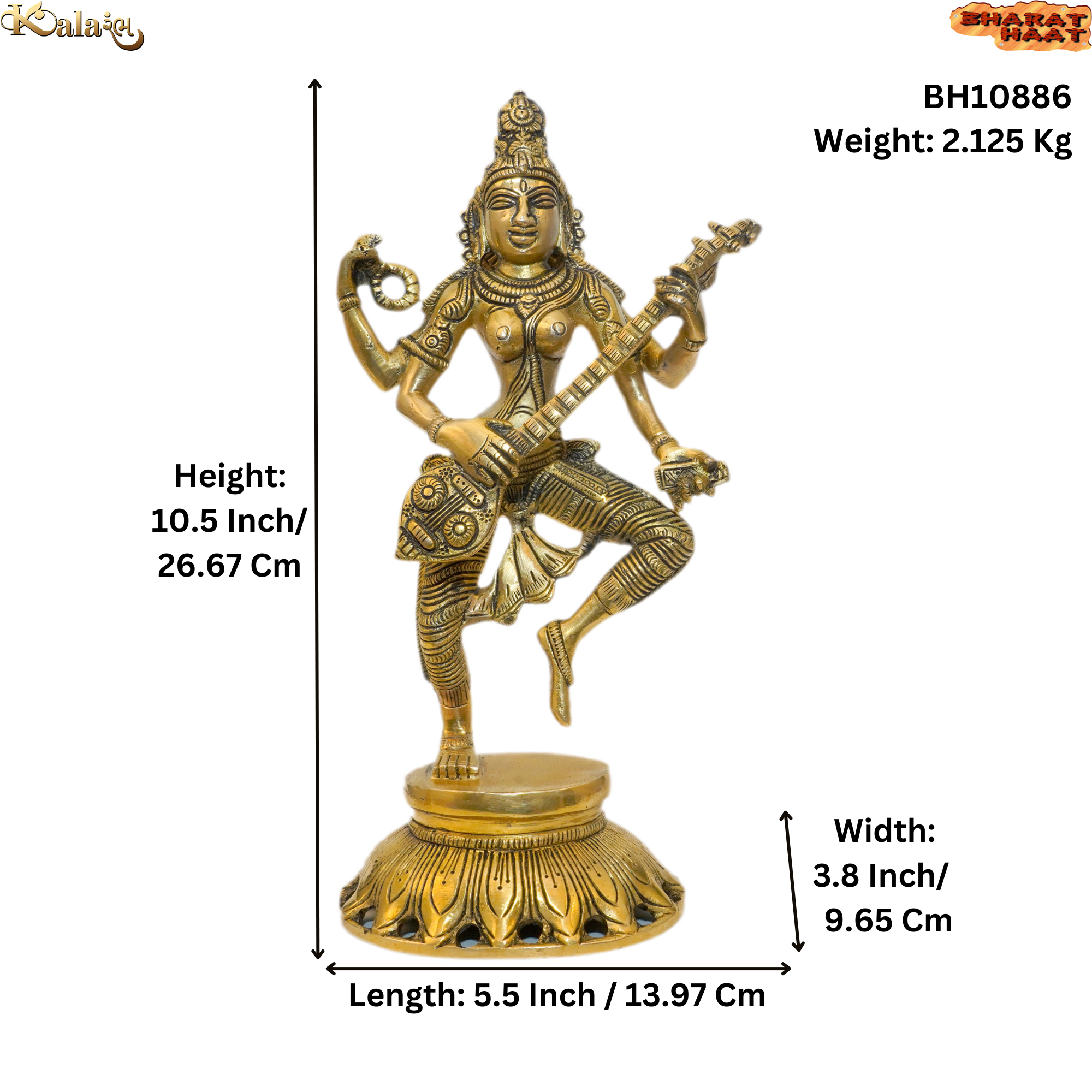 Expertly made from high-quality solid brass, this idol showcases intricate detailing, a majestic pose, and an antique golden finish that enhances its divine aura. Measuring 4 x 4 x 7 Inch (10.16 x 10.16 x 17.78 Cm) and weighing 1.725 Kg, this statue is strong, durable, and ideal for home temples, office desks, or meditation spaces.