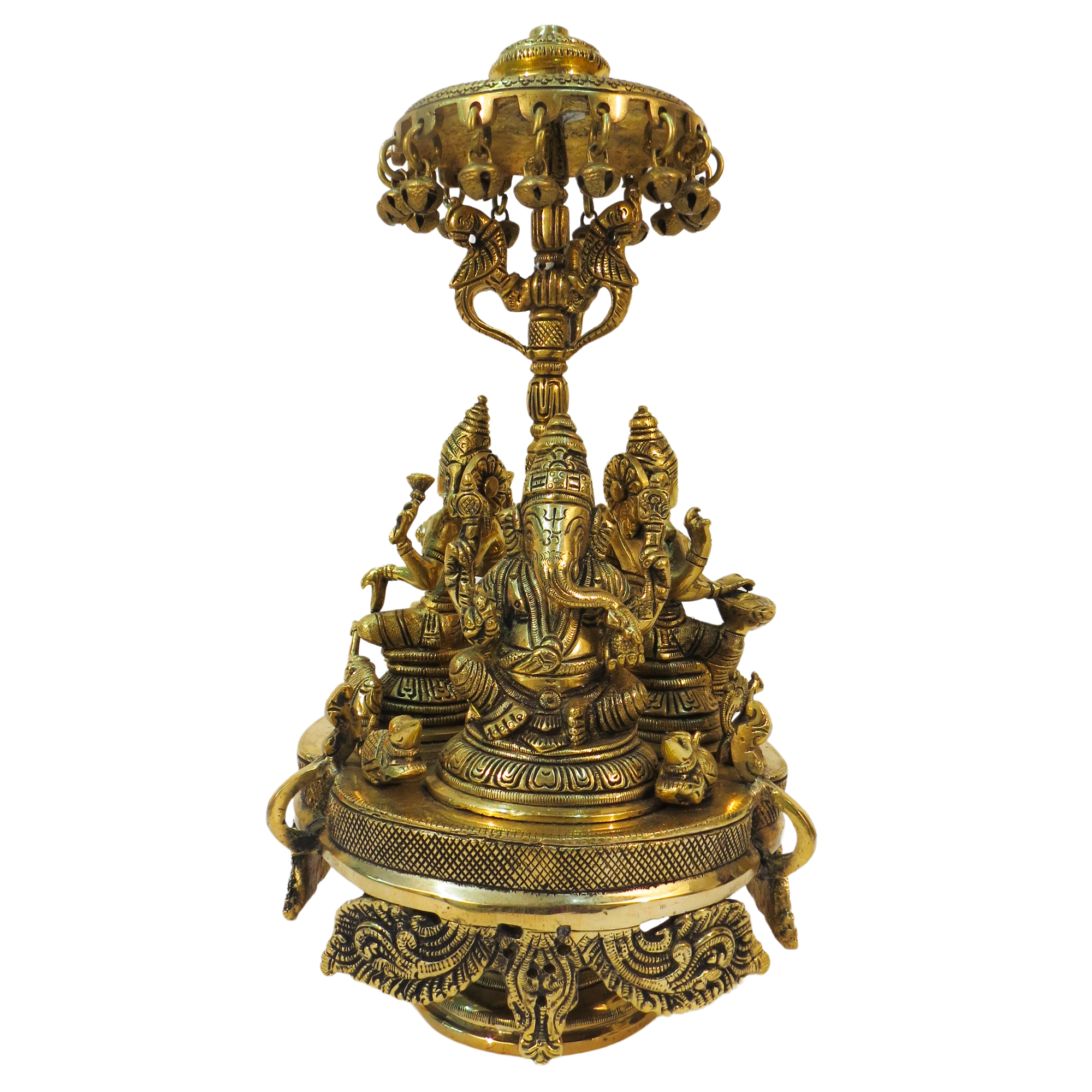 Elevate your sacred space with this stunning Brass Ganesh Laxmi Saraswati Idol on Singhasan, a masterpiece of traditional Indian artistry that embodies the holy trinity of success, wealth, and knowledge. Lord Ganesha, the remover of obstacles, stands gracefully alongside Goddess Lakshmi, the bestower of abundance, and Goddess Saraswati, the goddess of wisdom and arts – all perched on an ornate lion throne (Singhasan), symbolizing unyielding strength and divine grace. Perfect for Diwali pujas, home altars, office desks, or as a thoughtful gift for festivals and housewarmings, this idol promises to infuse your life with positive energies and timeless elegance.