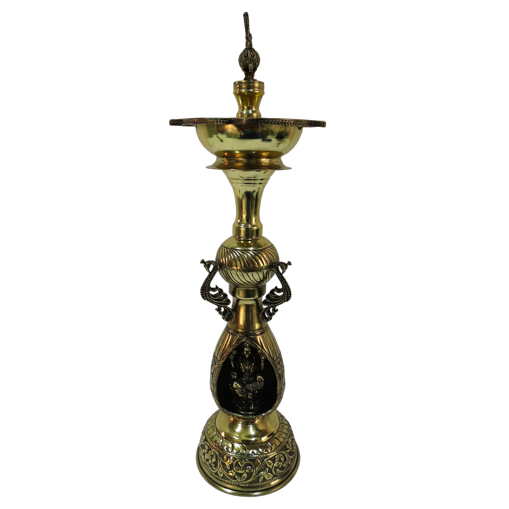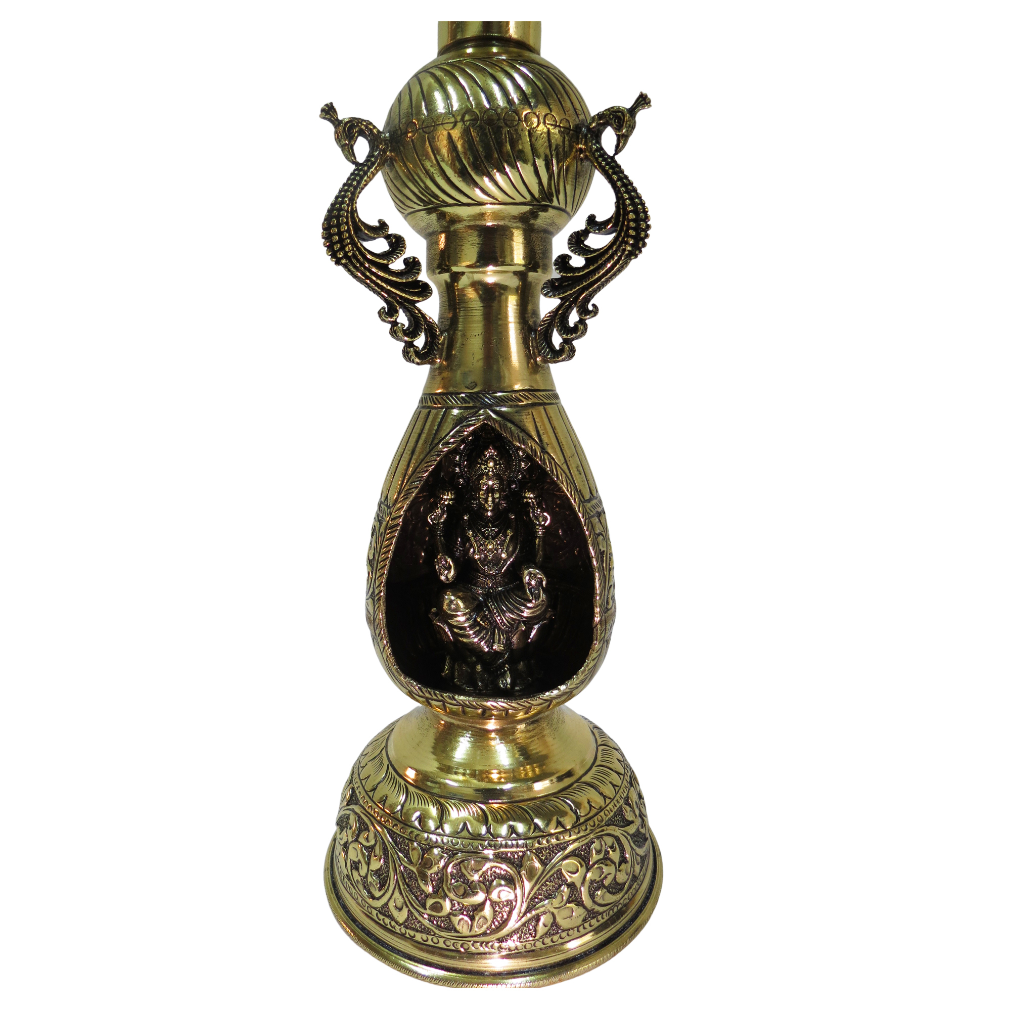 Experience divine illumination with this exquisite Brass Samai Laxmi Deepak, a handcrafted masterpiece that embodies traditional Indian culture and devotion. Designed with intricate details of Goddess Laxmi, it symbolizes wealth, purity, and prosperity. The lamp’s tall structure and wide base ensure stability, while its shining brass surface enhances the spiritual ambiance of your pooja room or temple.