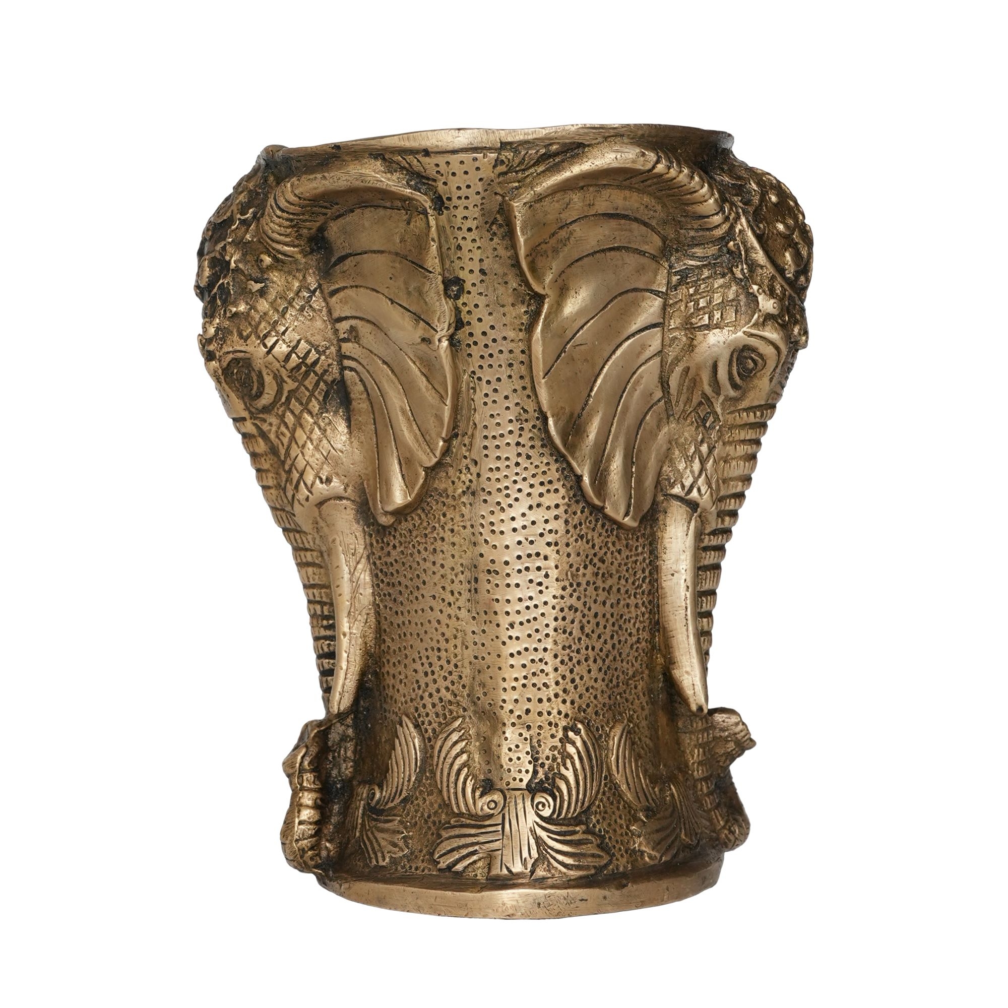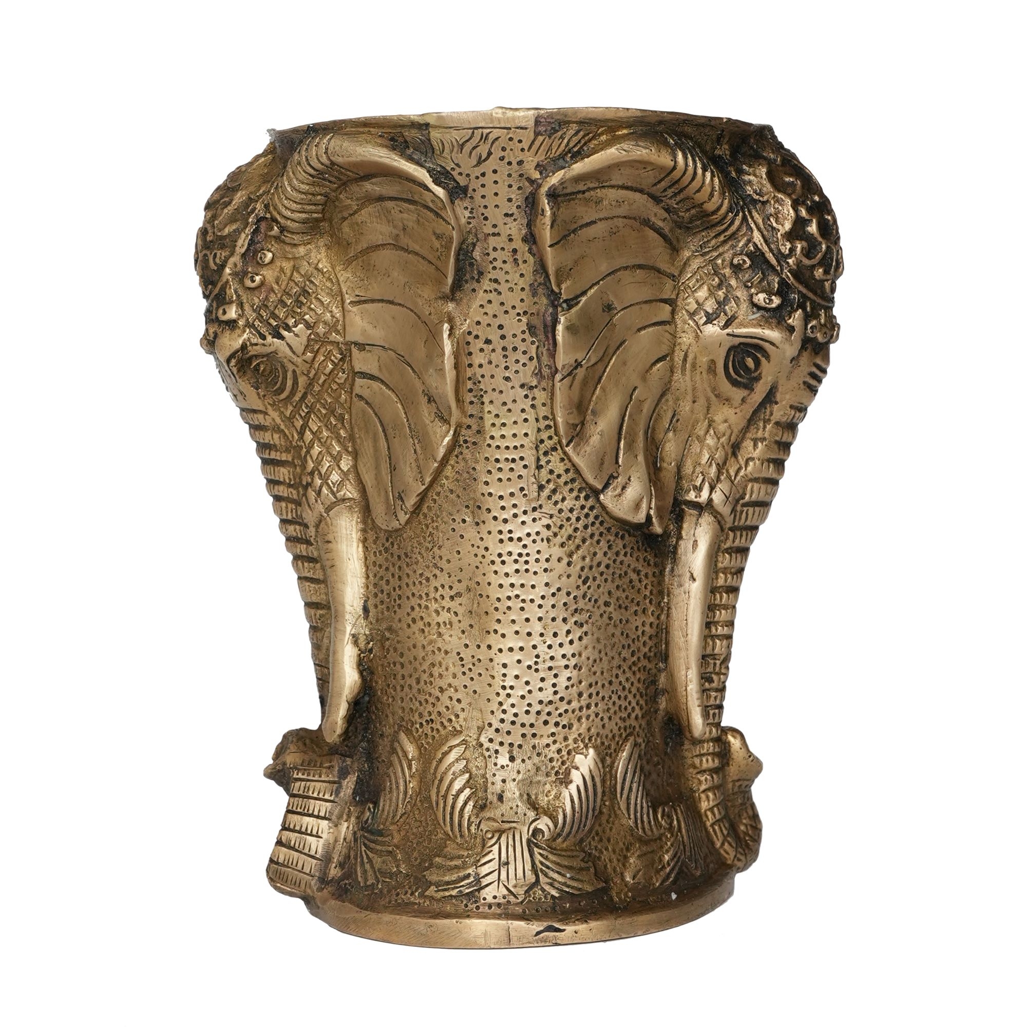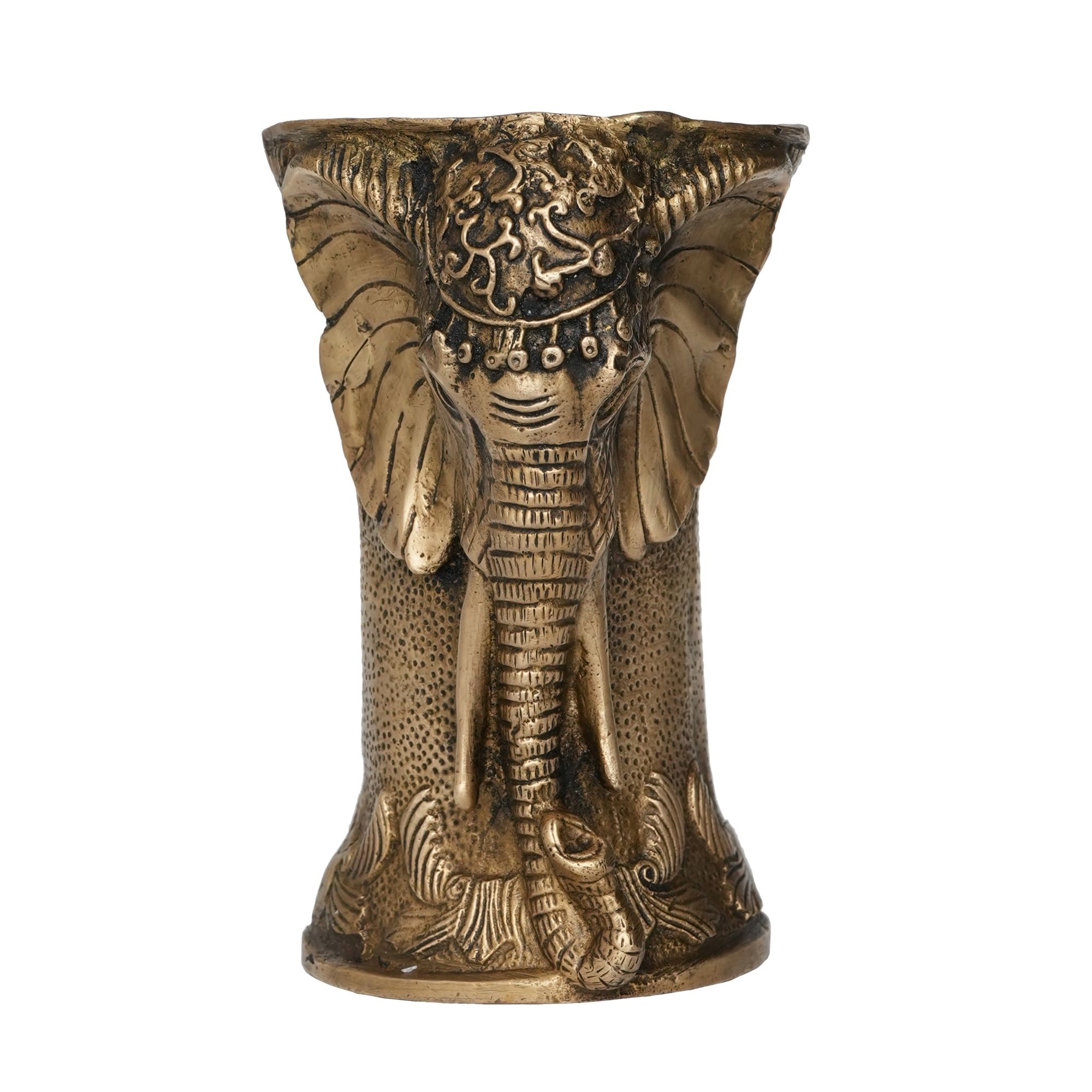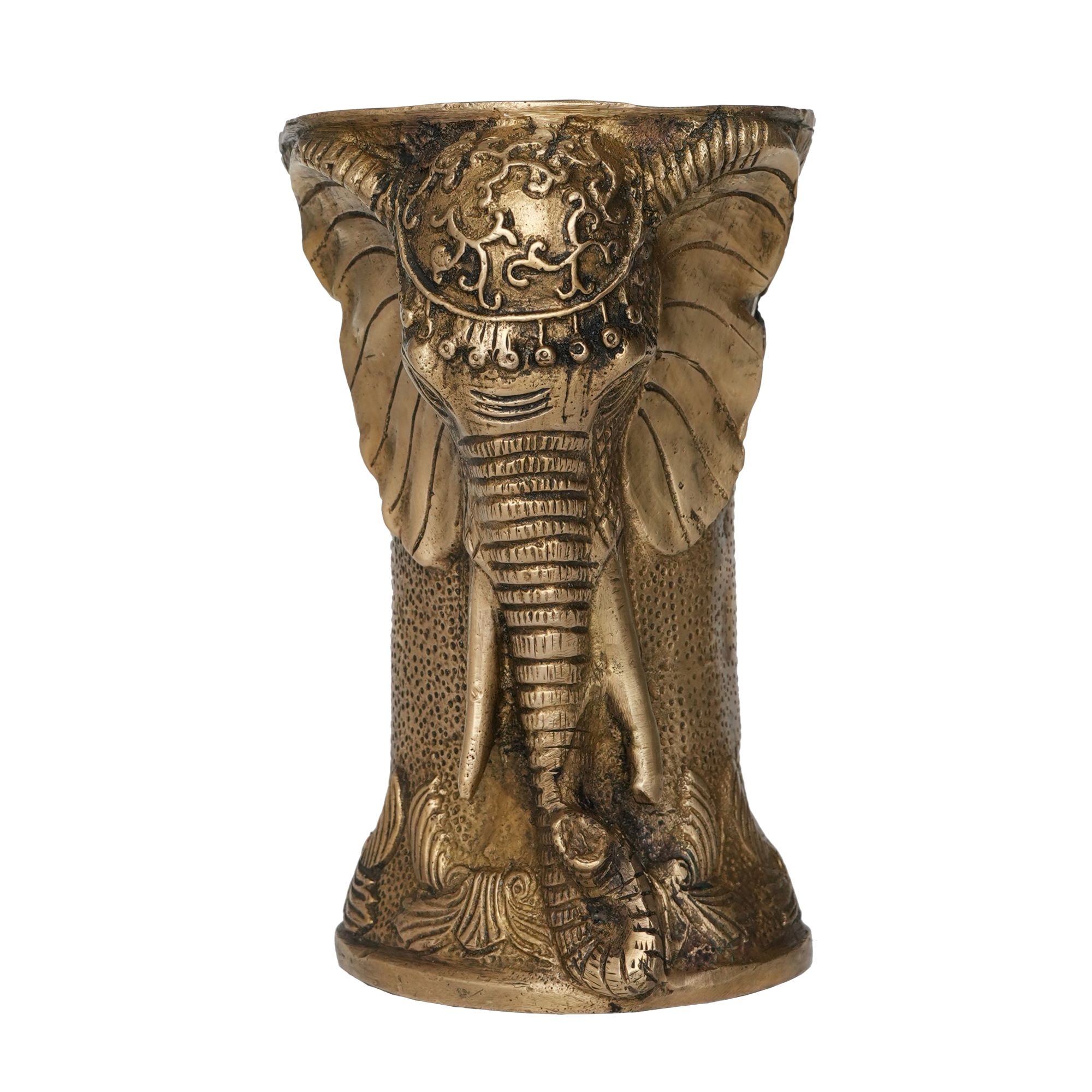 Its polished golden finish adds a warm, auspicious touch to your pooja room, temple, or living space. Sturdy and durable, it can also serve as a decorative piece on shelves, tables, or altars. Ideal for daily pooja rituals, festive celebrations, or as a thoughtful gift, this Brass Elephant Pot embodies both spiritual significance and artistic excellence.