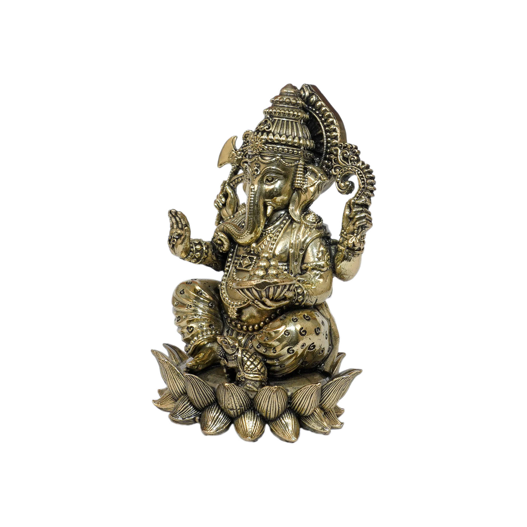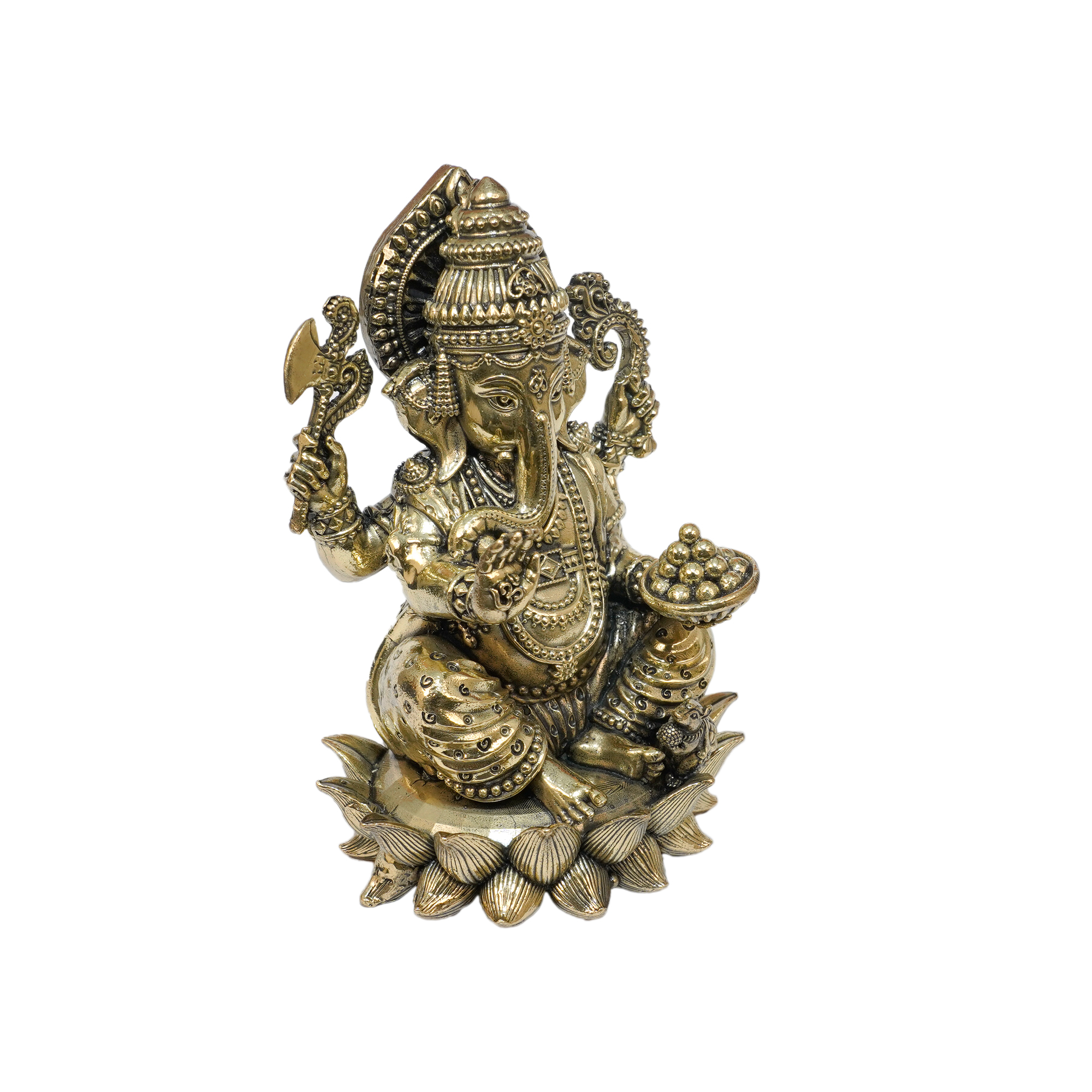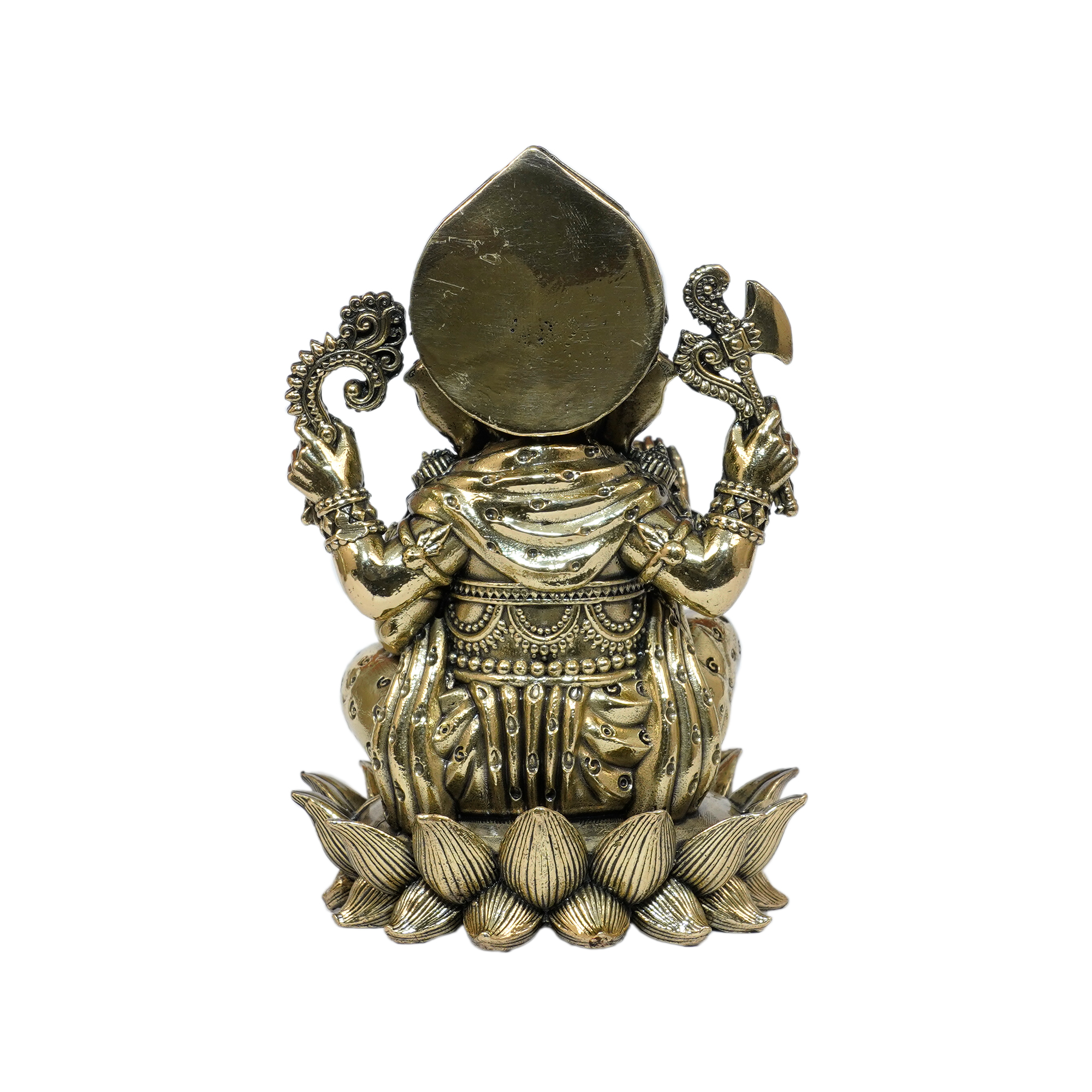 Intricate Craftsmanship – Finely detailed brass idol capturing the divine form of Lord Ganesha.