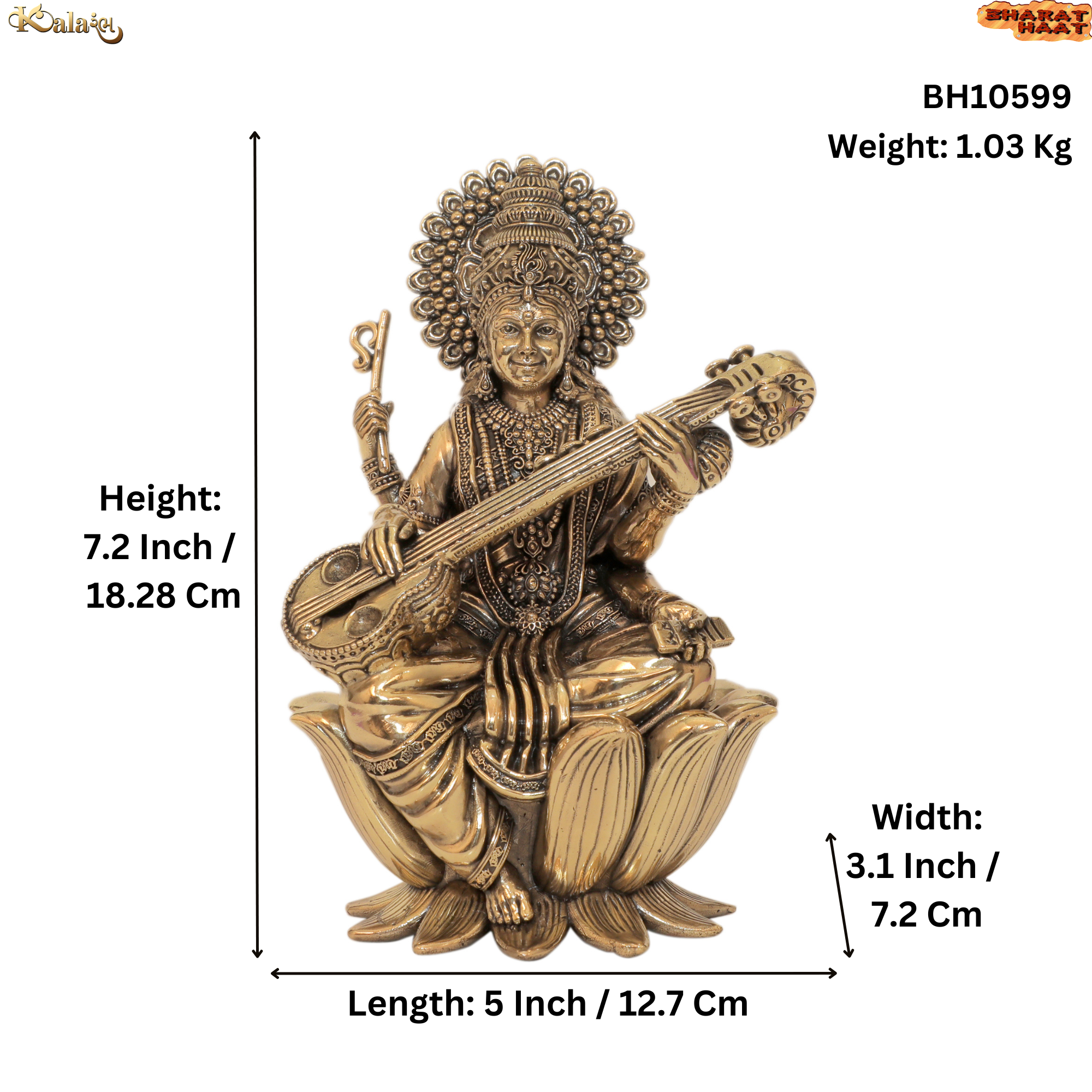 Exquisite Craftsmanship – Finely detailed brass idol capturing the divine beauty of Goddess Saraswati.