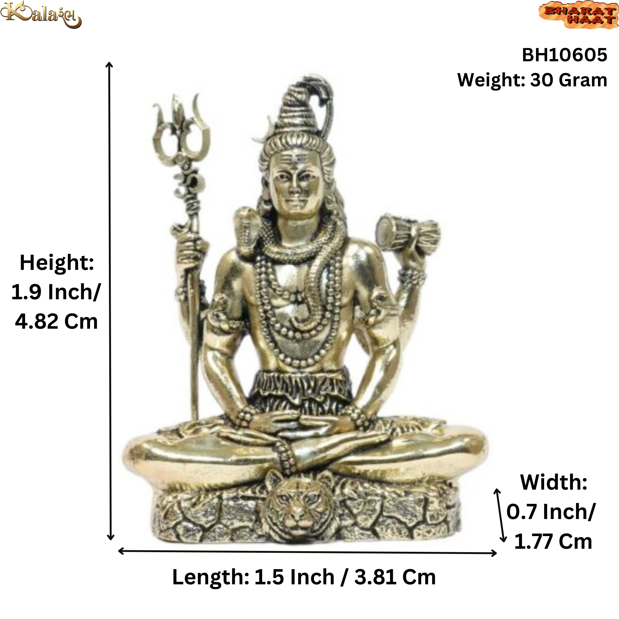 Handcrafted Small Brass Shiv Idol – 1.5 x 0.7 x 1.9 inches, weighing 30 grams. Ideal for pooja, home décor, or gifting to devotees of Lord Shiva.
