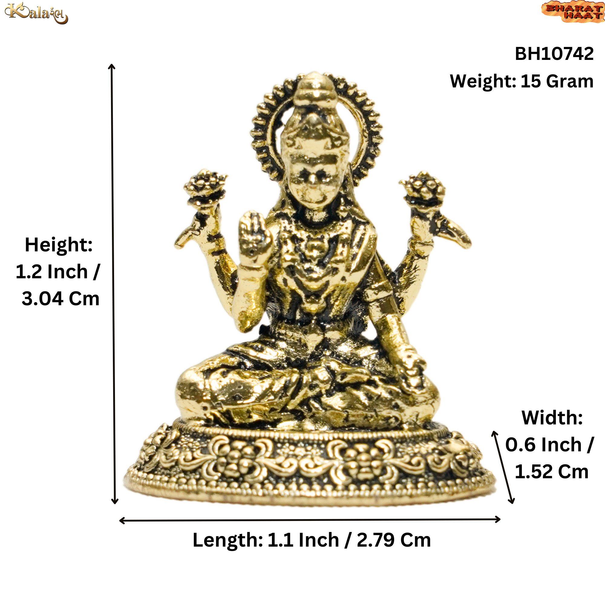 Handcrafted Mini Brass Lakshmi Idol – 1.1 x 0.6 x 1.2 inches, weighing 15 grams. Ideal for pooja, meditation, or home décor.