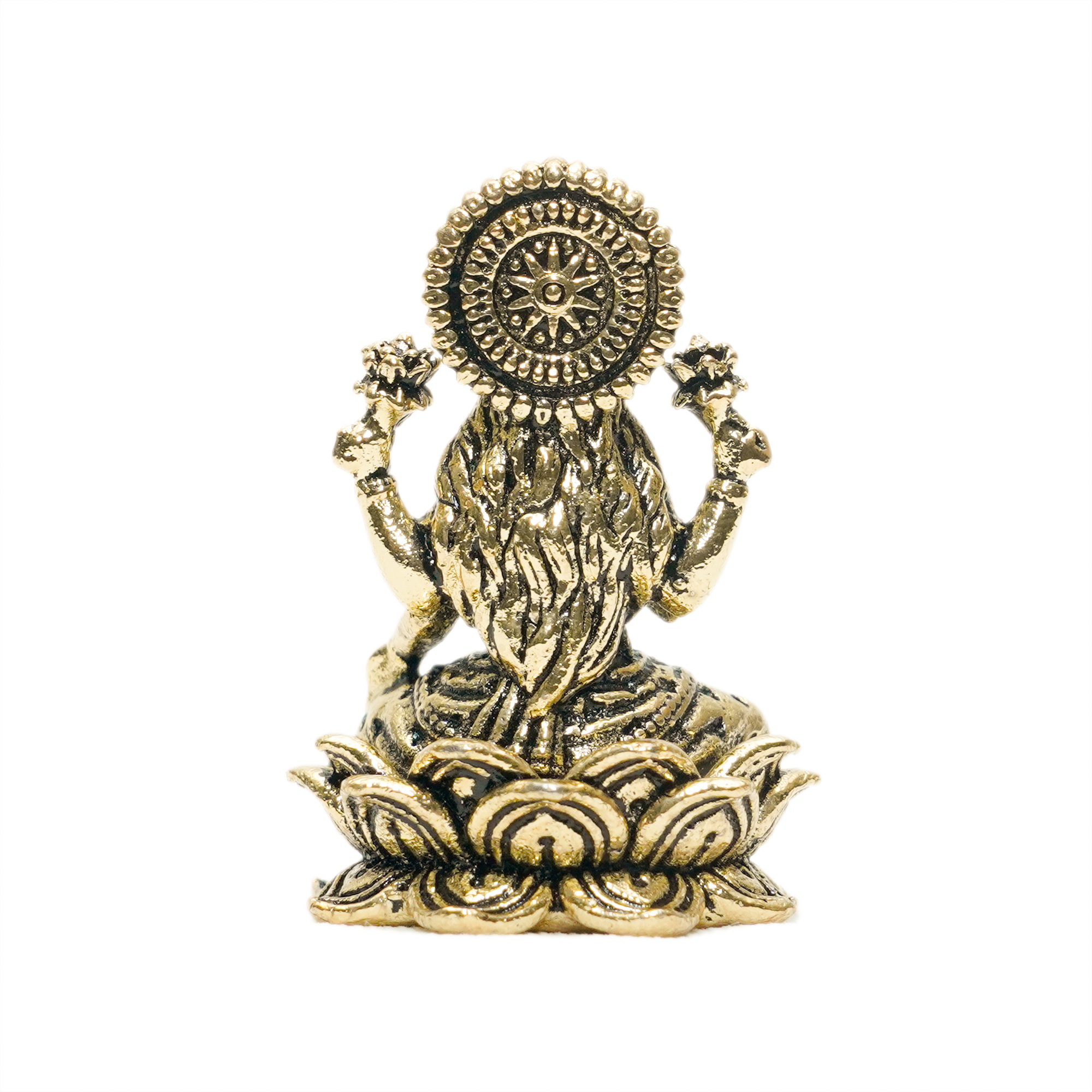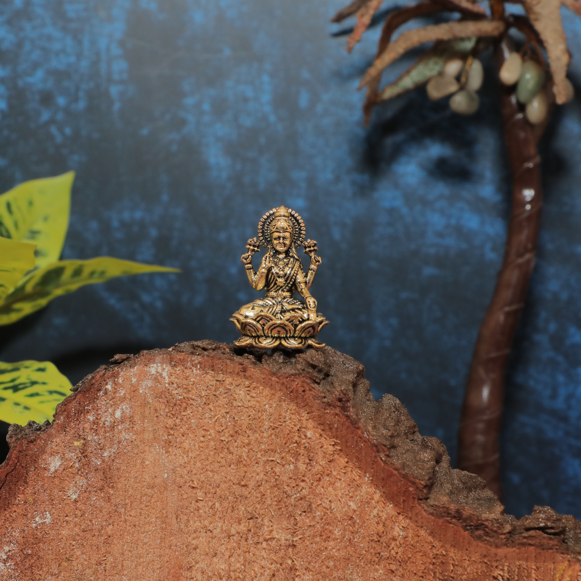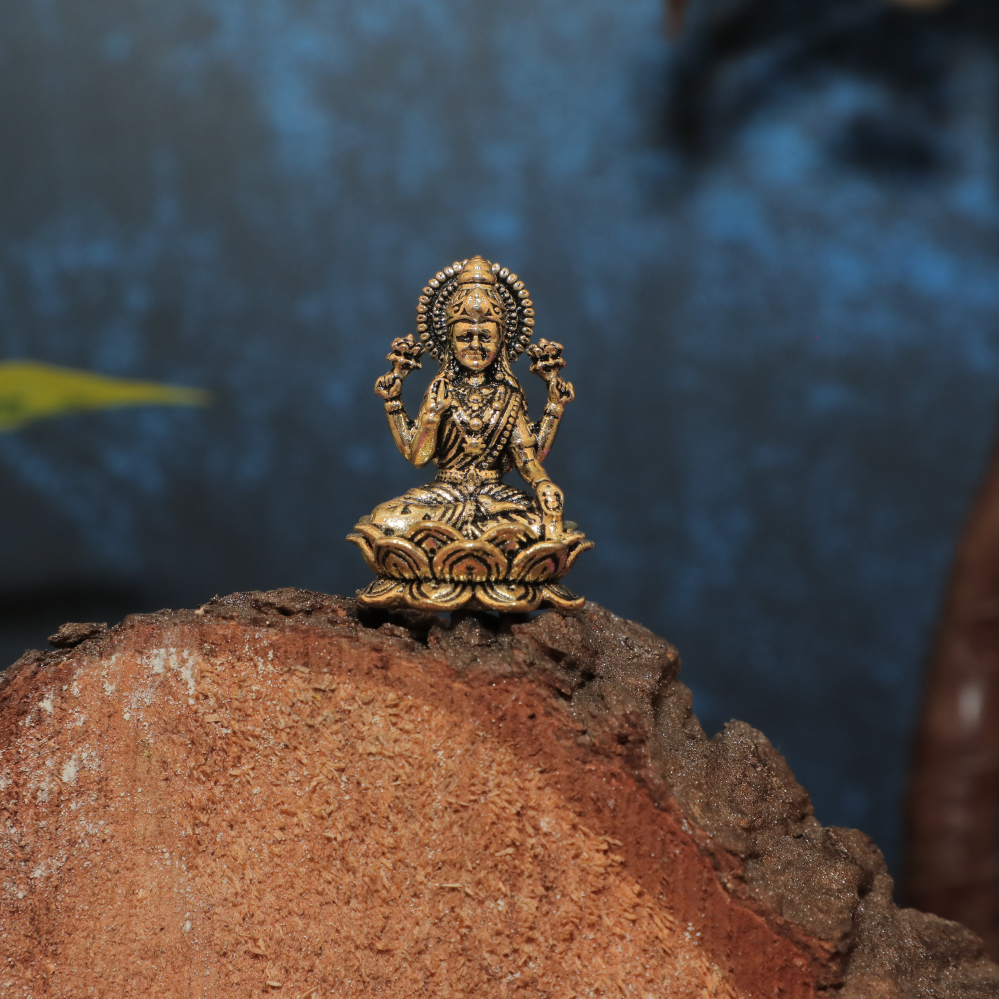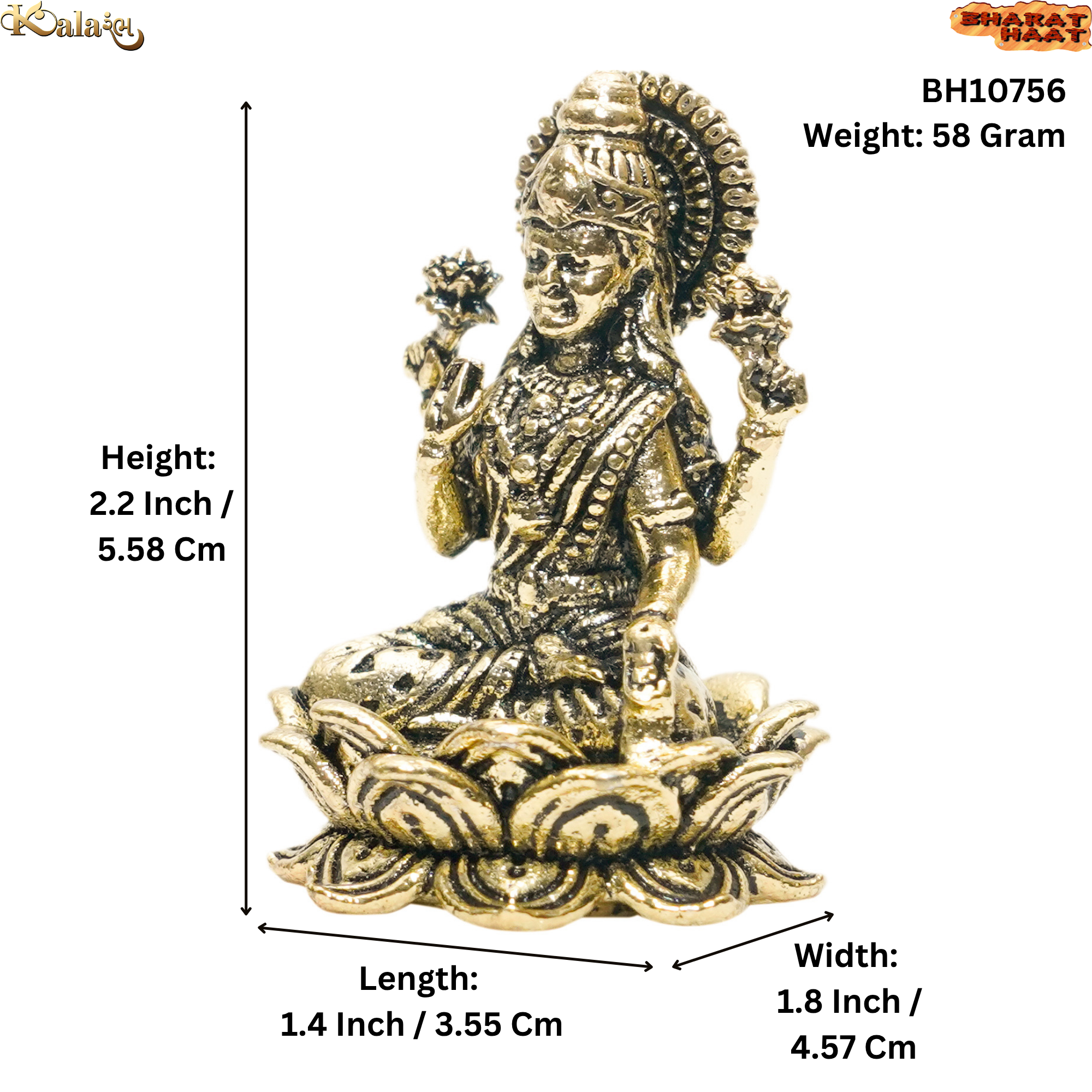 Handcrafted Brass Lakshmi Idol – 1.4 x 1.8 x 2.2 inches, weighing 90 grams. Ideal for pooja, meditation, or home décor.
