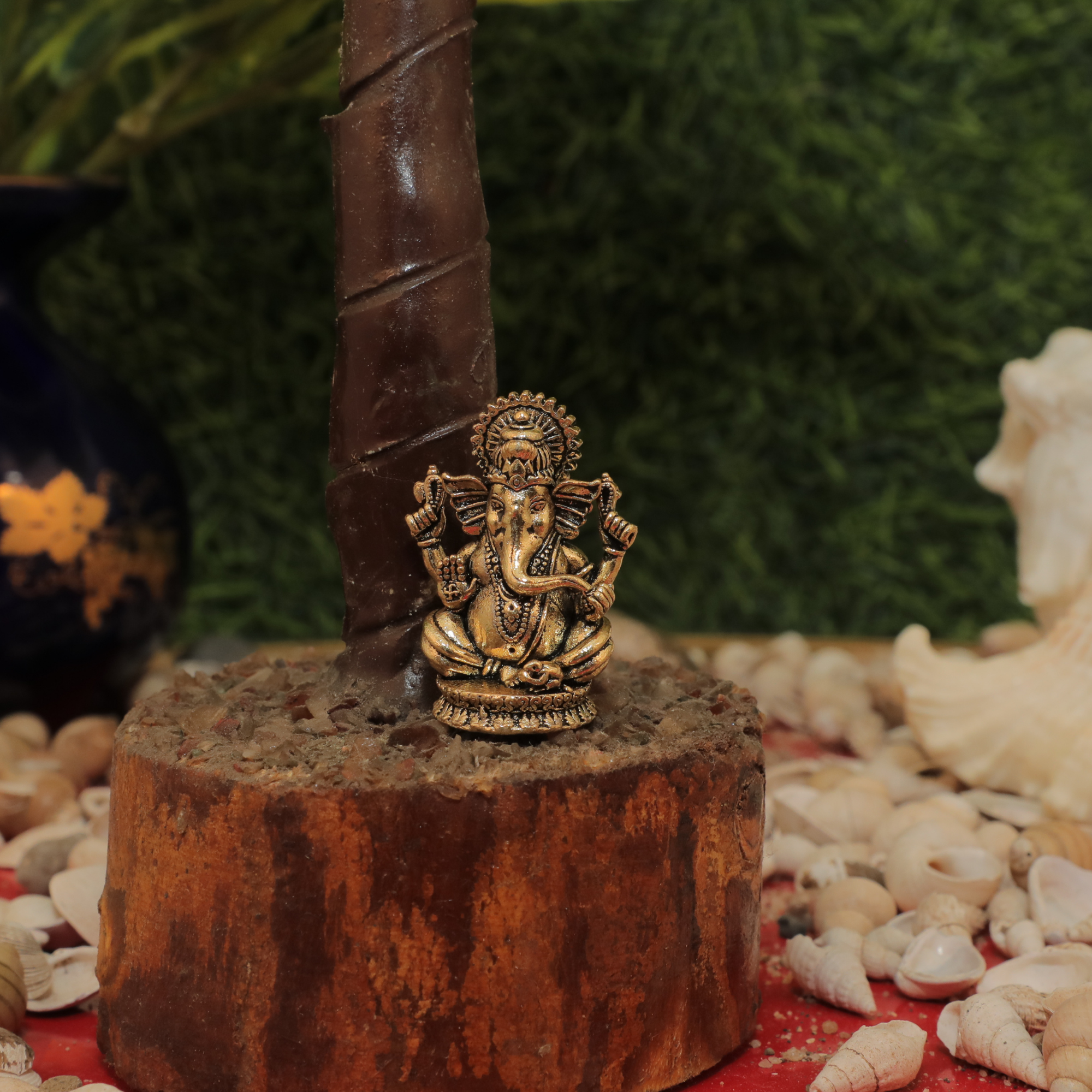 Delicate Craftsmanship – Expertly handcrafted miniature brass idol capturing Lord Ganesha’s divine form.