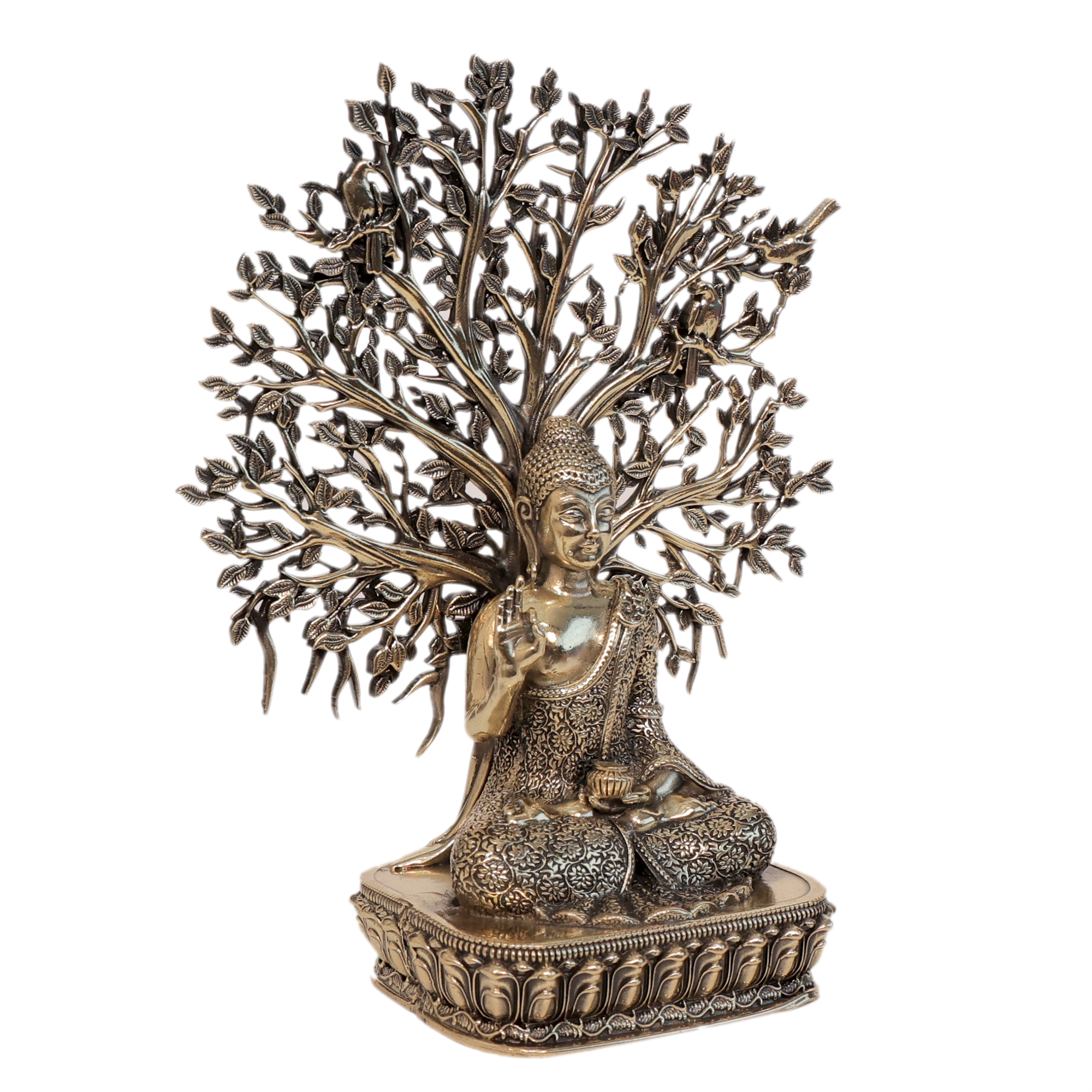 Bring serenity, mindfulness, and positive energy into your home with this handcrafted Brass Gautam Buddha Tree statue. Measuring 5.2 x 2.5 x 6.2 inches (13.2 x 6.35 x 15.74 cm) and weighing 315 grams, this beautifully detailed brass statue captures Gautam Buddha in deep meditation under a tree, symbolizing wisdom, peace, and enlightenment.