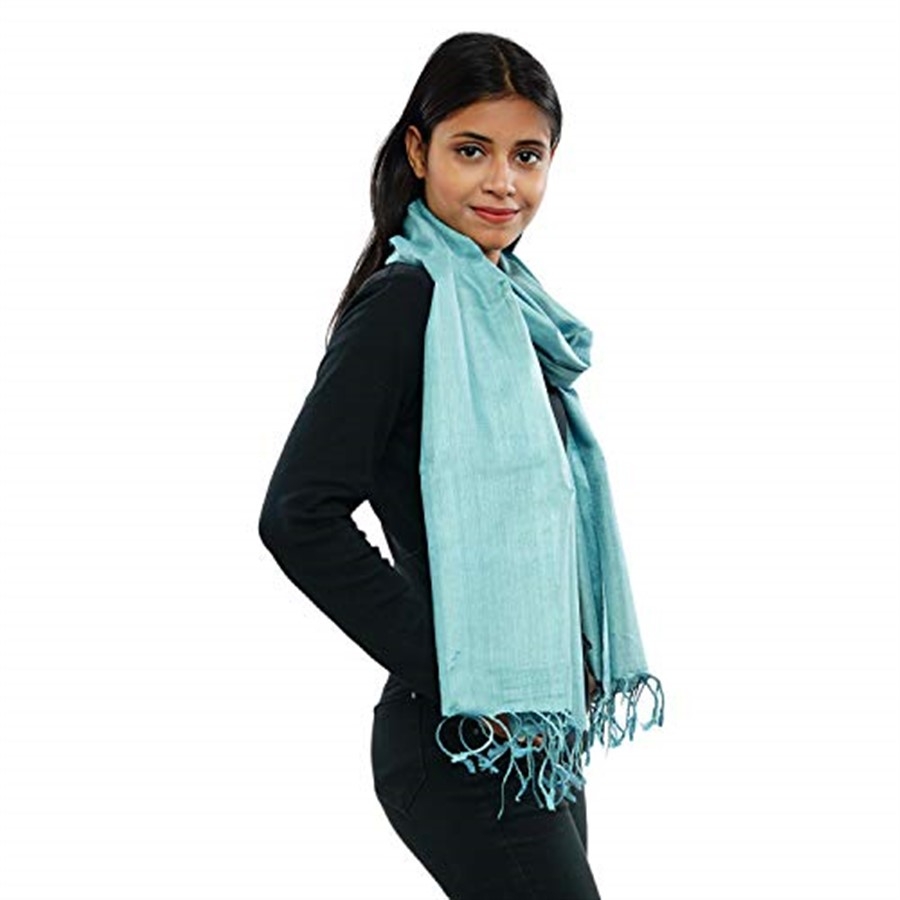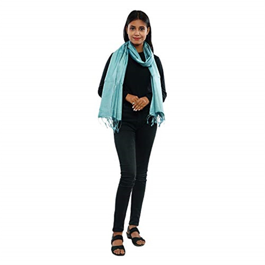 Pure Handloom Tasar Silk Dyed Stole | Sky Blue