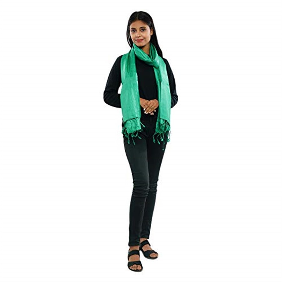 Pure Handloom Tasar Silk Dyed Stole | Sea Green