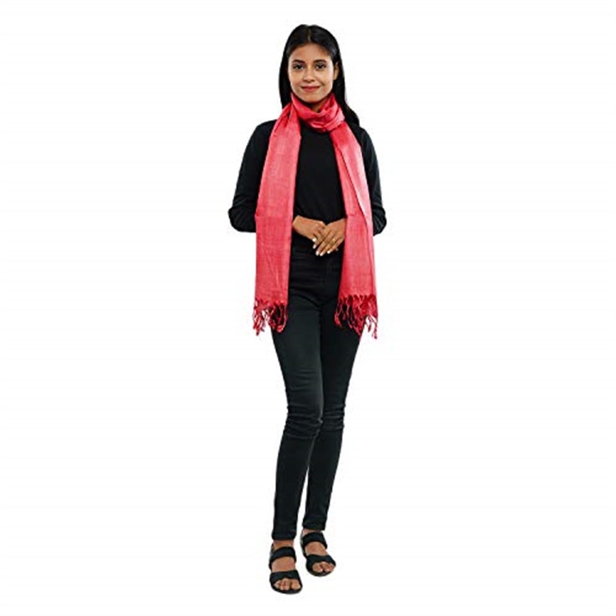 Pure Handloom Tasar Silk Dyed Stole | Red