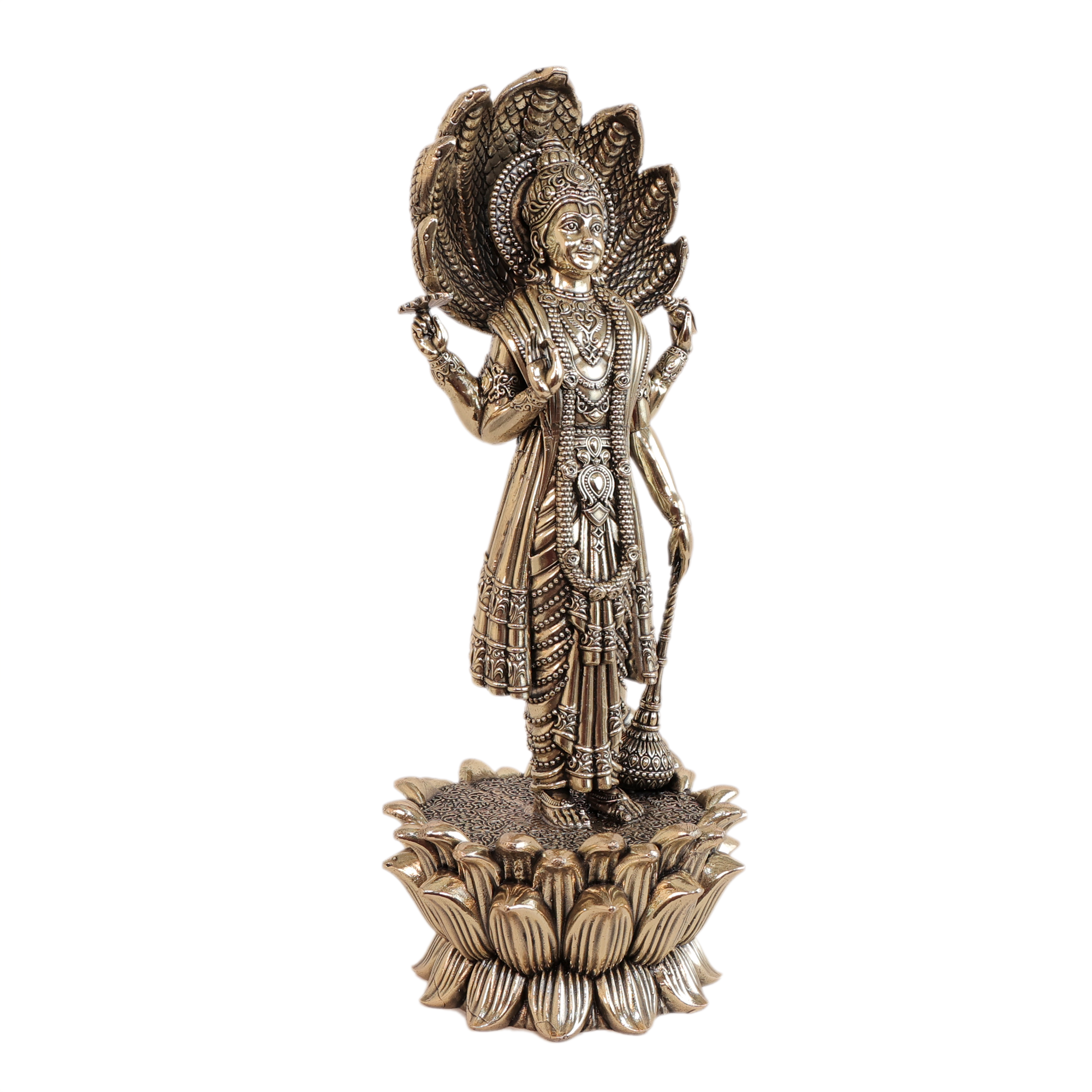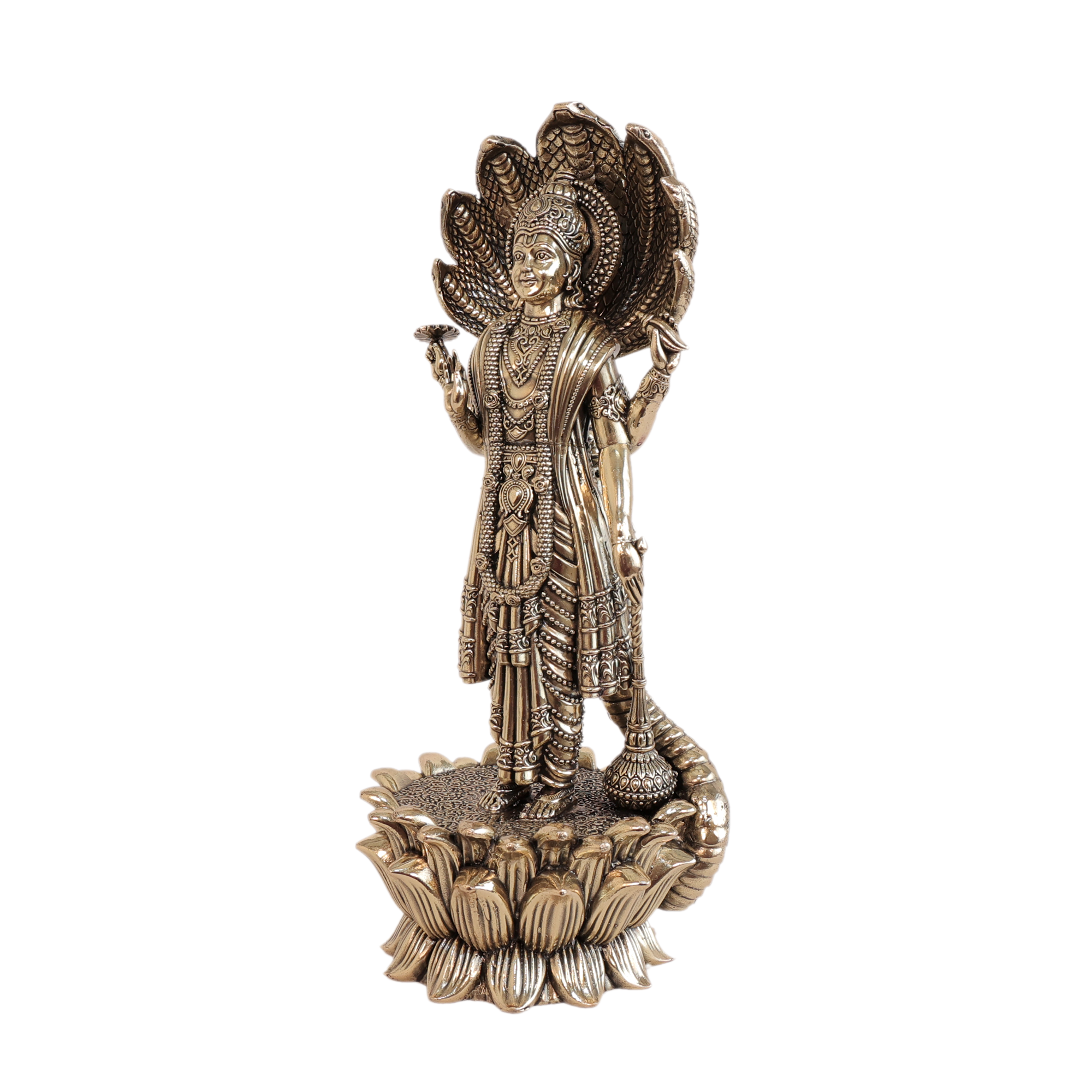 Design:Traditional depiction of Lord Vishnu with four arms and divine attributes (Shankha, Chakra, Gada, Padma).