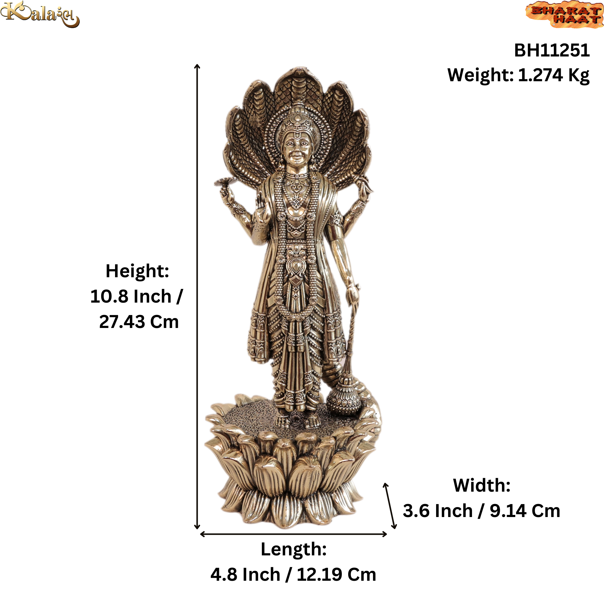 Invite divine blessings with this Brass Vishnu Statue by KBHarat Haat™ — intricately handcrafted, ideal for home altars, temple décor, and gifting.