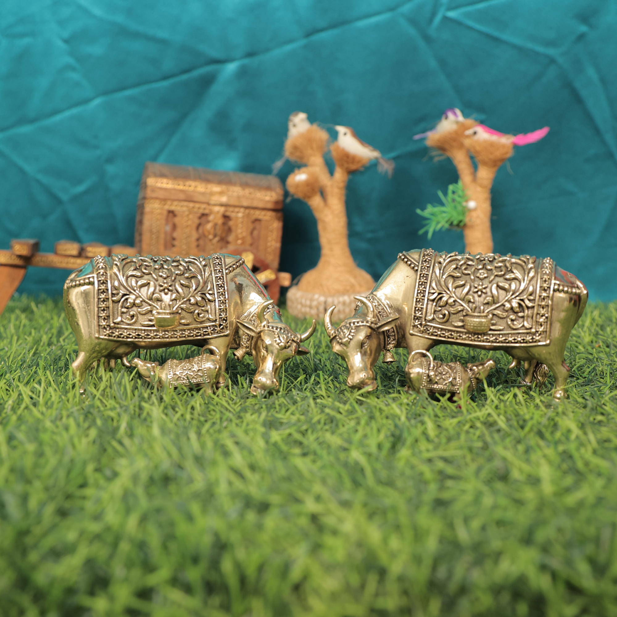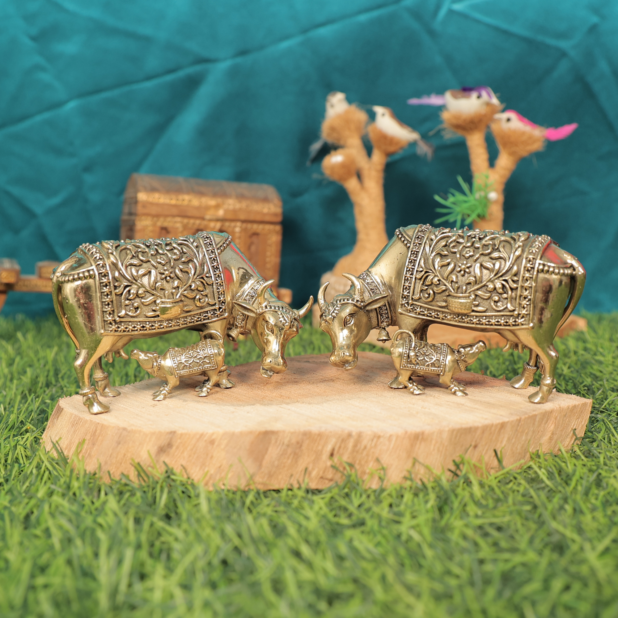 Celebrate tradition and devotion with this Brass Cow & Calf, featuring intricate craftsmanship and a polished brass finish.