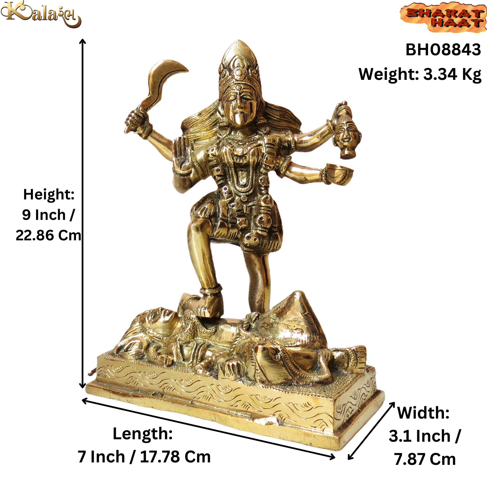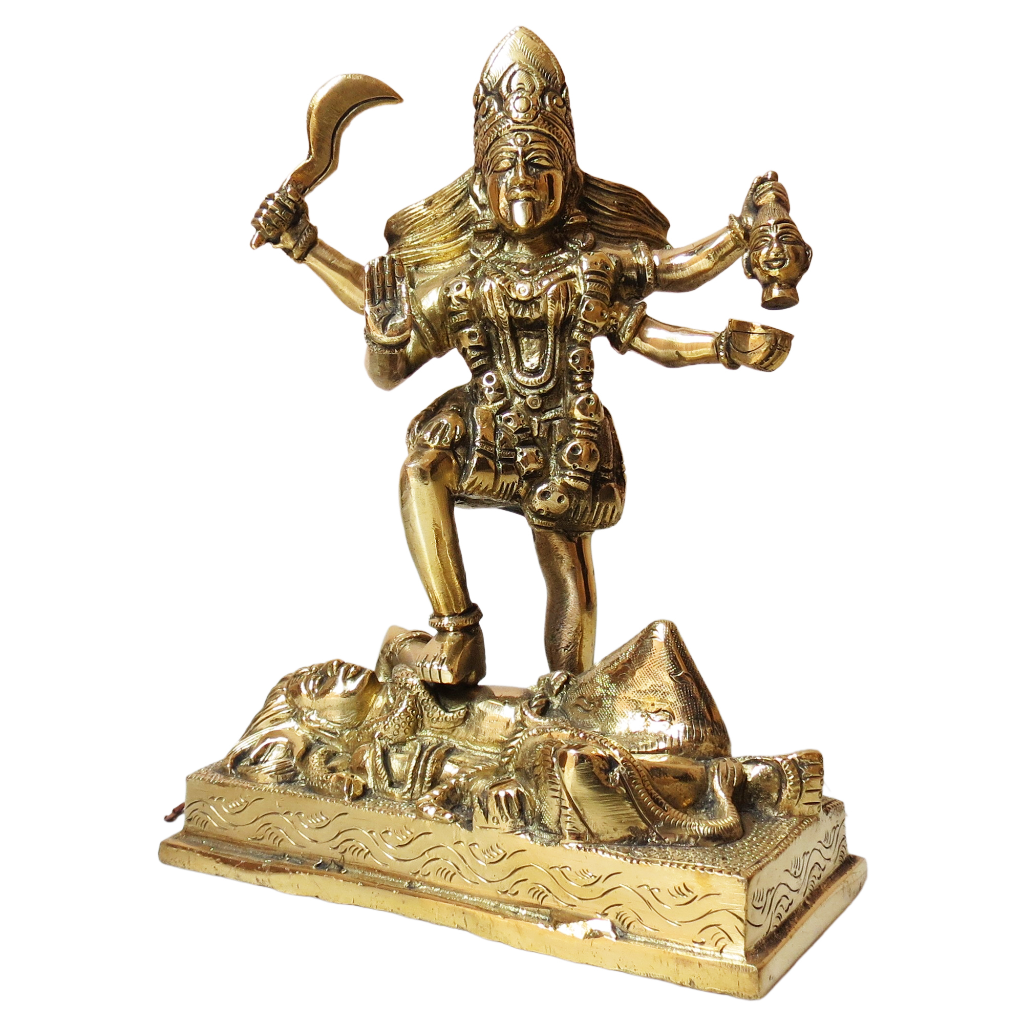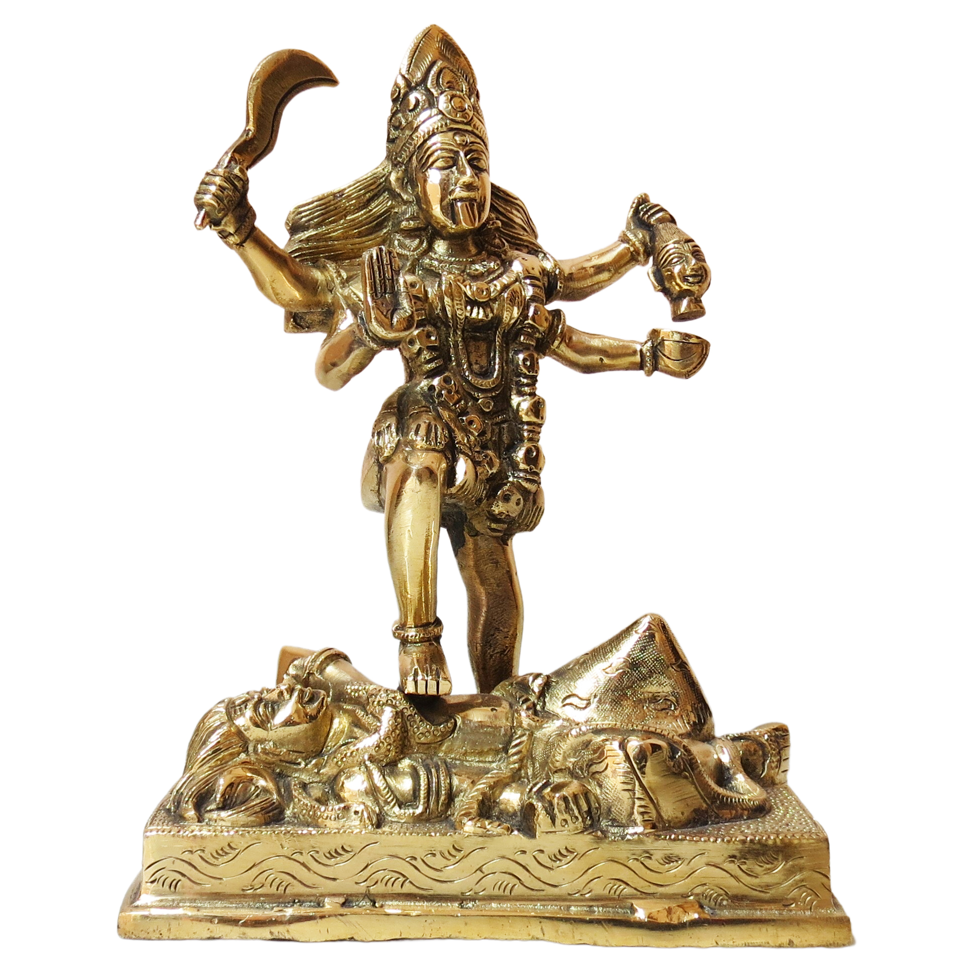 Invoke divine energy and strength with this Handcrafted Brass Kalika Devi Statue, a powerful and artistic representation of Goddess Kali – the symbol of Shakti (divine feminine power), courage, and protection. Expertly made by skilled Indian artisans, this idol is crafted from high-quality solid brass with fine detailing and an antique golden finish.