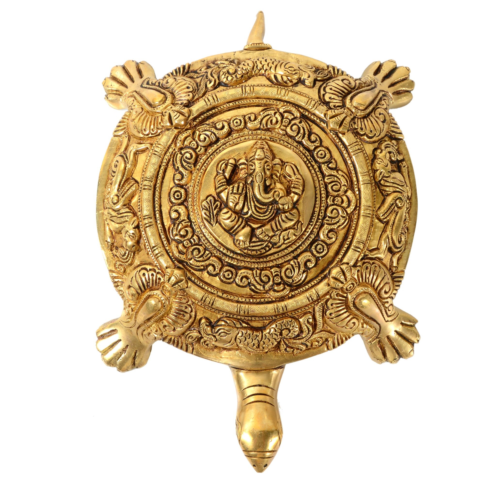 Made from 100% pure solid brass with detailed Ganesha carving on the tortoise shell.