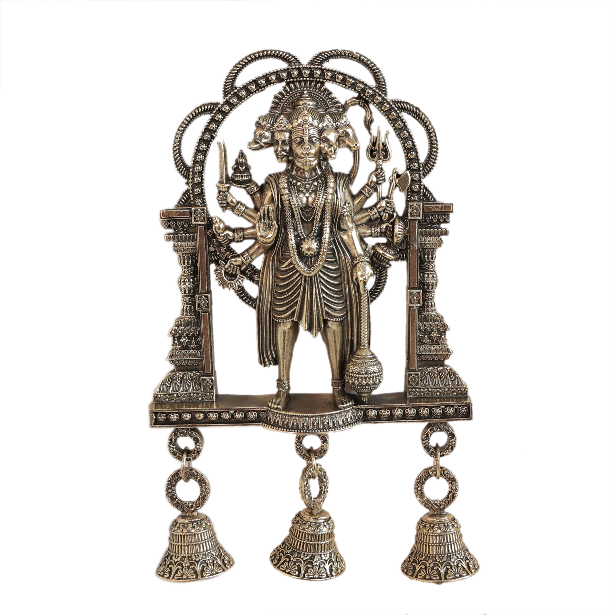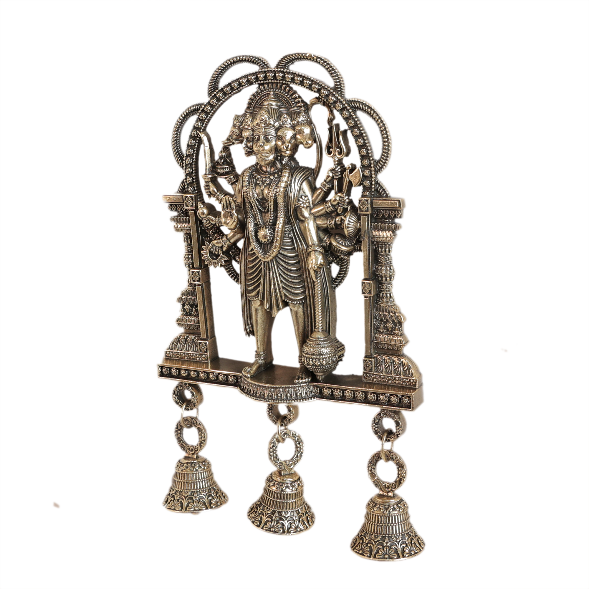 Beautifully handcrafted Brass Panchmukhi Hanuman Wall Hanging Bell for your home or temple.