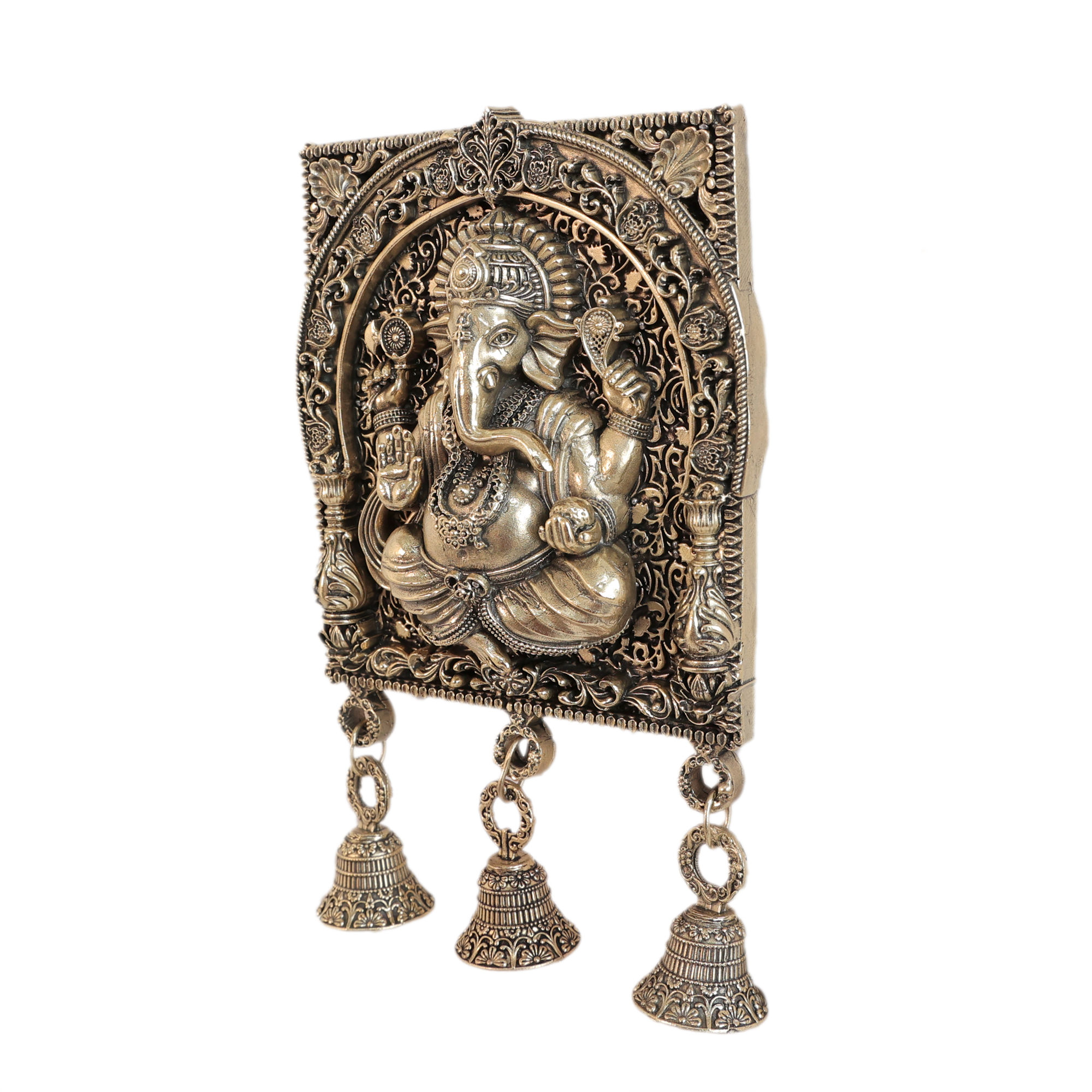 Handcrafted Brass Ganesha Wall Hanging Bell for home temples and entrances.