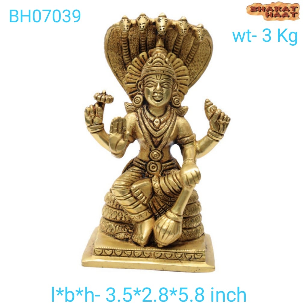 Handcrafted Brass Vishnu – Elegant and finely detailed idol perfect for home décor or pooja. Dimensions: 3.5 x 2.8 x 5.8 inches, Weight: 3 Kg.