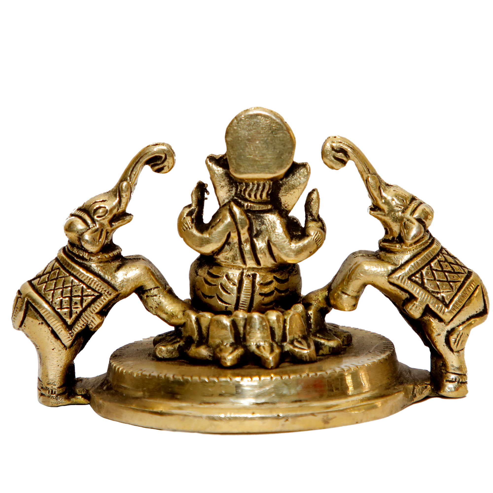 Handcrafted Brass GUJ Ganesha – Compact and detailed idol ideal for home décor or pooja. Dimensions: 3.8 x 2.3 x 2.5 inches, Weight: 300g.