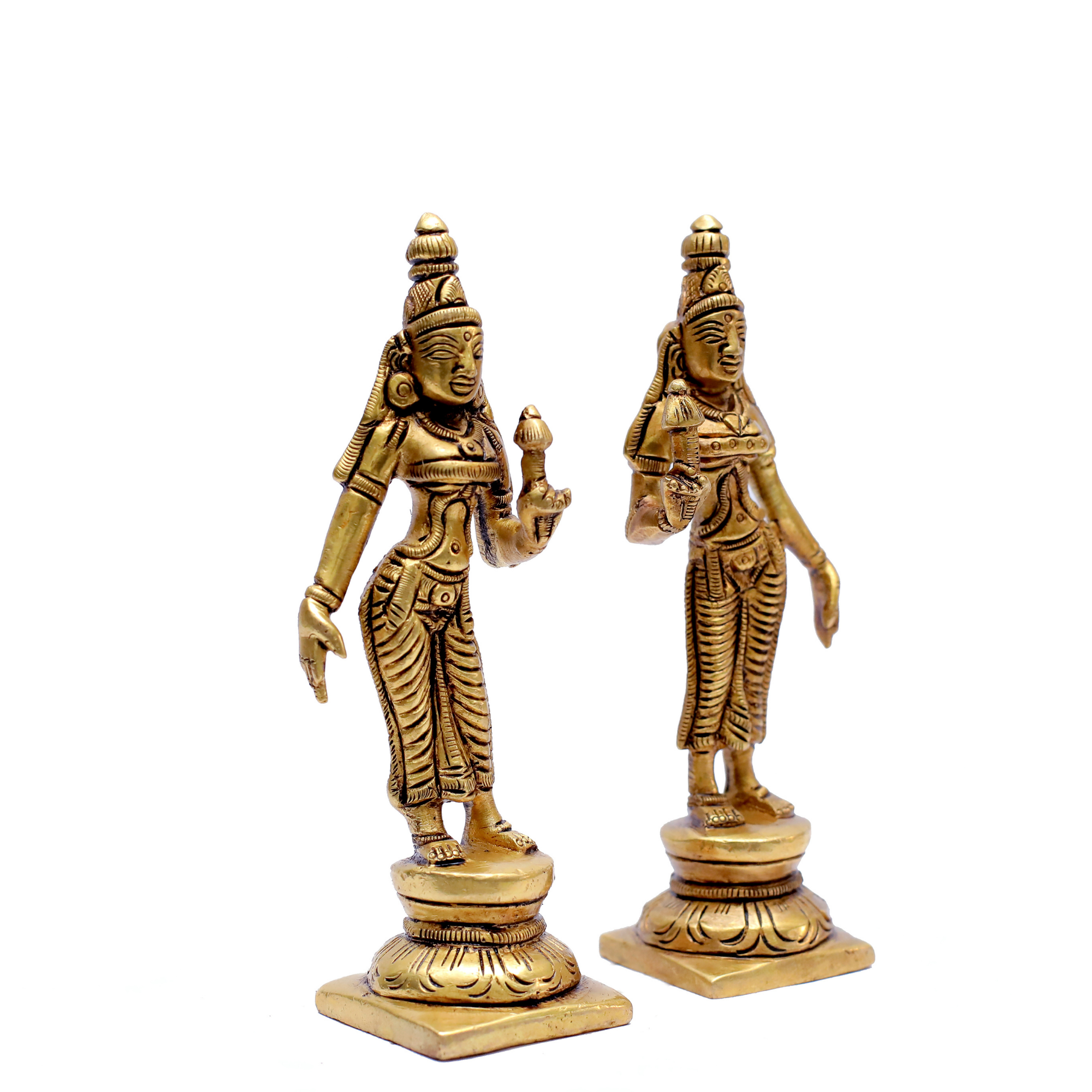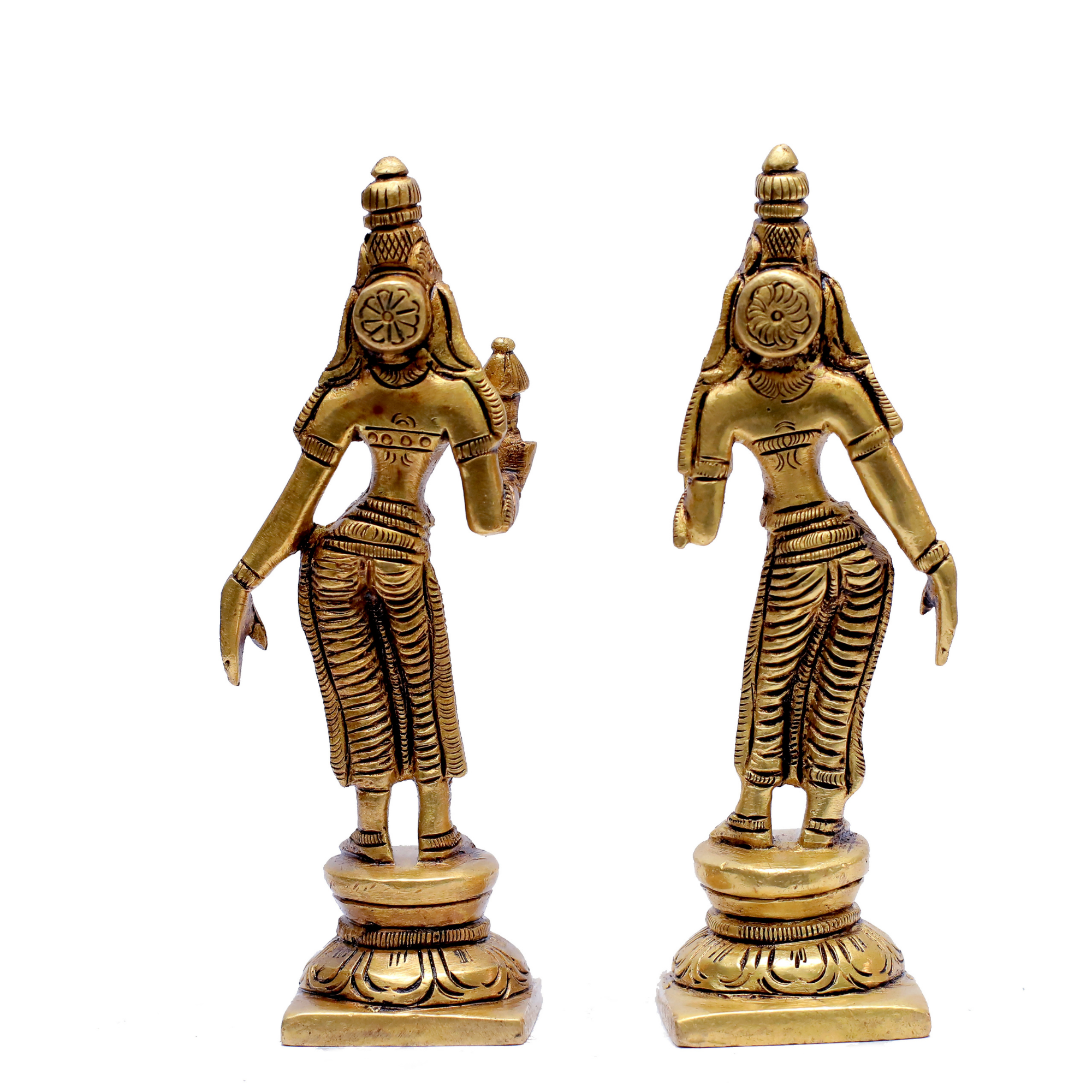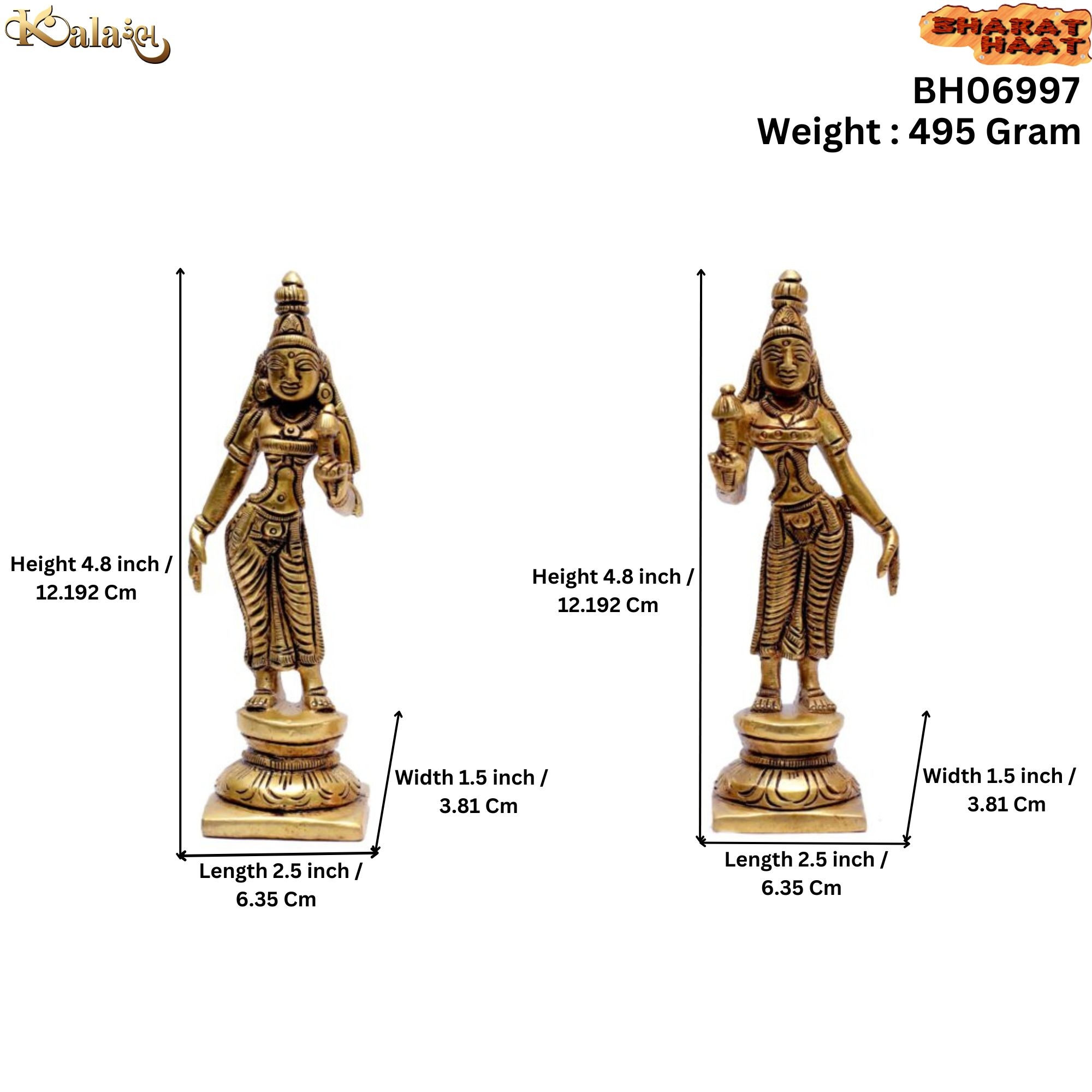 Handcrafted Brass Riddhi Siddhi – Set of 2 detailed Ganesha idols ideal for home décor or pooja. Dimensions: 2.5 x 1.5 x 4.8 inches each, Weight: 495g (2 Pcs).