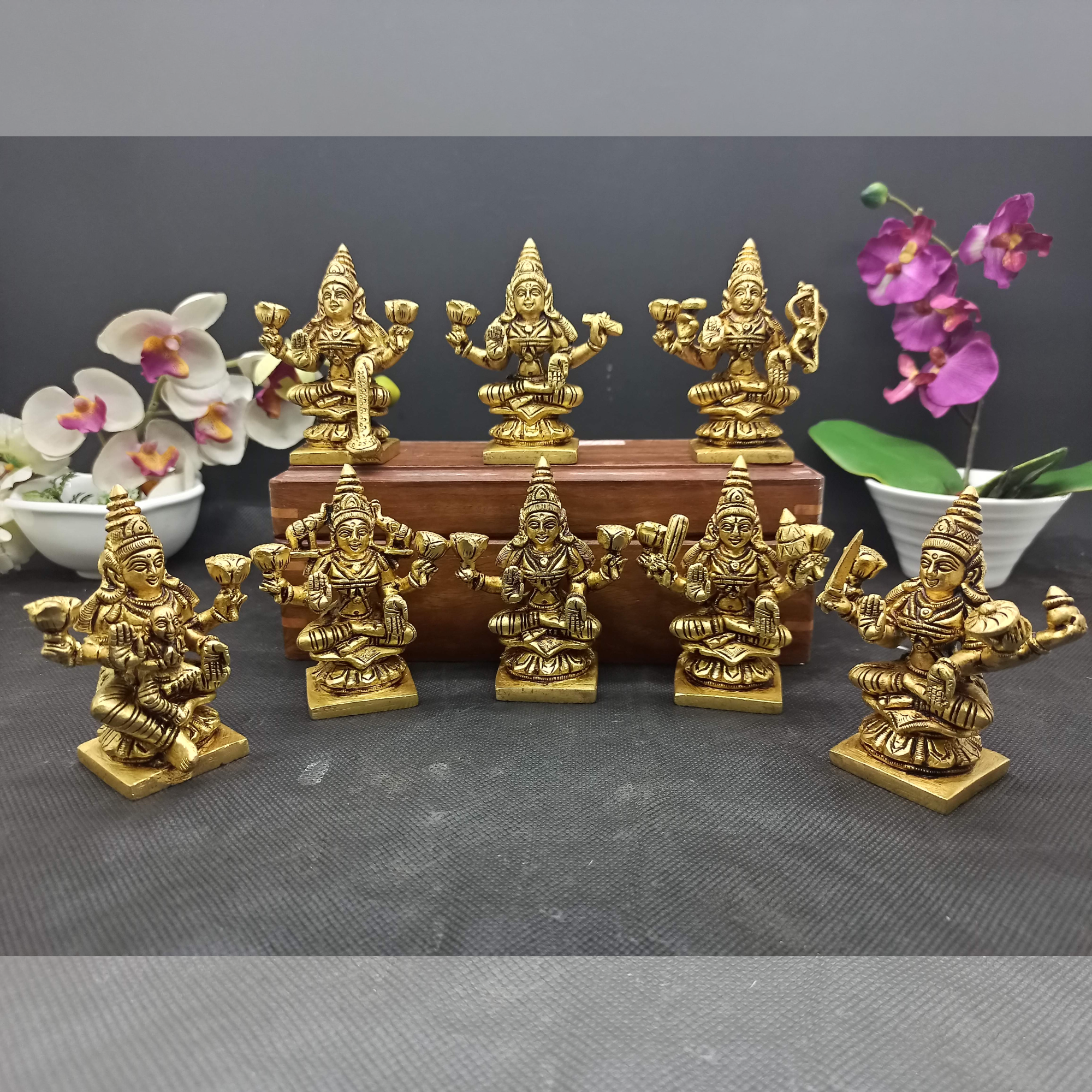 Design: Beautifully crafted Ashta Lakshmi idol, representing the eight forms of Goddess Lakshmi, symbolizing wealth, prosperity, and well-being.