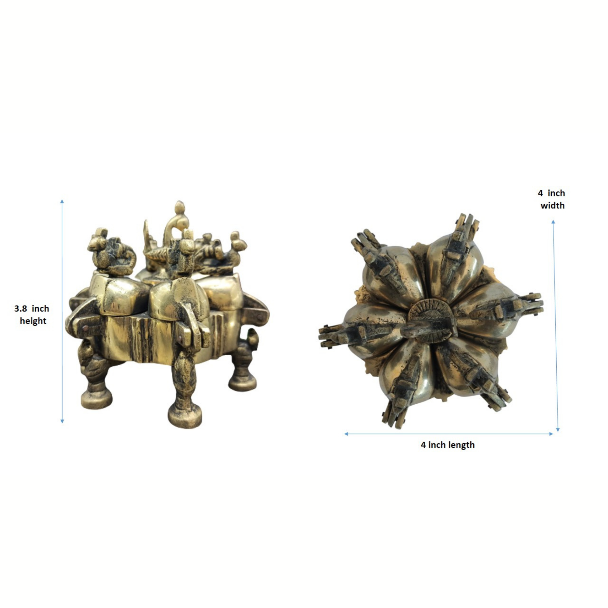 Exquisitely handcrafted Brass Kankavati Peacock Medium, symbolizing beauty, grace, and elegance. Ideal for living rooms, offices, or as a decorative collectible. Size: 4 x 4 x 3.8 inches, Weight: 810 grams.