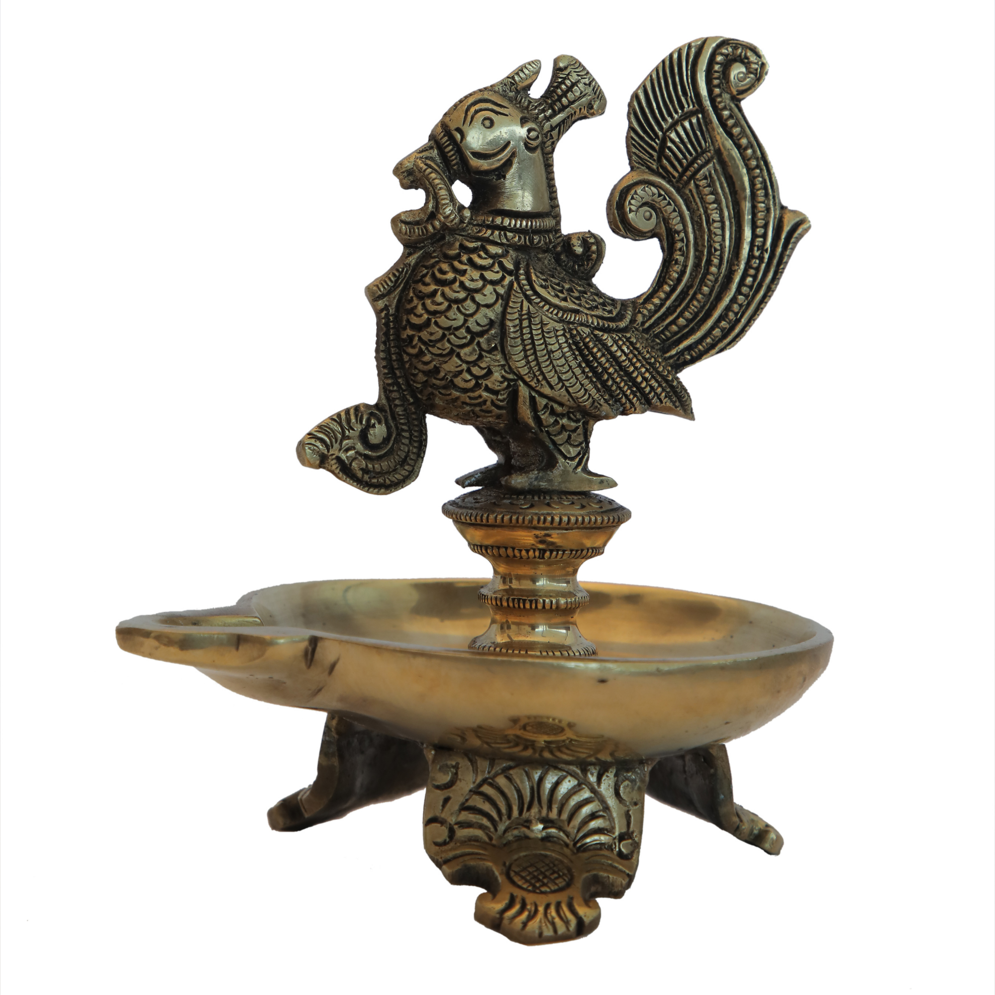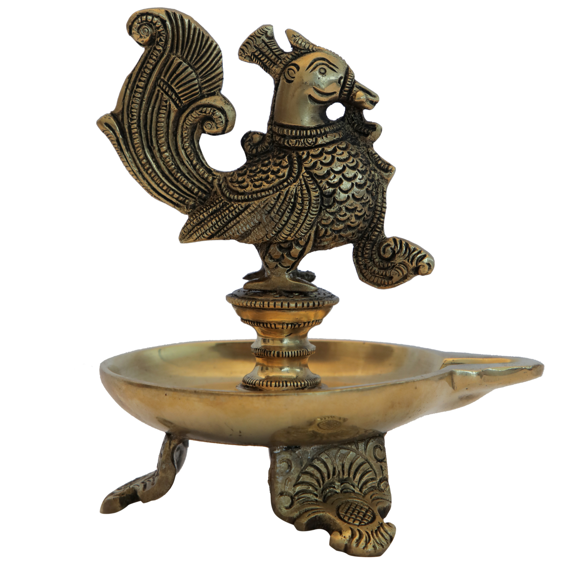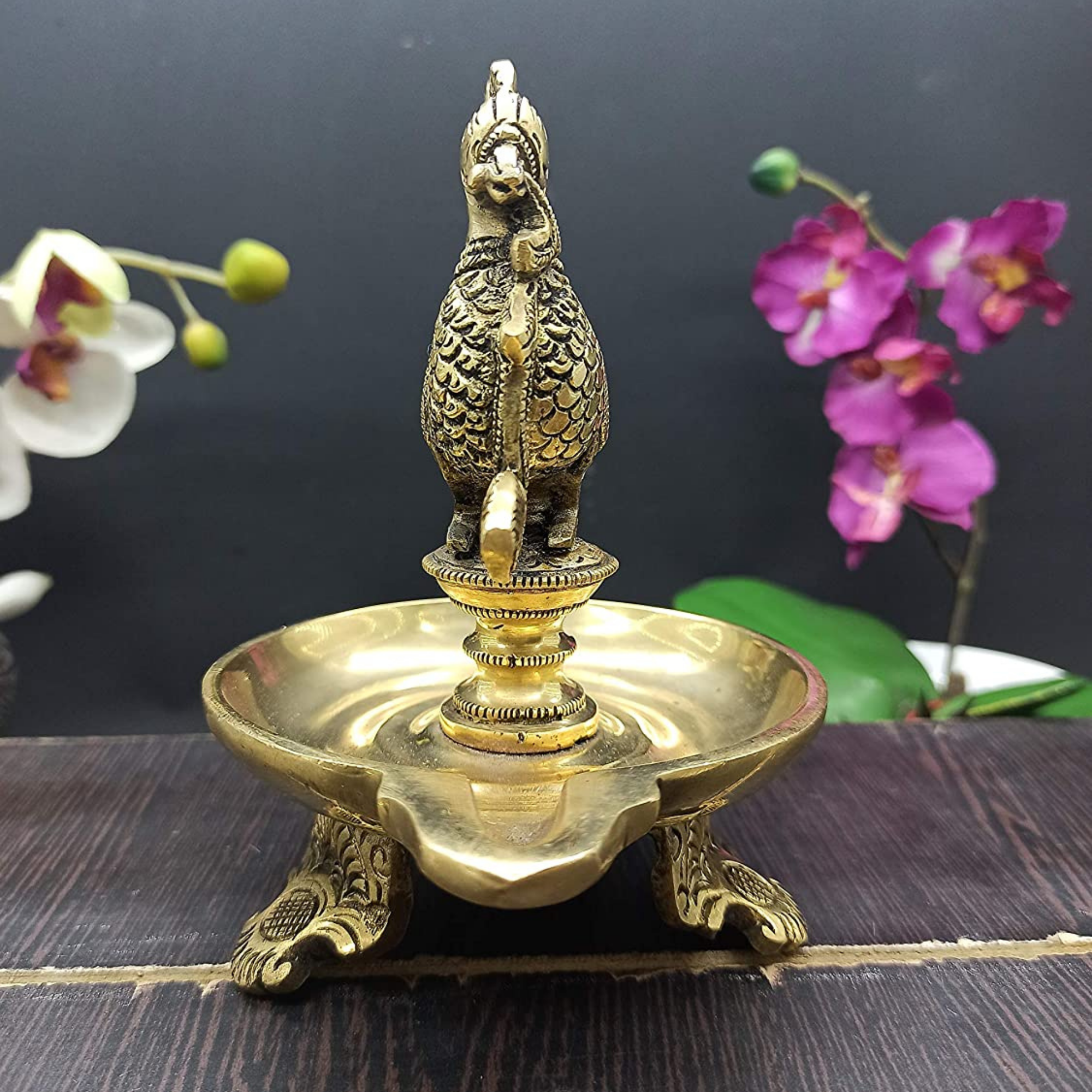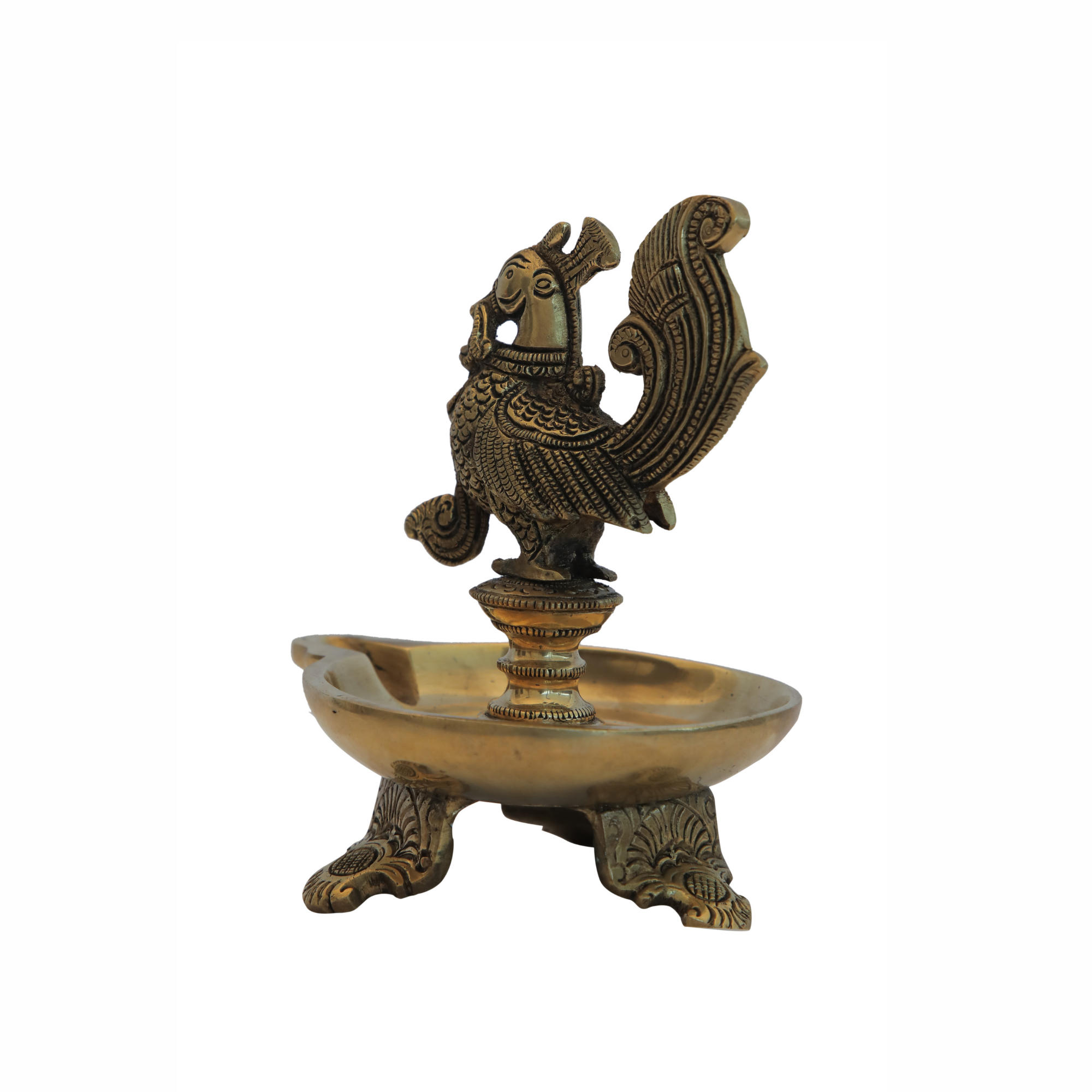 Exquisitely handcrafted Brass Peacock Divi, combining elegance and spirituality. Ideal for pooja rituals, festive décor, or as a decorative collectible. Size: 4.8 x 4 x 5.5 inches, Weight: 840 grams.