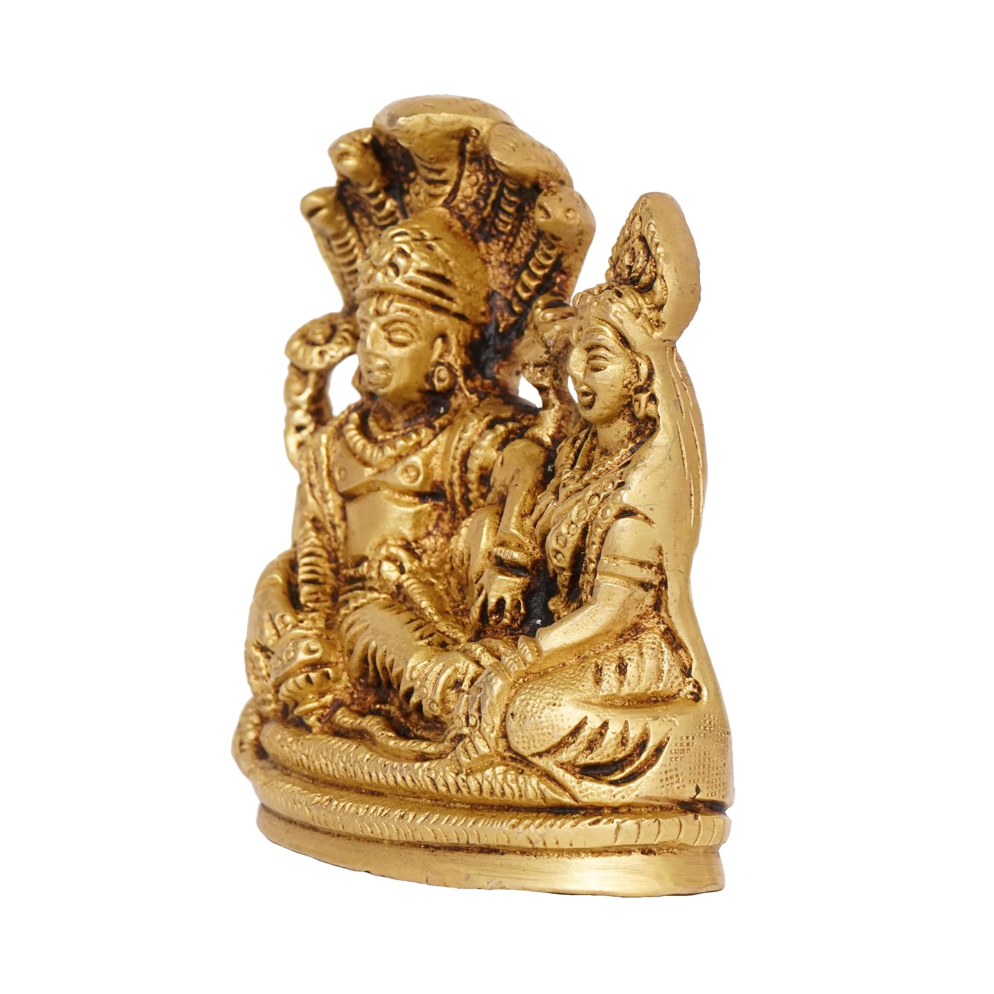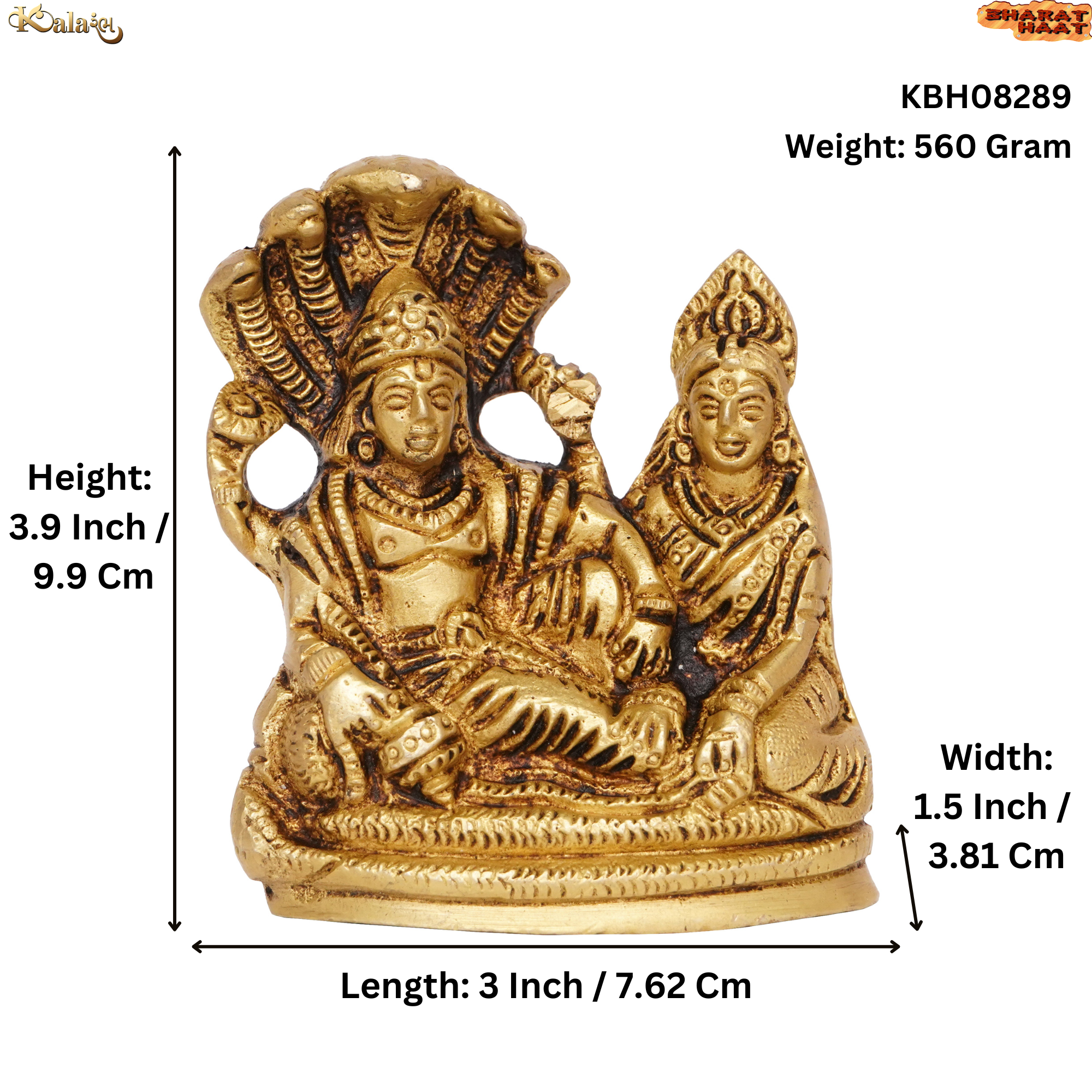 Measuring 3 x 1.5 x 3.9 inches (7.62 x 3.81 x 9.9 cm) and weighing 560 grams, this idol is compact yet radiates immense divine energy. The intricate detailing captures Lord Vishnu’s serene posture alongside Goddess Lakshmi, highlighting traditional craftsmanship and the devotion of skilled Indian artisans.