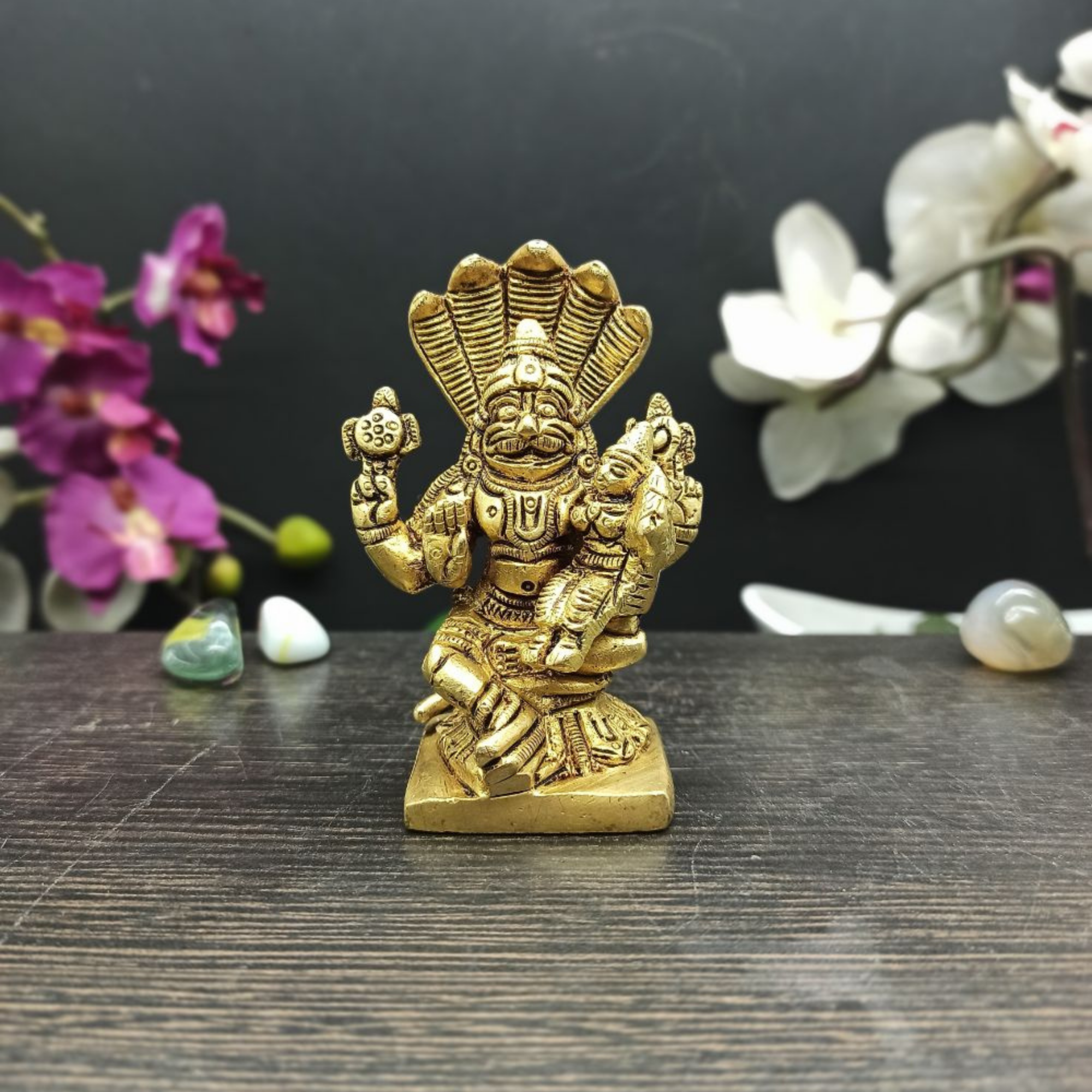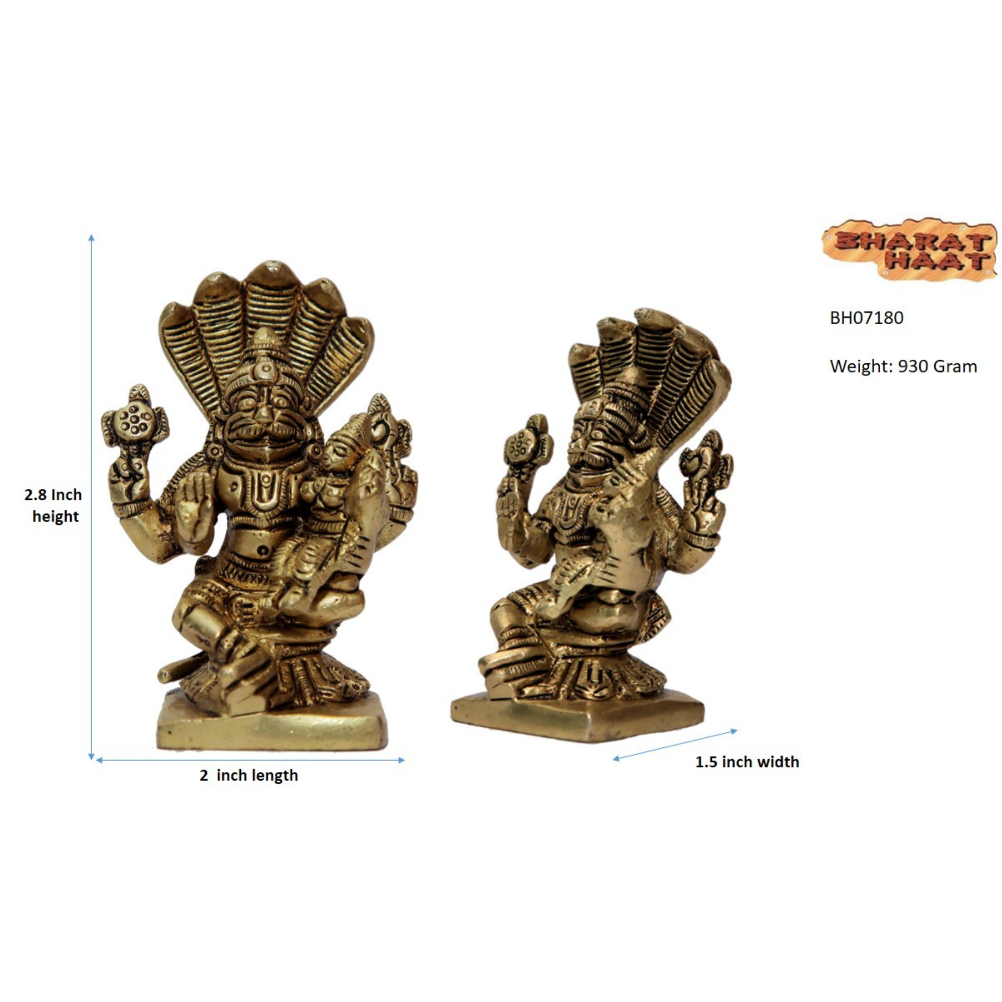 Beautifully crafted Brass Narsingh idol representing Lord Narsingh, the half-lion, half-man incarnation of Lord Vishnu. Measuring 2 x 1.5 x 2.8 inches and weighing 330 grams, this idol is ideal for spiritual décor, meditation, or gifting.