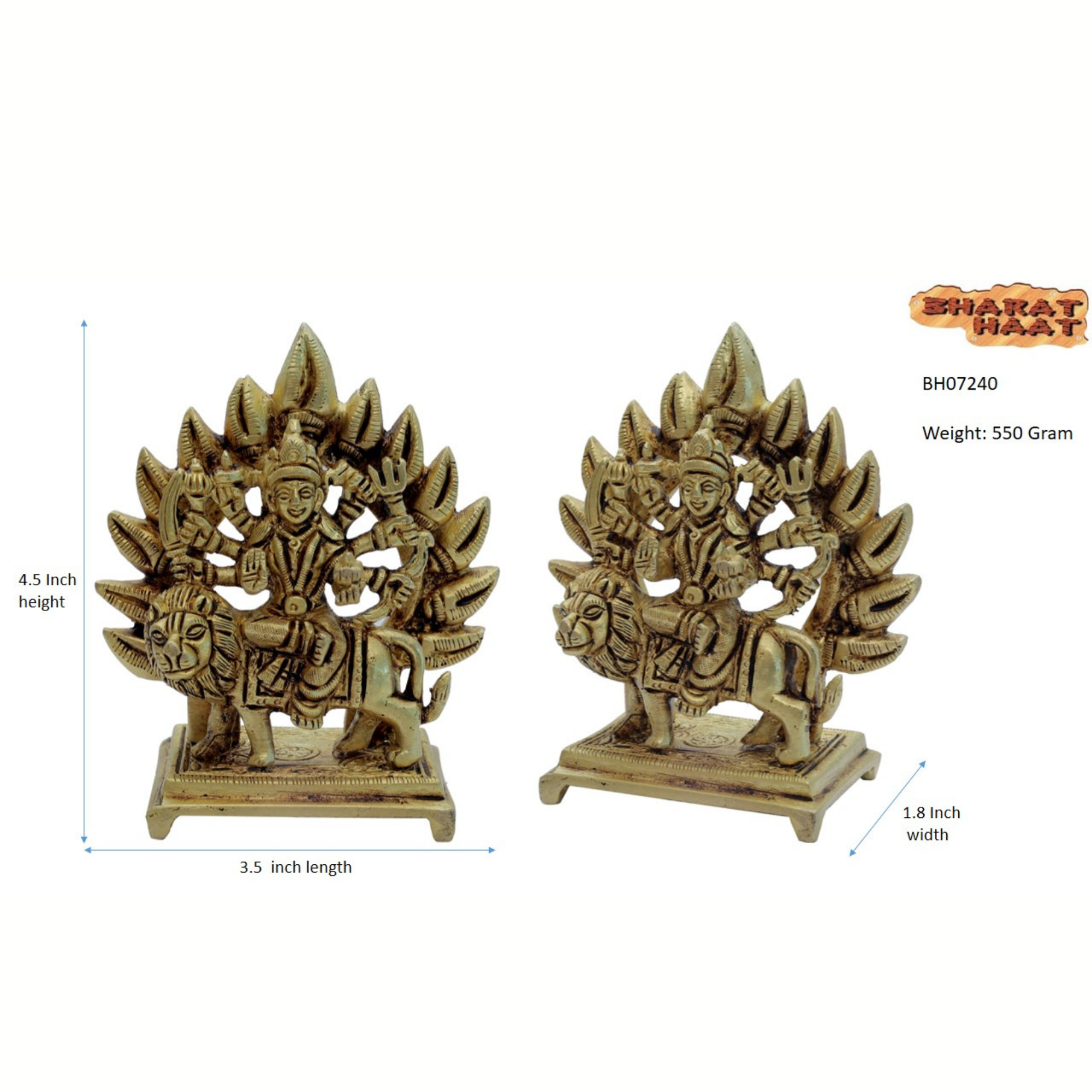 Exquisite handcrafted Brass Ambe Maa idol with fine detailing, symbolizing power and devotion. This 4.5-inch, 550-gram statue enhances your pooja room or spiritual décor with divine grace.