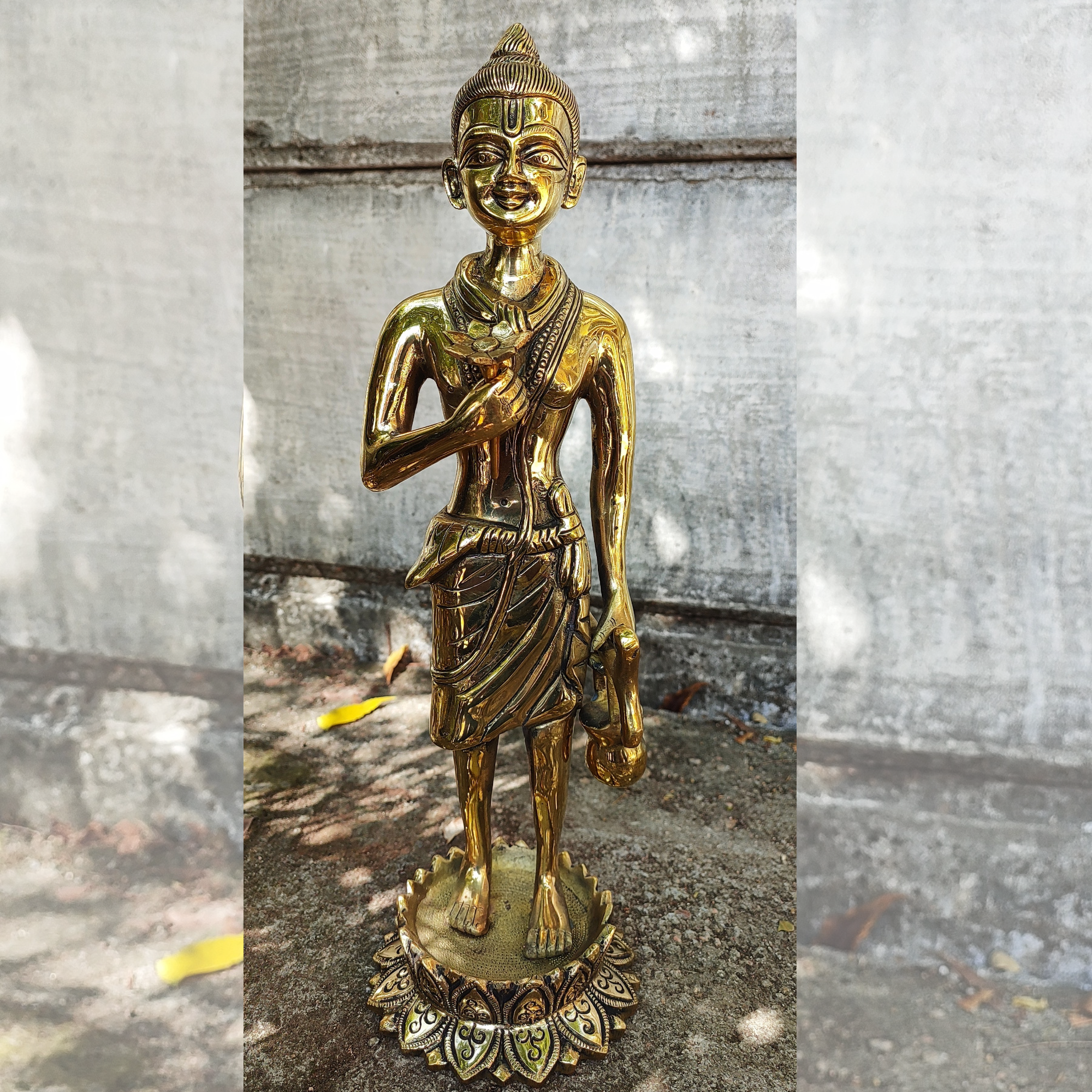 Exquisite Brass Nilkanth Varni statue featuring fine craftsmanship and traditional design. This 15.5-inch, 3.65-kg idol enhances your pooja space or meditation area, symbolizing devotion, wisdom, and spiritual guidance.