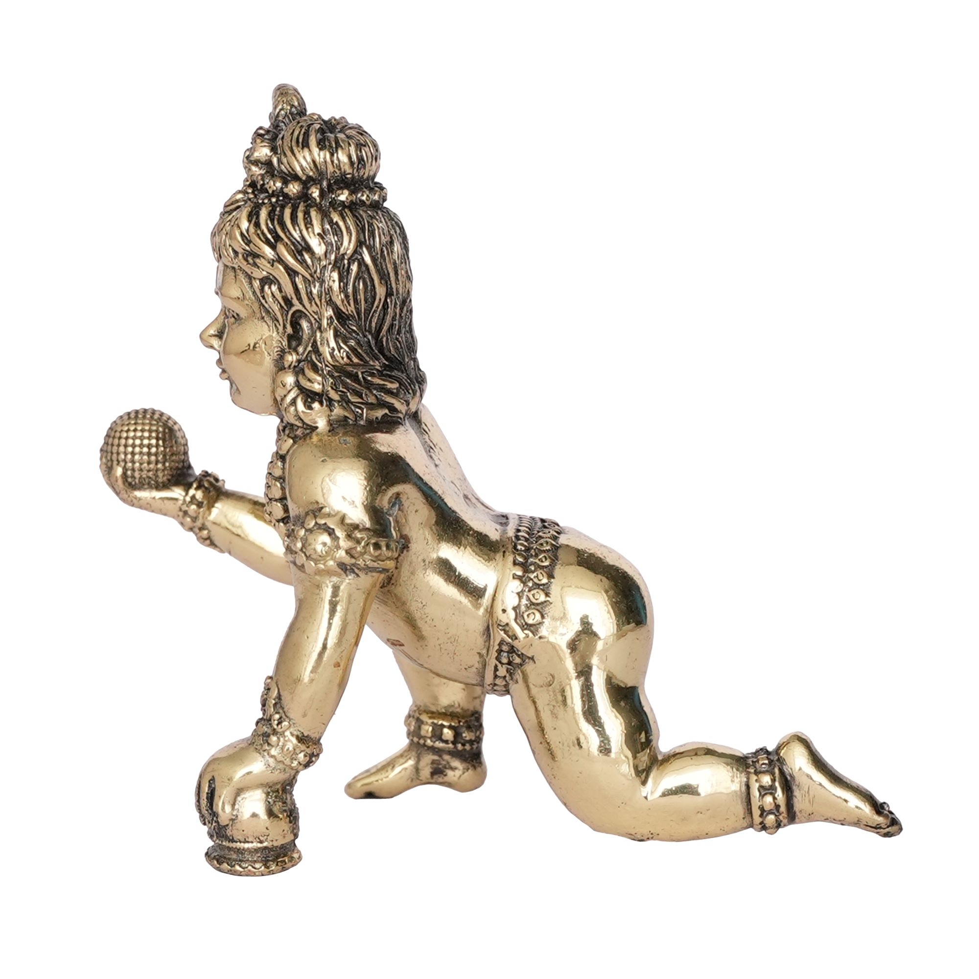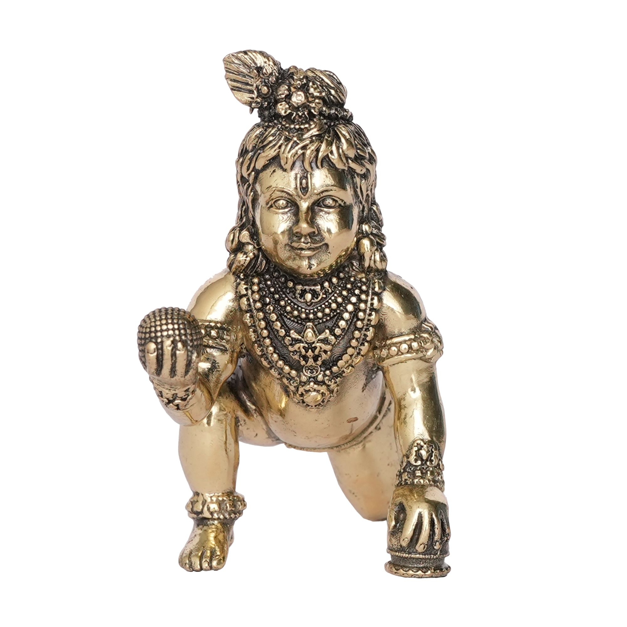 Brass Bal Krishna Idol – Handcrafted Hindu Lord Krishna Statue, 4.2 Inch