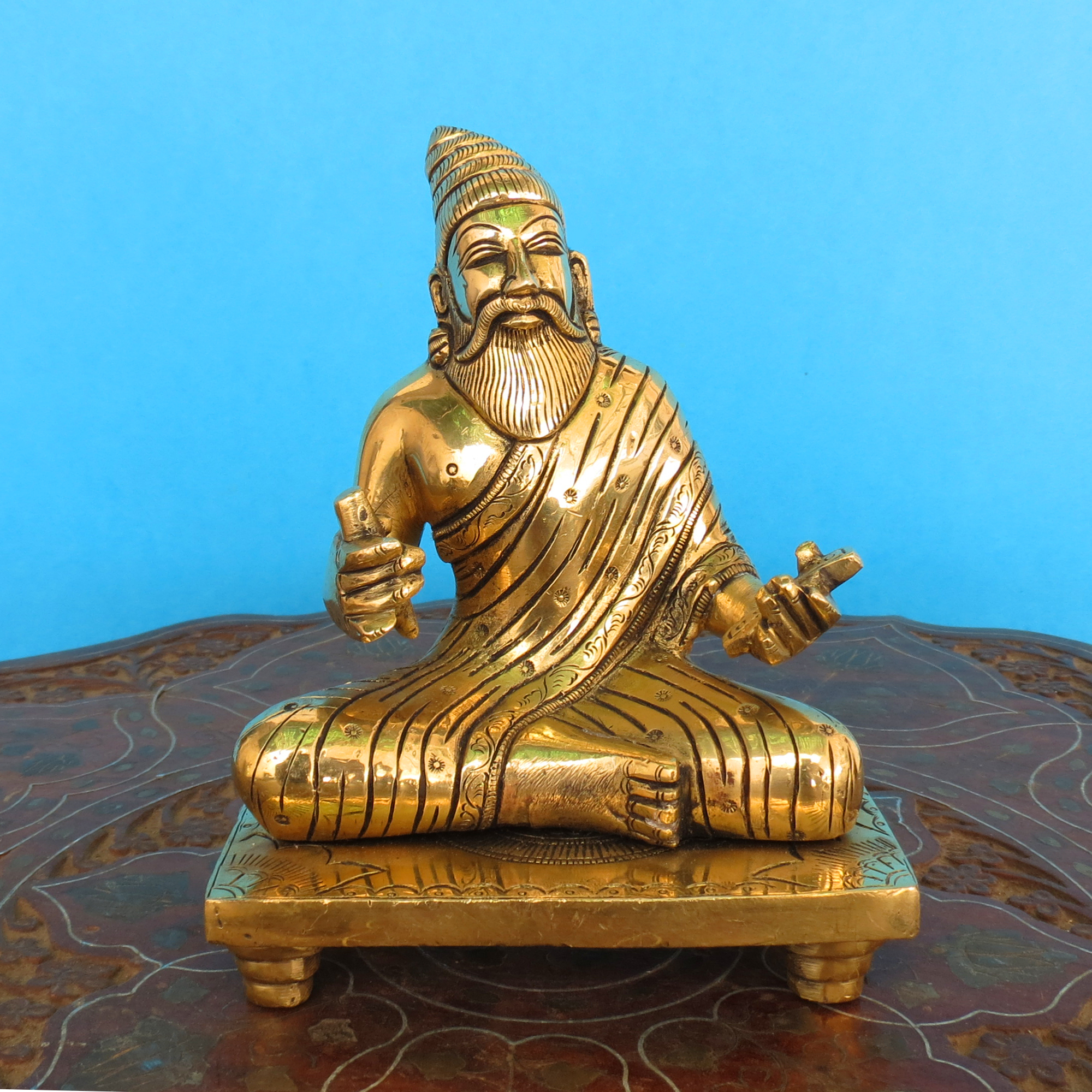 Perfect for placement in study rooms, libraries, cultural spaces, and temples, this Brass Thiruvalluvar Idol inspires intellect, peace, and positivity.