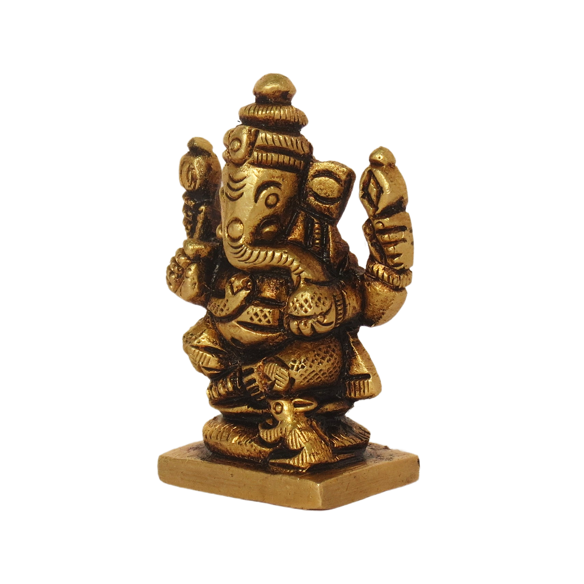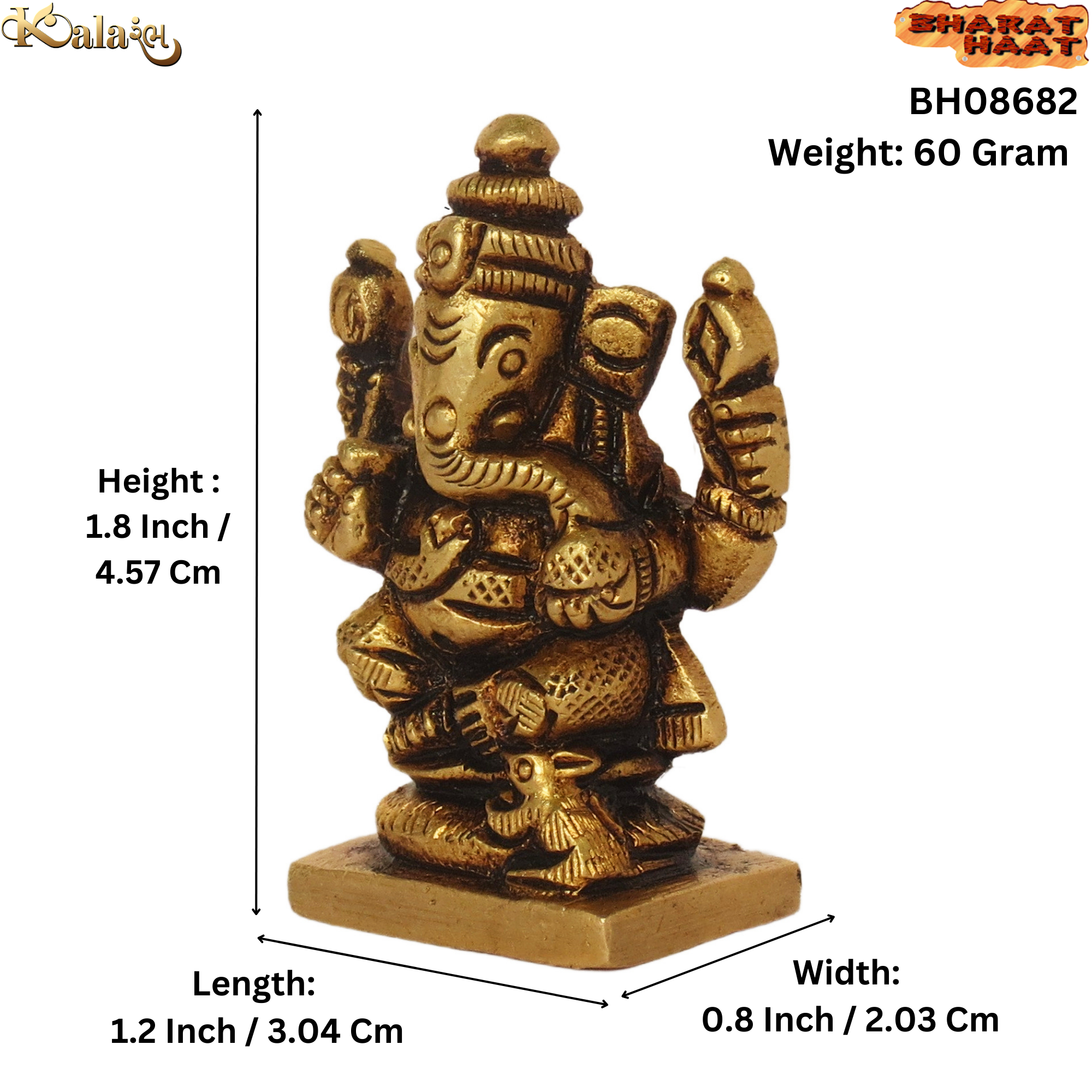 Crafted from premium-quality solid brass, this miniature statue measures 1.2 x 0.8 x 1.8 inches (3.04 x 2.03 x 4.57 cm) and weighs 60 grams, making it lightweight yet durable. The intricate detailing of Lord Ganesha’s features, including his traditional posture and symbolic items, reflects the skill of Indian artisans and the rich tradition of brass handicraft.