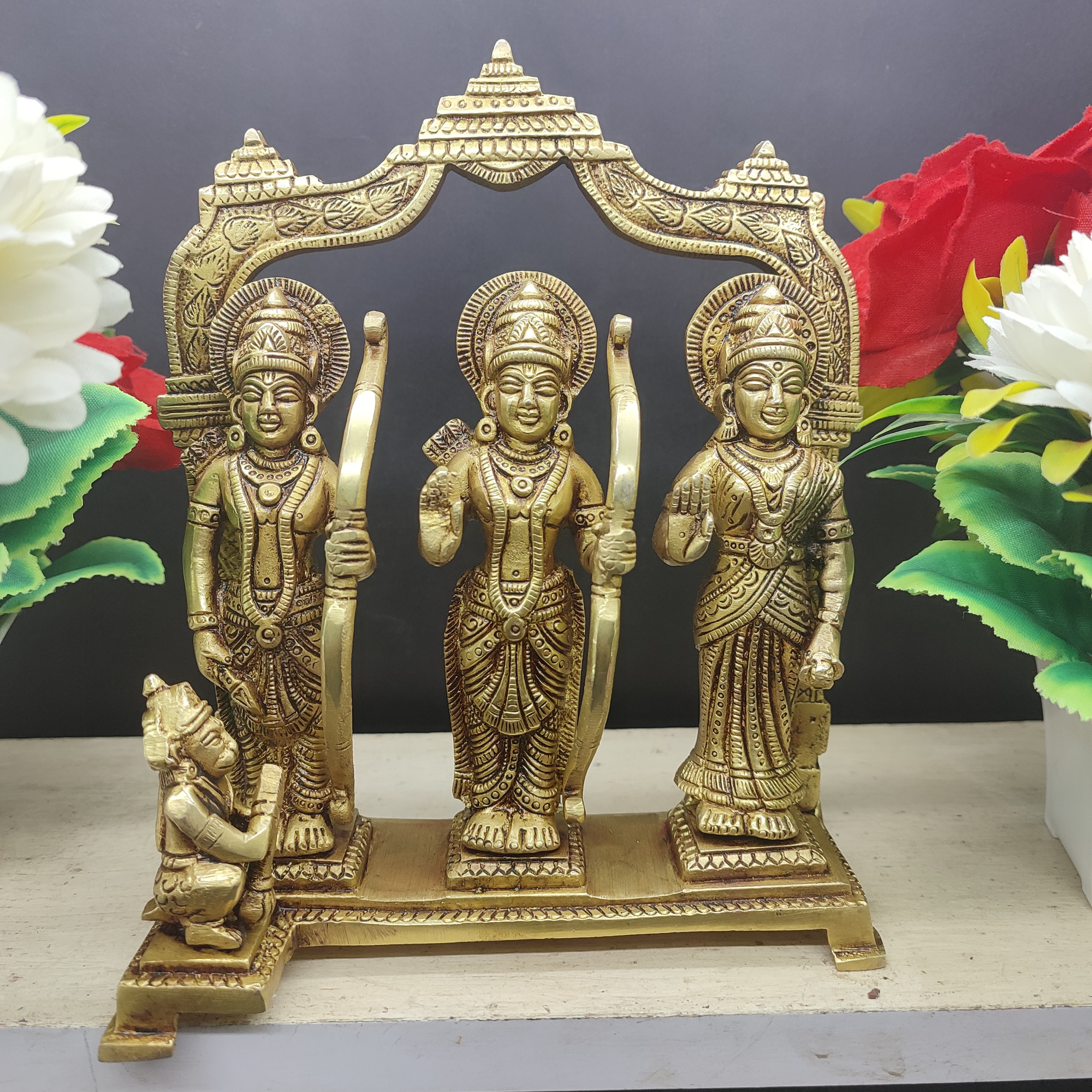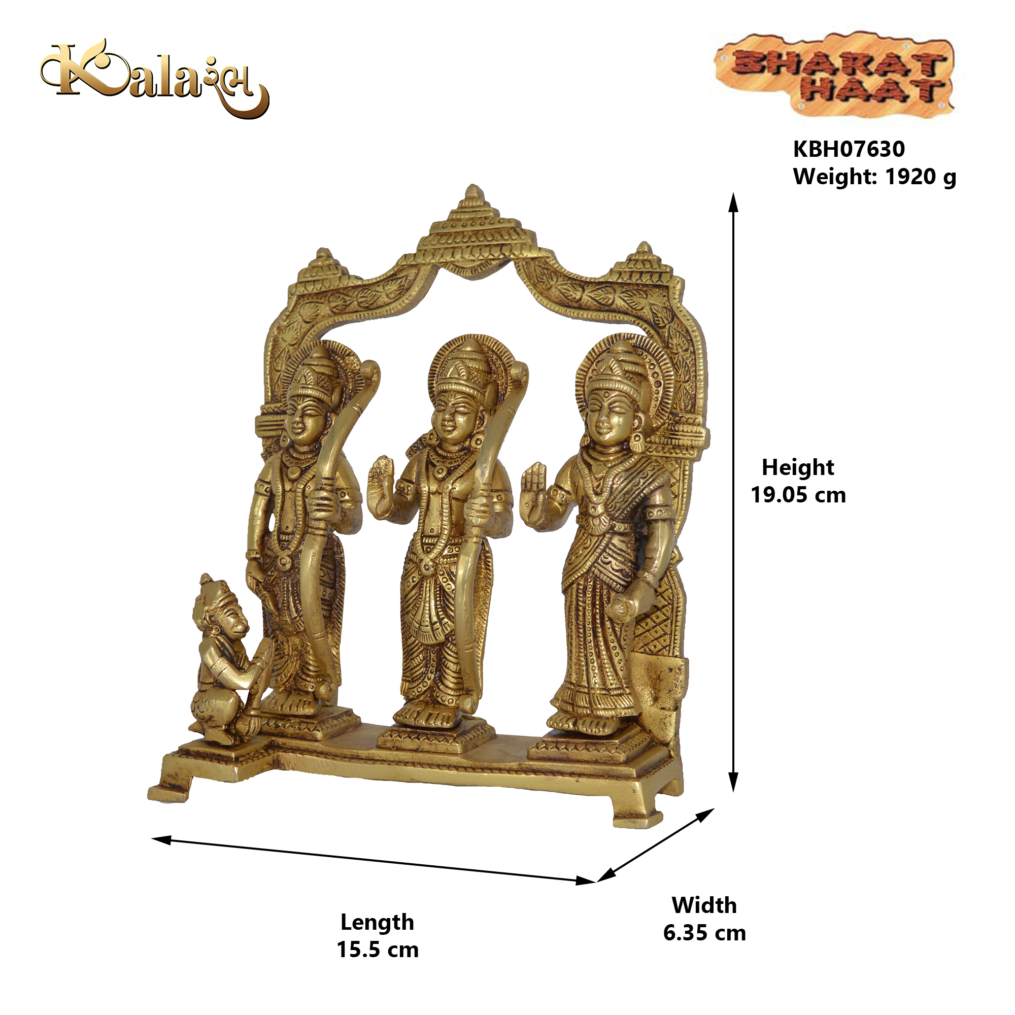 Handcrafted Brass Kaman Ram Darbar Set Idol, 6.1 x 2.5 x 7.5 Inch, 1.92 Kg – a sacred depiction of Lord Ram, Sita, Lakshman, and Hanuman symbolizing devotion, unity, and divine blessings.